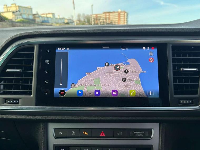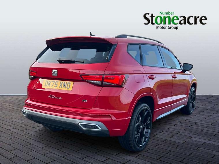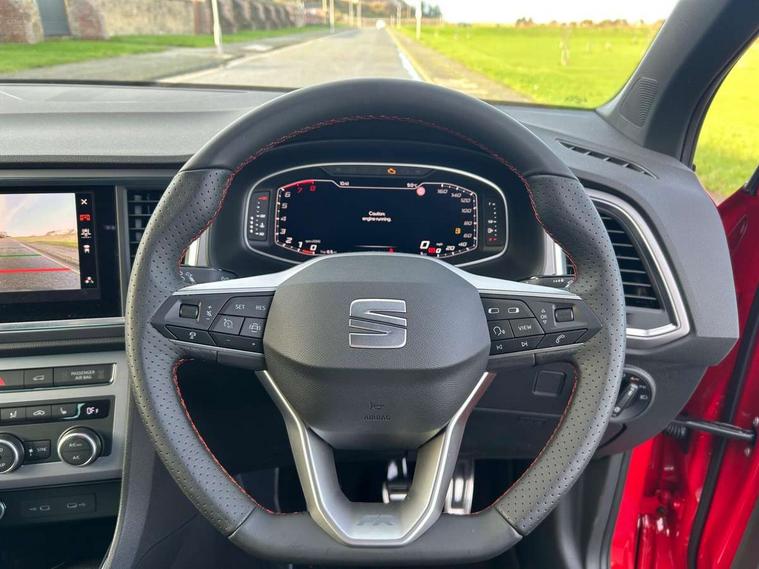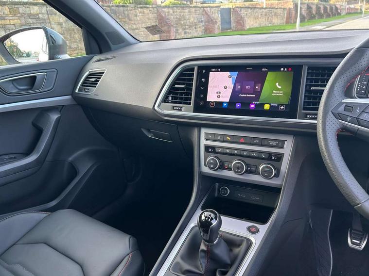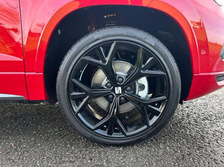 10" Digital cockpit, Bluetooth audio streaming with handsfree system, E-call, Electric tailgate with virtual pedal, Outside temperature gauge, Progressive power assisted steering, SEAT drive profile with driving experience button - Normal, Sport, Eco and Individual mode, steering and throttle response, Self parking functionality (includes front and rear parking sensors), Speed limiter, Start/stop system, Top view camera with rear view camera, Trip computer, wired and wireless full link smartphone integration, Wireless phone charger, Steering wheel mounted audio/phone controls, Black roof rails, Black side window trim, Body colour bumpers, Body coloured wheel arch surrounds, Chrome front grille frame, Dark tinted rear windows, Daytime running lights, Door mirrors with welcome light silhouette, Dynamic headlight range control with self adjusting whilst driving, Electric adjustable/heated/folding door mirrors, Front and rear electric windows, Illuminated aluminium front door sill, LED 3rd brake light, LED headlamps with lens and LED front fog lamps with cornering function, LED rear tail lights with dynamic indicators, Rear exhaust tailpipe, Rear fog lights, Rear side wing doors, Rear spoiler, Rear wash/wipe, Variable front intermittent wipers, 12V socket in front, 3 seat bench in 2nd row, 60/40 split folding rear seat, Aluminium pedals, Black greenhouse interior roof, Dual zone climate control, Electric adjustable driver seat with memory function, Front and rear head restraints, Front centre armrest, Front seat back storage pockets, Heated front seats, Height adjustable passenger seats with lumbar adjustment, ISOFIX points in outer rear seats with top tether anchorage points, Leather sports steering wheel and gear knob, Leather upholstery with front comfort seats, Rear armrest and easy back seat release mechanism from boot, Single front passenger seat, Convenience pack - Ateca, Interior lighting pack - Ateca, Navigation system pack with DAB - Ateca, Safety and driving pack (L) - Ateca, Safety and driving pack with attention and drowsiness assist - Ateca, 3x3 point rear seatbelts, ABS, Traction control system (TCS), Electronic stability control (ESC) and Electronic differential lock system (XDS), Airbags - Driver and front passenger airbag with deactivation, front side, two curtain and driver's knee airbags, Electric parking brake with auto hold function, Front and rear seatbelt reminder, Hill hold control, Manual rear child locks, Single tone horn, Tyre pressure monitoring system, Alarm, Keyless entry, Locking wheel bolts, Remote central locking, Chrome interior detailing, 19" Exclusive alloy whelels 36/10 in glossy black, Tool kit,