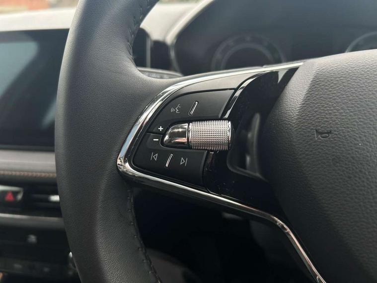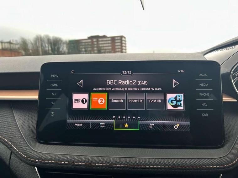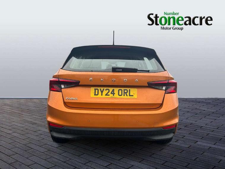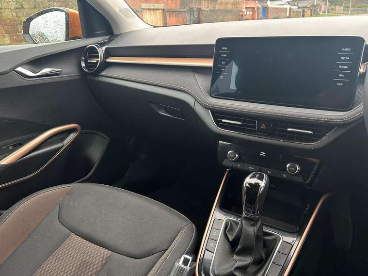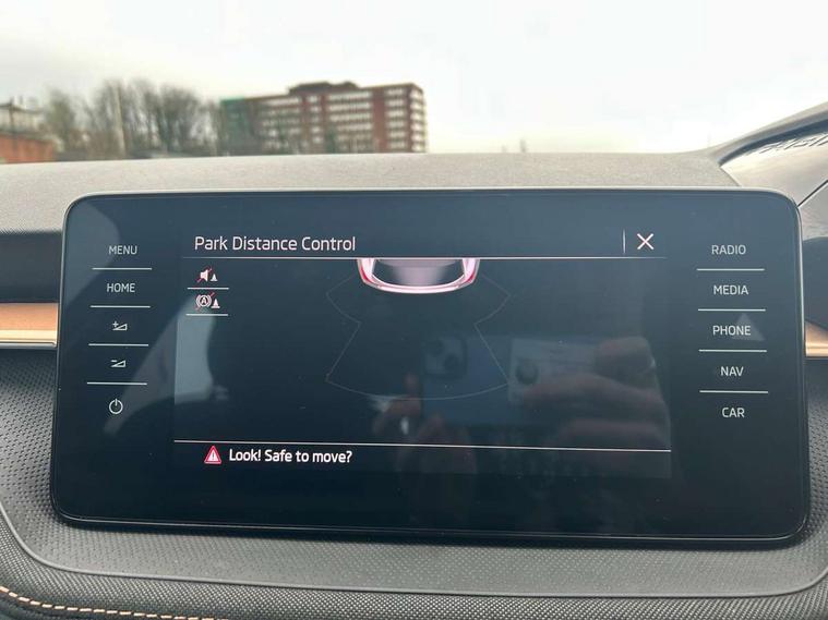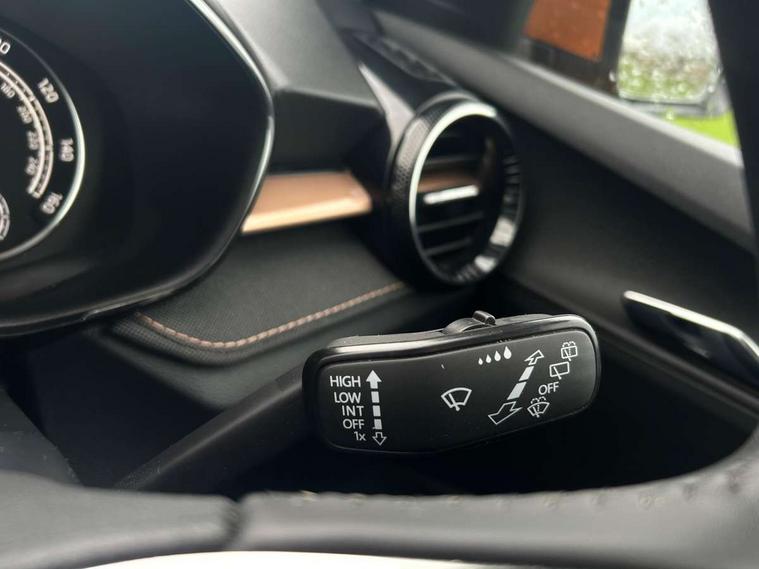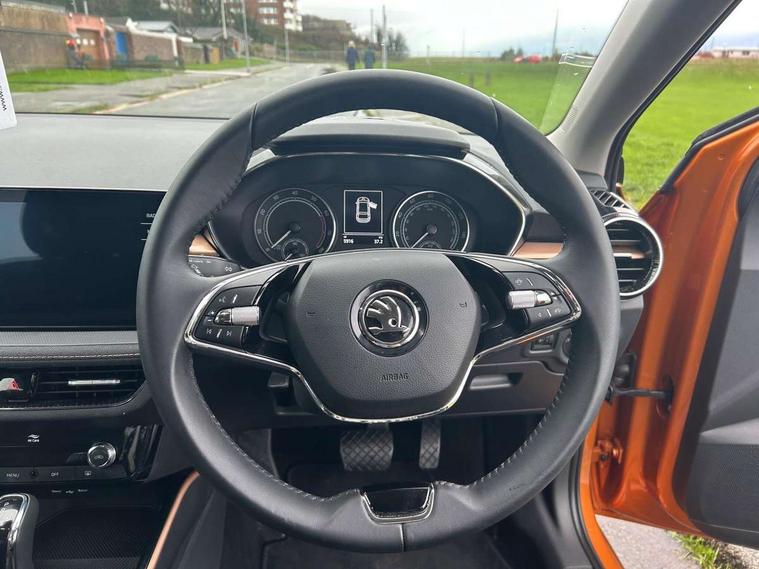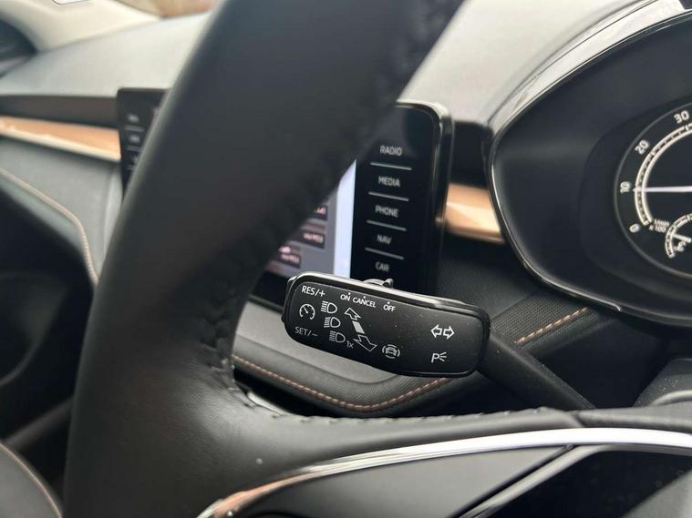 Bluetooth connection, Driver alert system - DAS, Electromechanical power steering, Exterior temperature gauge, Service interval indicator, 2x USB-C in the front (for data transmission and charging), 6 Speakers (4 in front and 2 in rear), Auxiliary socket for external MP3 player, DAB digital radio reception, Web radio, Auto dimming rear view mirror, Basic LED Headlights, Body colour door mirrors, Body coloured bumpers, Chrome window surround, Door mirror integrated indicators, Electrically adjustable and heated door mirrors, Front and rear electric windows, Front fog lights, Front window wiper intermittent control, Headlight range control - Automatic, Ice scraper in fuel cap, LED daytime running lights with coming and leaving home feature, Rain sensor, Rear LED fog light, Rear side wing doors, Rear window wiper with washing nozzles, Roof mounted spoiler, SKODA tailgate lettering in chrome, Third brake light, 3 rear headrests, Backrest split and folding, Central console with fixed cup holder and storage box, Chrome handbrake release button, Comfort seats, Fabric upholstery, Front centre armrest, Gearshift knob/handle in leather, Hand brake lever handle in leather, Height adjustable front headrests, Height adjustable front seats, Height adjustable steering wheel, ISOFIX and TopTether anchorage points to the outer rear seats, ISOFIX and TopTether on the front passenger seat, Luggage compartment lighting, Manually adjustable lumbar support in front seats, Pollen filter, Rear seat bench unsplit, Removable cup holder, Single front passenger seat, Storm grey headlining, Sun visors with mirror and airbag label on passenger side, Textile floor mats, Ticket holder, Umbrella in drivers door, 3-point height adjustable front seats belts with pretensioner and force limiter, Automatic warning lights in case of crash, Driver and passengers airbag with switch off function, e-Call+, ESC including ABS, MSR, ASR, EDS, HBA and XDS, Front and rear seat belt warning, FRONT ASSIST (AEB City and AEB Inter Urban), Front side airbags, Head airbags, Hill hold assist, One tone horn, Pedestrian protection, Three rear 3-points safety seat belts with pretensioner and force limiter including stop function for outer rear seat belts, Tyre pressure monitoring system, Anti-theft alarm system including immobiliser, interior monitoring, backup horn, and towing protection, Central locking with radio remote control, interior controls, SAFE function and 2 foldable keys, KESSY - Keyless engine start/stop, Chrome edged air vents, Satin black door and side trim panel in front, Anti-theft wheel bolts protection, Super-low rolling resistance tyres,