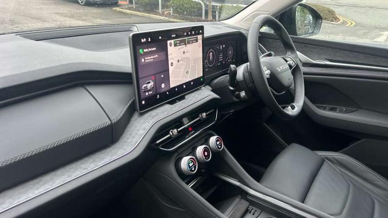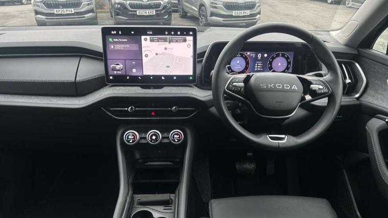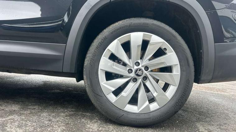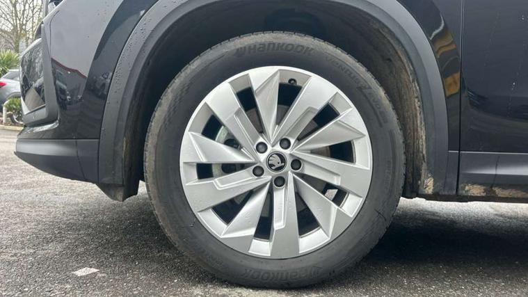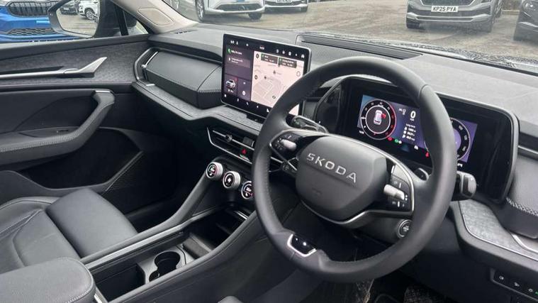 13" satellite navigation touchscreen display, Blind spot detection with door exit warning, Bluetooth system, ChatGPT functionality, Driver alert - Fatigue and drowsiness monitor, Dry display cleaner, Emergency call, Front and rear parking sensors, Front cross traffic assist, Lane assist, PAS, Rear traffic assist, Tailgate unlocking from outside, Traffic sign recognition, USB C Port x 2 in front centre console, Virtual Cockpit - 10.25" digital display, Voice control system, Wireless charging for two smartphones (15W) with cooling function, Wireless SmartLink for Apple CarPlay and Android Auto, Stop/start function, 2x USB-C in the rear, DAB Digital radio, Aero front windscreen wipers with intermittent function, Auto dimming rear view mirror, AWL (all weather lighting) and all weather light with cornering function, Black wheel arch surrounds, Body colour bumpers, Body colour door mirrors and handles, Cornering light and poor weather light, Electric folding /adjustable/separted heated/folding door mirrors, auto dimming with boarding sports and memory function, Electric front and rear windows, Exterior black decorative trims, Heat insulating glass in windshield, Heated rear window, Ice scraper in fuel tank cap, Invisible tailpipe, LED daytime running lights, LED third brake light in rear spoiler, Light assistant with automatic headlight control and coming home feature, Logo projection in door mirrors, Privacy glass, Rear roof spoiler, Rear side wing doors, Rear window wiper, Red decorative strip between rear LED lights, Safety reflectors on front and rear doors, Unique dark chrome design logo on alloy wheels, Window control switches with black trim, Windscreen wipers with rain sensor, Without engine designation, 1.5l bottle holder points in all door, 1x centre rear reading light, 2 seat bench in 3rd row, 3 configurable smart dials with 32mm coloured display, 3 seat bench in 2nd row, 4 foldable roof handles with rear coat hooks, Ambient interior lighting - Dashboard, front-door stowage compartments, front and rear door panels and footwell lighting, Automatic gear selector on steering column, Chrome interior door handles, Driver/front passenger reading lights, Fabric headlining, Fixed bench 40:60:40 split folding backrests, Front and rear floor mats, Front centre armrest with jumbo box storage compartment, cup holder and 12V socket, Height adjustable front headrests, Isofix child seat fittings in outer middle row rear seats and front passenger with top tether, Manually adjustable steering column, Pollen filter, Rear centre armrest with cupholders, Rear seat boot backrest release, Single front passenger seat, Skoda lettering on steering wheel, Storage pocket including mobile phone pockets on the backs of the front seats, Sunvisors with illuminated vanity mirrors, Three rear height adjustable headrests, Ticket holder on A Pillar, Tri zone climate control, Umbrella in door panel x1 made from sustainable materials, Upper and lower glovebox with card holder and coin compartment, USB C port by rear view mirror for charging only (15W), Exterior styling pack - Kodiaq, Auto door release and activation of warning lights in the event of an accident, Driver and front passenger airbag with knee airbag and front passenger airbag deactivation, Electric child locks, Electronic parking brake, ESC (incl. ABS+EMD+MSR+ASR+EDL+HBA+DSR+RBS+ESBS+MCB+TSA+XDS), Front assist with braking reaction to vehicles, pedestrians and cyclists, Front disc brakes, Fuel cut off safety device, Height adjustable front 3 point seatbelts + pretensioners, Hill hold assist, Junction assist with automatic emergency braking, Rear disc brakes, Safety vest holder in door, Seat belt reminder for all seats, Three point rear seat belts, Two tone horn, Tyre pressure monitor, Anti-theft wheel bolts, Immobiliser, Remote central locking with 2 keys,