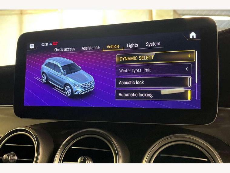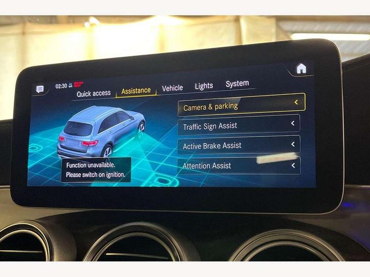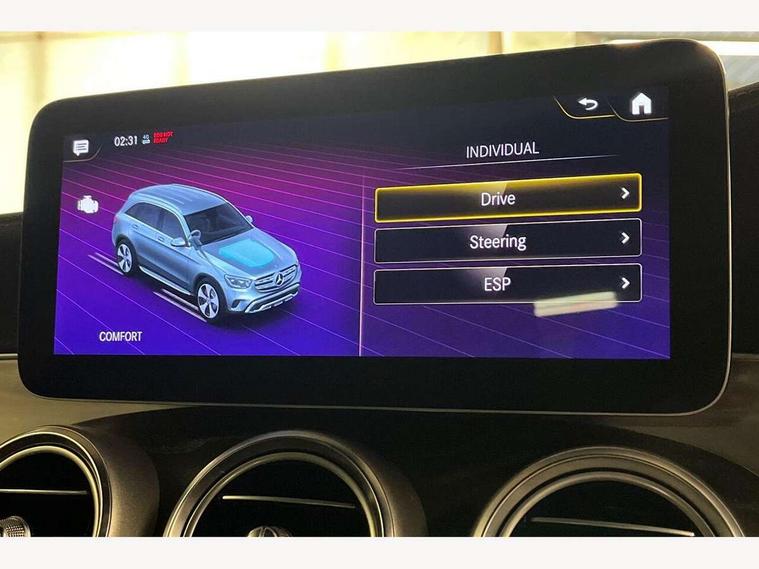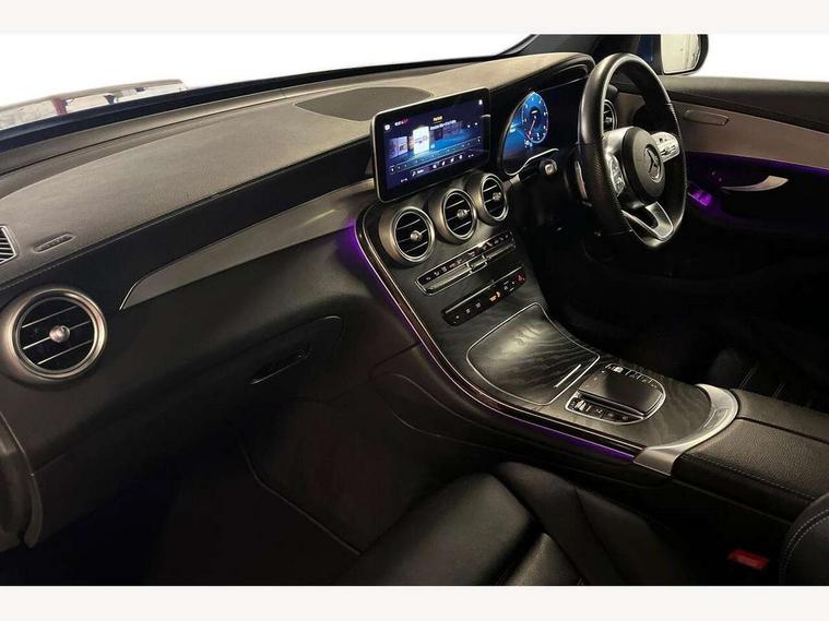 Active parking assist with parktronic system, Attention assist, Bluetooth interface for hands free telephone, Collision prevention assist plus, Cruise control with speedtronic variable speed limiter, Direct steer speed sensitive steering, DYNAMIC SELECT with a choice of driving modes (ECO, Comfort, Sport, Sport+ and Individual), Easy pack automatic powered tailgate, eCall emergency call system, ECO start/stop function, Hard disk navigation, Hey Mercedes Voice activation, Instrument cluster with12.3-inch digital instrument cluster display. High resolution instrument cluster screen with choice of three display styles, MBUX Interior assistant, Mercedes connect me with remote online services, Multi function trip computer, Outside temperature display, rear seatbelt status indicator, Remote boot release, Reversing camera, Service indicator (ASSYST), Smartphone integration with Apple CarPlay and Android auto, Traffic sign assist, 4MATIC permanent four wheel drive, 66 litre fuel tank, 9G TRONIC plus automatic transmission with steering column gear selector, DIRECT SELECT steering wheel gearshift paddles, Diesel particulate filter, Sports suspension tuned for improved handling and driving dynamics, 5 speakers, Frontbass loudspeakers, MBUX multimedia system with DAB digital radio and touchpad, Media display 10.25-inch touchscreen display, Pre installation for Mercedes Benz Link, USB ports x 2 in centre console, Adaptive brake lights, Aluminium roof rails, AMG bodystyling AMG front apron with sporty air intakes and chrome trim element, AMG diffuser-look rear apron with insert in black, Body colour door mirrors, Body coloured bumpers, Electric windows one touch open/close, Electrically adjustable and heated door mirrors, Front, side and rear exterior chrome trim, Headlamp assist automatic headlamp activation, High level LED brake light, LED high performance headlamps with integrated LED daytime running lights, LED tail lamp, Motor way mode function and locator lighting, Privacy glass with dark glass from B pillar backwards, Radiator diamond grille, Rain sensor windscreen wipers, Range adjustable headlights, Rear side wing doors, Rear wiper, Roof spoiler, Running boards, Tinted glass all round with single layer safety glass, Tinted rear windows, Two chrome plated tailpipe trim elements, Variable front intermittent wipers, 2 way rear head restraints, 3-spoke multifunction sport AMG steering wheel in black nappa leather with flattened bottom section, chrome insert and perforated leather in grip area, 40:20:40 split folding rear seats, Ambient lighting, AMG floor mats with edging and embroidered AMG lettering, AMG sports seats, Artico man-made leather upper dashboard with contrast topstitching, Automatic child seat recognition sensor, Black roof lining, Dividing net - rear, Double cup holder in centre console, Easy-pack removable load compartment cover, Front armrest with storage box, Front door sills with Mercedes Benz lettering, Front head restraints, Front passenger seat, Front seats with electric adjust (backrest, height and seat cushion inclination) with 4 way electric lumbar support and manual cushion depth adjust, Heated front seats, Height/reach adjustable steering column, Illuminated and lockable glove compartment, Leather upholstery, Rear top tether child seat ISOFIX attachment, Sports pedals with stainless steel surfaces and rubber studs, Steering wheel with touch control buttons, THERMOTRONIC 3 zone automatic climate control, Interior lighting pack - GLC, Mirror pack - GLC, Storage pack - GLC, 3 rear 3 point seatbelts, Active bonnet, Adaptive brake system with HOLD function and brake drying in the wet, ASR, Black seat belts, Brake calipers with Mercedes-Benz lettering + perforated brake discs, Child proof door locks, Dual-stage airbags - driver and front passenger, driver knee bag and window bags for driver, front passenger and rear passengers, Electronic parking brake, Electronic stability programme (ESP) with curve dynamic assist and cross wind assist, Front and rear seatbelt reminder, Front passenger seat occupancy sensor, Hill hold function, Tyre pressure monitoring system, Warning triangle and first aid kit, Alarm system/interior protection/immobiliser, Automatic door locking, KEYLESS-GO starting function, Remote central locking, Open pore black ash wood trim, 20" AMG multi spoke design alloy wheels painted in titanium grey with high sheen finish, Run flat tyres, Summer tyres,