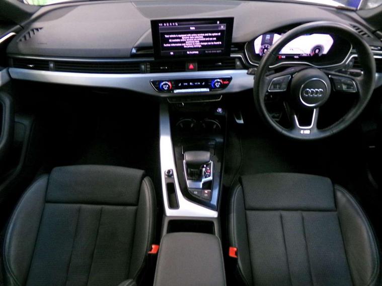Audi connect safety and service (e-call), Audi connect with Amazon Alexa Integration, Audi drive select (Auto, Comfort, Dynamic, Efficiency and Individual), Audi parking system plus with front and rear sensors, Audi smartphone interface, Audi virtual cockpit - 12.3" full colour digital instrument cluster, vehicle/engine speed, Radio/media information+Driver assistance systems, Automatic start-stop system with coasting functionality and efficiency programme, Bluetooth interface, Electro-mechanical power steering, Email, calendar and text messages displayed via MMI, MMI nav+ with MMI touch - 10.1" high resolution MMI display, touch sensitive, 3D map, route/country info, dynamic route guide, personal route assist, Power operated tailgate, Rear view camera, Service interval indicator, Voice control system, Diesel particulate filter, Sports suspension lowered by 23mm, 8 passive loudspeakers, CD player, DAB digital radio reception, Two additional USB ports for rear passenger in rear centre console, Two SDXC card slots, Audi matrix LED headlights with LED rear lights + dynamic front and rear indicators, Auto dimming door mirrors, Auto dimming rear view mirror, Body colour bumpers, Body colour door handles, Body colour front spoiler lip, Body colour side sill trim, Body coloured door mirrors, Electric adjustable heated door mirrors, Electric folding door mirrors, Electric front windows, Front fog lights, Honeycomb structure radiator grille in grained matt black, Kerb-view function for passenger side, LED daytime running lights, LED side indicator lights integrated into door mirrors, LED third brake light, Matt aluminium silver tailpipe trim, Privacy glass, Rain and light sensors, Rear side wing doors, S line badges on front wings, S line front and rear bumpers with side skirts, S Line rear diffuser in matt titanium black with trim strip in matt aluminium silver, Side air inlets in grained matt black with matt aluminium silver inlay, Variable front intermittent wipers, Windscreen with acoustic glazing, 3 seat bench in 2nd row, 4 way electric lumbar support for driver and front passenger, 40/20/40 split folding 3 seater rear bench seat, Adjustable steering column, Black cloth headlining, Black perforated leather gearknob, Contrast stitching on seats, steering wheel and gear lever gaiter, Deluxe 3 zone electronic climate control, Front centre armrest, Front head restraints, Front/rear floor mats, Heated front seats, Illuminated door sill trim with S logo, ISOFIX child seat mounting and top tether, Luggage compartment mat, Manual seat adjustment, Rear centre armrest, Rear headrests, Single front passenger seat, Stainless steel pedals, Sunvisors with vanity mirrors, LED interior light pack - A5/RS5, 3x3 point rear seatbelts, 6 airbags - Driver, front passenger, curtain and side airbags, Electromechanical parking brake, Electronic Stabilisation Control (ESC) including ABS, ASR and EDL, Front passenger airbag deactivation, Height adjustable front seatbelts, Hill hold assist, Manual child lock in rear doors, Multi collision brake assist, Pop-up bonnet for pedestrian protection, Pre sense city, Seatbelt monitoring, Tyre pressure warning, Variable restraint system, Warning triangle and first aid kit, Anti theft alarm system, Anti theft wheel bolts, Immobiliser, Keyless Go, Remote central locking, Matt brushed aluminium inlays, Tool kit, Tyre repair kit,