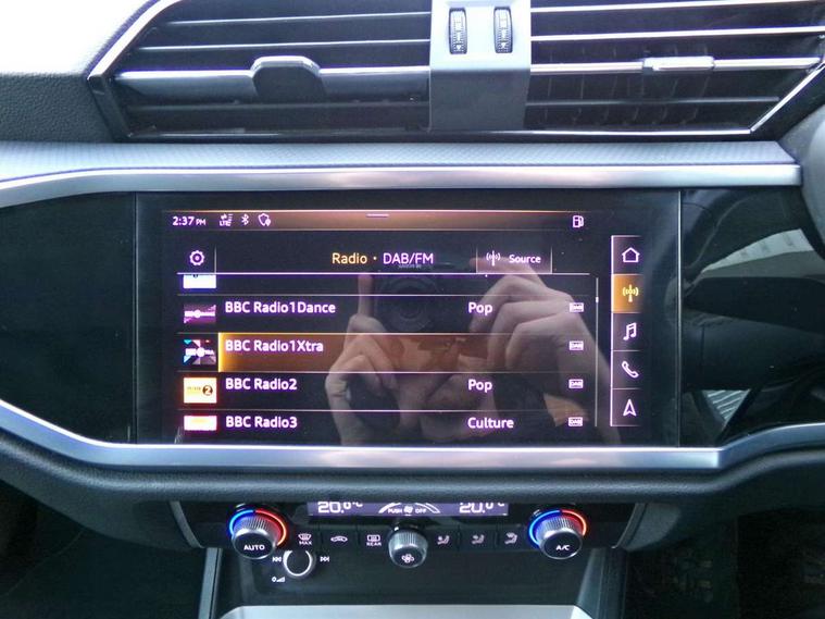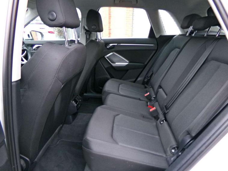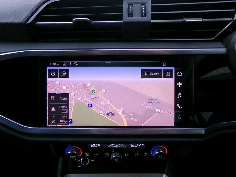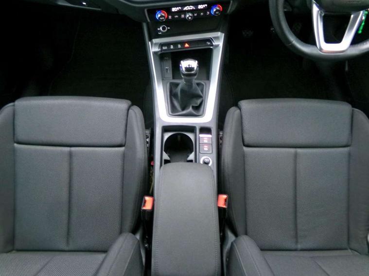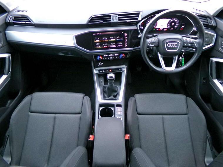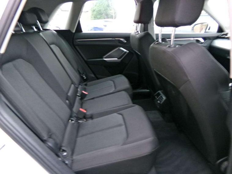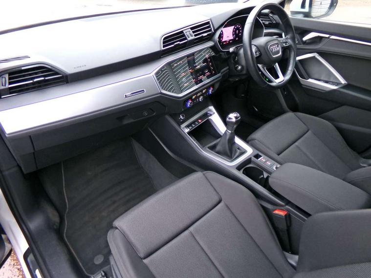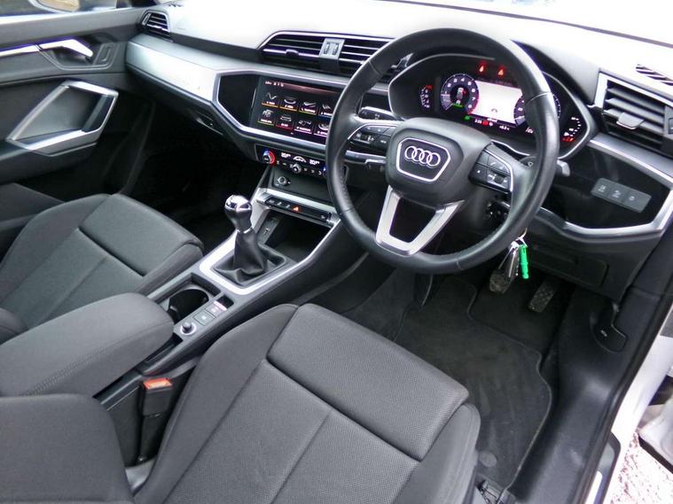 Audi connect safety and service (e-call), Audi drive select, Audi lane departure warning, Audi side assist, Audi smartphone interface, Audi Virtual Cockpit - 10.25" display, Bluetooth interface, Camera based traffic sign recognition, Cruise control + speed limiter, MMI Navigation Plus with high resolution 10.1 inch touchscreen colour display, Power operated tailgate, Progressive steering, Rear parking sensors, Service interval indicator, Start stop system with recuperation, Voice control system with natural language interaction, Sports suspension, 1 x USB type C and 1 USB type A charging points, 6 passive loudspeakers, DAB digital radio module, Acoustic windscreen, Aluminium window trim, Auto dimming frameless rear view mirror, Bumpers and underbody protection in contrasting manhattan grey paint finish, Diffuser grille in grained matt black, Diffuser trim in manhattan grey metallic, Door sill trims with illuminated aluminium inlay, Electrically folding, adjustable and heated door mirrors with integrated LED side indicators and kerb view function for passenger side, Front and rear electric windows, Front fog lights, Front side air inlets in Manhattan grey metallic, Grille surround in aluminium silver matt, High gloss black finish B and C pillars, Honeycomb design radiator grille in matt titanium black, LED headlights with LED daytime running lights and dynamic rear indicator, LED rear lights, Rain and light sensors, 12V socket in rear centre console, 40:20:40 folding with manual adjustment for 60:40 forwards/backwards position and backrest angle, Adjustable rear seat bench/backrest, Dual zone climate control, Front and rear floor mats, Front and rear headrests, Front and rear roof module including reading lights, Front centre armrest, Glove compartment lighting, ISOFIX child seat mounting and Top Tether with front passenger airbag deactivation, Luggage compartment light, Lunar silver cloth headlining, Manual front seats with height adjustment, Stainless steel luggage compartment sill finisher, Non smoking pack - Q3, 3x3 point rear seatbelts, 6 airbags - Driver, front passenger, curtain and side windows, Electrically operated child locks on rear doors, Electromechanical parking brake, Electronic stabilisation control including ABS, ASR and EDL, Hill descent control, Hill hold assist, Pre sense basic, Seatbelt monitoring, Tyre pressure warning, Warning triangle and first aid kit, Anti theft alarm, Anti theft wheel bolts, Audi pre-sense front with pedestrain and cyclist recognition, Remote central locking, MMI touch colour display in glass look, black with surround in aluminium look,
