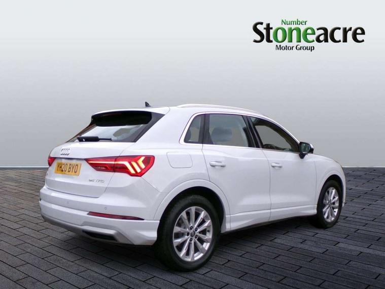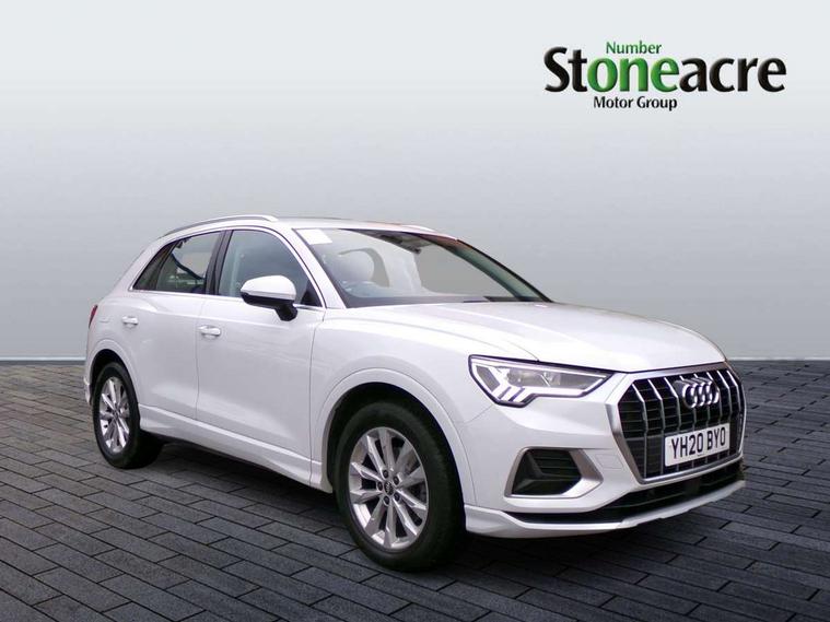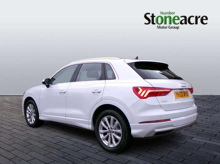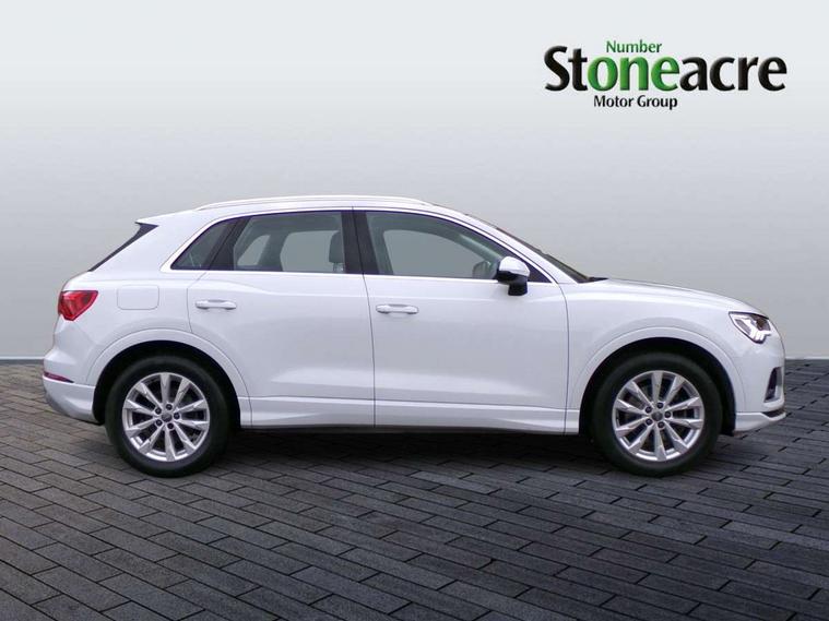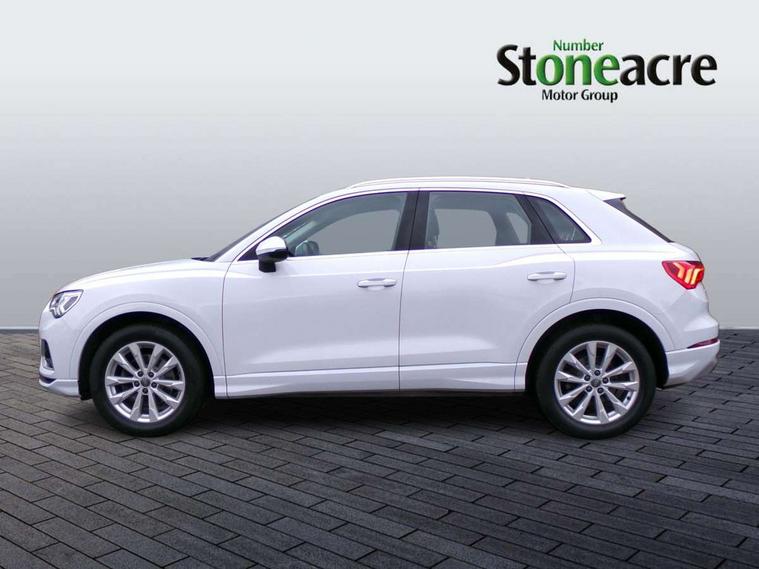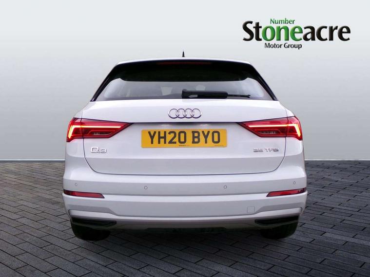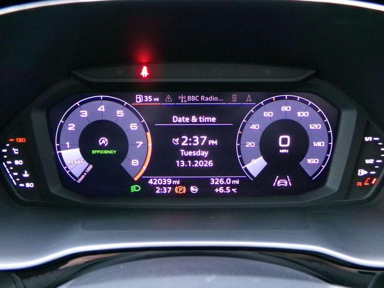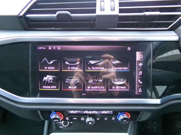 Audi connect safety and service (e-call), Audi drive select, Audi lane departure warning, Audi side assist, Audi smartphone interface, Audi Virtual Cockpit - 10.25" display, Bluetooth interface, Camera based traffic sign recognition, Cruise control + speed limiter, MMI Navigation Plus with high resolution 10.1 inch touchscreen colour display, Power operated tailgate, Progressive steering, Rear parking sensors, Service interval indicator, Start stop system with recuperation, Voice control system with natural language interaction, Sports suspension, 1 x USB type C and 1 USB type A charging points, 6 passive loudspeakers, DAB digital radio module, Acoustic windscreen, Aluminium window trim, Auto dimming frameless rear view mirror, Bumpers and underbody protection in contrasting manhattan grey paint finish, Diffuser grille in grained matt black, Diffuser trim in manhattan grey metallic, Door sill trims with illuminated aluminium inlay, Electrically folding, adjustable and heated door mirrors with integrated LED side indicators and kerb view function for passenger side, Front and rear electric windows, Front fog lights, Front side air inlets in Manhattan grey metallic, Grille surround in aluminium silver matt, High gloss black finish B and C pillars, Honeycomb design radiator grille in matt titanium black, LED headlights with LED daytime running lights and dynamic rear indicator, LED rear lights, Rain and light sensors, 12V socket in rear centre console, 40:20:40 folding with manual adjustment for 60:40 forwards/backwards position and backrest angle, Adjustable rear seat bench/backrest, Dual zone climate control, Front and rear floor mats, Front and rear headrests, Front and rear roof module including reading lights, Front centre armrest, Glove compartment lighting, ISOFIX child seat mounting and Top Tether with front passenger airbag deactivation, Luggage compartment light, Lunar silver cloth headlining, Manual front seats with height adjustment, Stainless steel luggage compartment sill finisher, Non smoking pack - Q3, 3x3 point rear seatbelts, 6 airbags - Driver, front passenger, curtain and side windows, Electrically operated child locks on rear doors, Electromechanical parking brake, Electronic stabilisation control including ABS, ASR and EDL, Hill descent control, Hill hold assist, Pre sense basic, Seatbelt monitoring, Tyre pressure warning, Warning triangle and first aid kit, Anti theft alarm, Anti theft wheel bolts, Audi pre-sense front with pedestrain and cyclist recognition, Remote central locking, MMI touch colour display in glass look, black with surround in aluminium look,