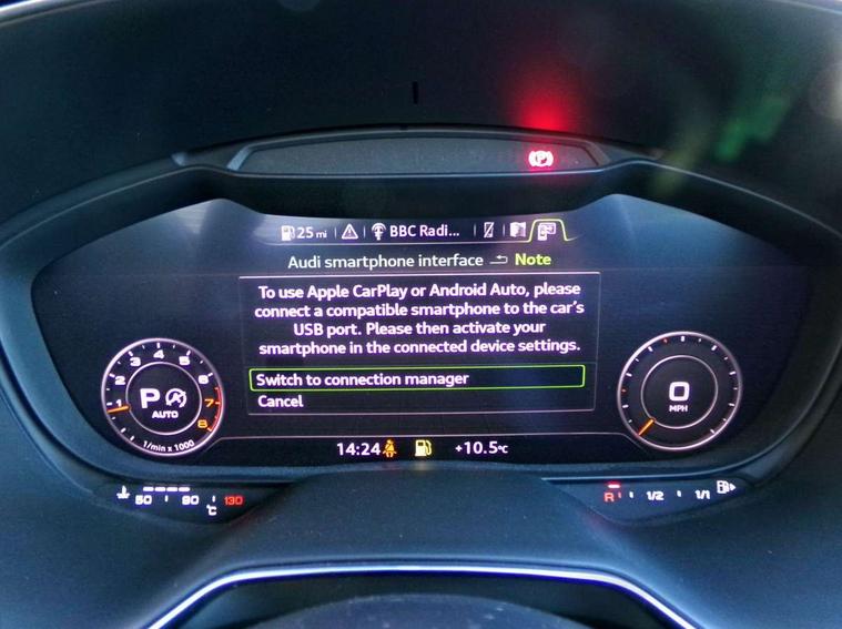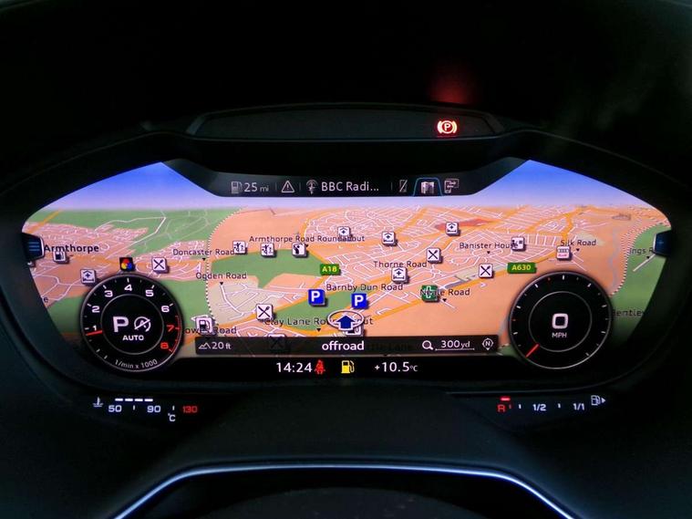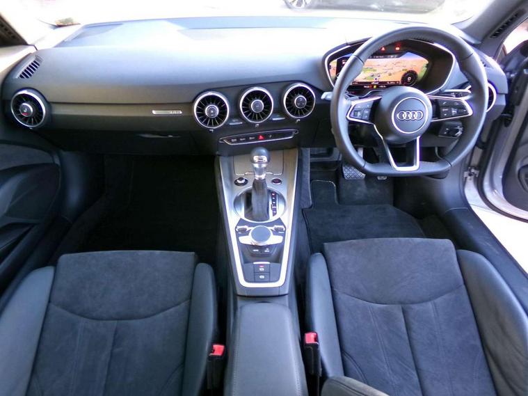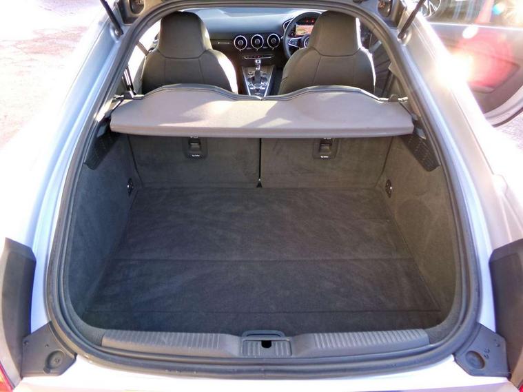 Audi drive select with 4 Pre configured modes, Audi smartphone interface, Audi virtual cockpit - 12.3" high-resolution LCD display with fully customisable instrument cluster, Cruise control + speed limiter, MMI touch panel, Mobile phone preparation with bluetooth interface, Progressive power assisted steering, Service interval indicator, Start/Stop system with energy recuperation, TP memo, Sports suspension, AM/FM radio, Bluetooth audio streaming, DAB Digital radio, MMI Radio with CD player and SD/XC card slot, Auto dimming rear view mirror, Body colour bumpers, Body colour electrically adjustable and heated door mirrors with built in LED side indicators, Electric folding door mirrors, Electric front windows, Front fog lights, Green tinted heat insulating glass, Light and rain sensors, Retractable rear boot spoiler, Sunband for windscreen, Xenon headlights with LED daytime running lights with automatic headline range control + LED rear lights, brake lights and rear indicators, 12V socket, 3 spoke flat bottomed high multi-function leather sport steering wheel with gearshift paddles, Alcantara/Leather upholstery includes seat centre panels, door trim inserts in black Alcantara with side bolsters, head restraints in black leather, Aluminium door sill trims, Front centre armrest, Front sports seats, Heated front seats, Height adjustable driver's seat, Height adjustable front head restraints, Height/reach adjust steering wheel, ISOFIX child seat mounting for front passenger seat with airbag deactivation, Rear head restraints, Rear top tether child seat ISOFIX attachment, Split folding rear seat, Non smoking pack - TT/TT RS, 3 point front seat belts, ABS, ASR traction control, Curtain airbags, Driver and front passenger airbag with front passenger airbag deactivation, EDL traction control, Electromechanical parking brake, ESP, First aid kit, Front side airbags, Head airbags, Hill hold assist, Seatbelt warning, Tyre pressure loss indicator, Warning triangle, Anti theft alarm, Anti theft wheel bolts, Immobiliser, Keyless Go, Remote central locking, Aluminium design inlays, Tool kit, Tyre repair kit,