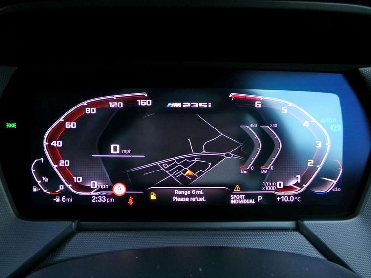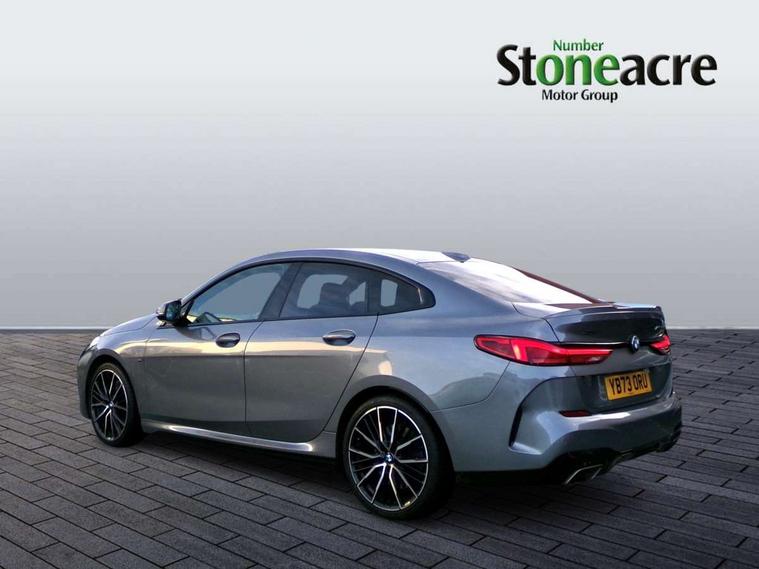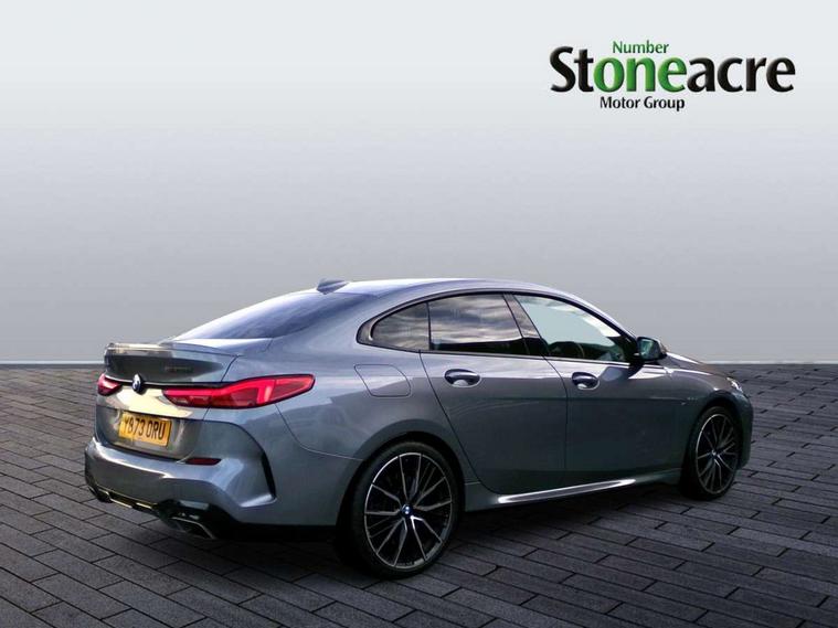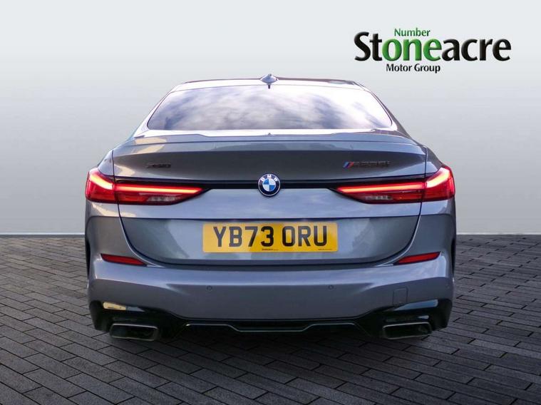 Active guard plus, Attentiveness assist, Auto start-stop, BMW ConnectedDrive online services, BMW Intelligent Personal Assistant, BMW Live Cockpit Professional with 10.25" high resolution instrument and control display, BMW Online services, BMW operating system with 7.0 mid interface, BMW Teleservices, Check Control warning system for monitoring of lights and door/luggage compartment open warning, Cruise control with braking function, Electro hydraulically controlled multi plate clutch in rear axle, Energy efficient operating strategy, iDrive controller with 7 short cut favourite buttons on centre console, Integrated navigation data with map data via USB +features such as 3D landmarks and micro city models, Integrated owners handbook, Intelligent voice assistant, Lane departure warning system, M Sport steering with M235i xDrive M performance specific settings, On board computer - average speed+fuel consumption, service interval, clock/date, odometer/trip meter, outside temperature display and ice warning, Optimum shift indicator, Personal Profile, Pull away assistant, Speed limiting function, 2 balance shafts, 8 speed sport automatic transmission with electronic selector lever, auto P function, coasting idle, race track, sport, gearchange display manual mode, Aluminium lightweight construction, BMW TwinPower twin-scroll Turbo four-cylinder petrol engine, Double VANOS, Drive performance control with ECO PRO comfort + sport mode, Electronic differential lock, Engine cover with M performance designation, High precision injection, Larger fuel tank capacity (50 litres), Launch control, M235i specific heavily de-throttled engine intake air guide, M235i specific high-performance cooling package, M235i specific larger turbocharger with integrated divert-air valve, Performance Control, Petrol Particulate Filter, Power transmission of front wheel drive on the rear axle via angle transmission on the front axle differential and two part cardan shaft, VALVETRONIC engine management, Variable, stepless and infinitely adjustable distribution of drive torque between the front and rear axles, xDrive intelligent all wheel drive with M235i specific reinforced components, 2x USB Type C ports (for charging and data transfer), 4G LTE Connectivity with hard wied 4G network sim card, DAB digital radio, MP3 players and RDS double tuner, Auto wipers, Automatically dimming rear view mirror, Body colour door handles, Direction indicator side lights integrated exterior mirrors, Electric windows - front and rear, with open/close fingertip control and trap release, Exterior mirrors - electrically folding with anti-dazzle, Fading support, Follow me home headlights, Front and rear bumper system with replaceable deformation elements, Front door sill finishers in black plastic with M235i designation, Heated, electrically adjustable exterior mirror aspheric on driver side, convex on passenger side, High gloss black B pillar finish, High gloss shadow line exterior trim, High level third brake light, LED daytime running lights, Lightweight engineering, M Performance exhaust system with valve control and minimised exhaust back pressure, M rear spoiler, Model designation on right side of tailgate includes xDrive designation onleft handside for M235i xDrive, Preparation for high beam assistant, Rain sensor with automatic headlight activation, Rear boot, Rear fog lights, Rear side wing doors, Reinforced crank drive, new pistons and adapted con rods, Reversing light in rear light cluster, Welcome lighting, 12V power socket in centre console, 2 cupholders in front centre console, 3 rear seat head restraints, 3 rear seats, 3 spoke M sports design leather steering wheel finished in nappa leather with specific M badge, Additional under floor storage in luggage compartment, Anthracite finished floor mats with contrasting surround, Anthracite headlining, Automatic two zone climate control air conditioning, Child seat ISOFIX attachment for two outer rear seats and front passenger seat with anchorage points, Conditioned based service, Driver and front passenger seat heating, Front and rear door pockets including bottle trays, Front and rear side armrests integrated into door trim, Front armrest foldable with integrated storage compartment, Front centre interior light over interior mirror and rear centre automatic interior light when door is opened/ignition switched off or via remote key, Front head restraints, Front M Sport seats, Front passenger seat, Glove compartment, Luggage compartment lighting, Manually adjustment steering wheel column, Multi-function controls for steering wheel, Shift-by-wire selector shift, Steering wheel paddles, Sun visors with vanity mirrors and insert tab, Through loading system with 40/20/40 split folding rear seat, Two lashing eyes, Additional interior lighting pack - 2 Series Gran Coupe, Connected pack professional - 2 Series Gran Coupe, Extended storage pack - 2 Series Gran Coupe, M Sport exterior styling aerodynamics pack - 2 Series Gran Coupe 235i, 2 tone horn, Airbag - Front driver and passenger, front and rear head, front side, curtain head protection, manual deactivation of front passenger airbag possible, Anti lock braking system (ABS) with cornering brake control, BMW emergency call, Brake drying, Braking readiness, City braking function, Crash sensor activating of airbags, Unlocking doors, hazard warning lights, interior light, safety battery terminal, Dynamic stability control + (DSC+), Dynamic Traction Control - DTC, Electrically operated hand brake, Integrated torsen mechanical limited slip differential on front axle, M Sport braking system in blue high gloss + blue painted brake calipers with M designation, M sport seatbelt, Rear brake discs, Rear child proof door locks, Seat belt security check for driver and front passenger, Seatbelt warning, Side impact protection, Three point seat belts on all seats including front belt stopper, pyrotechnic belt tensioners and belt force limiters, Trailer s