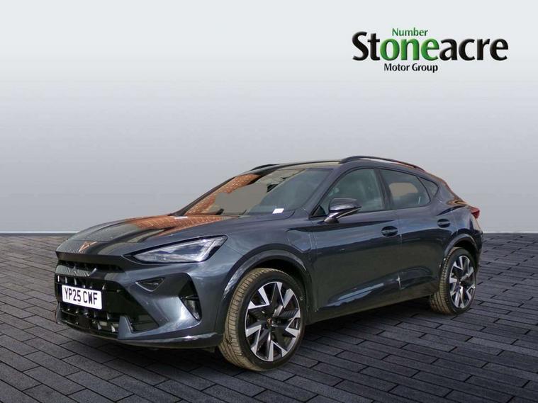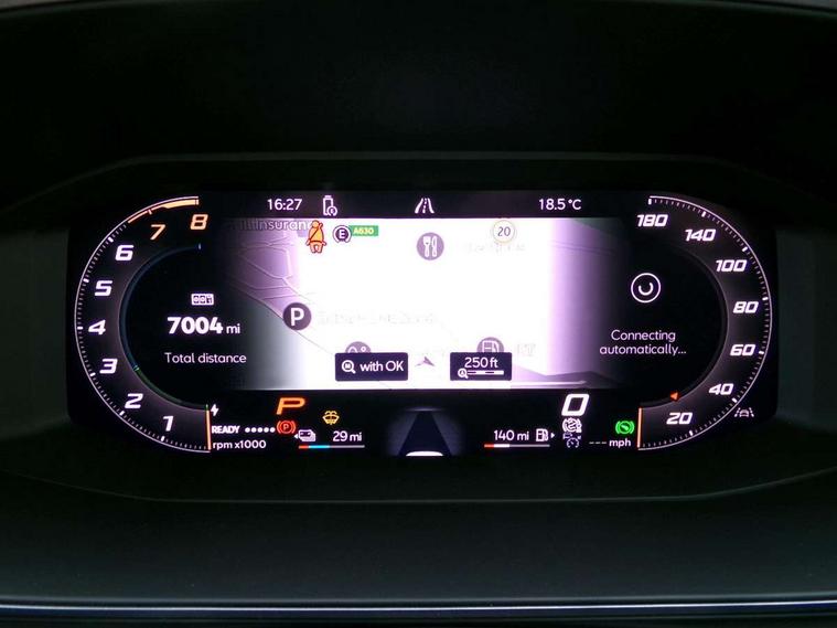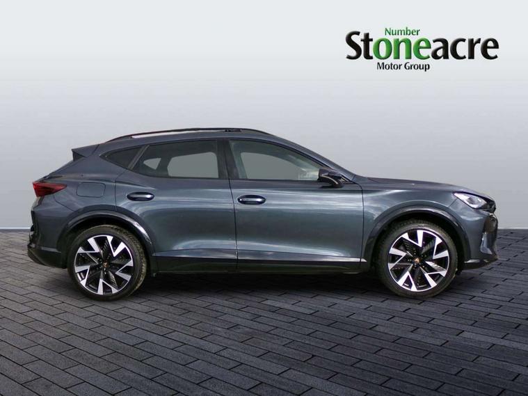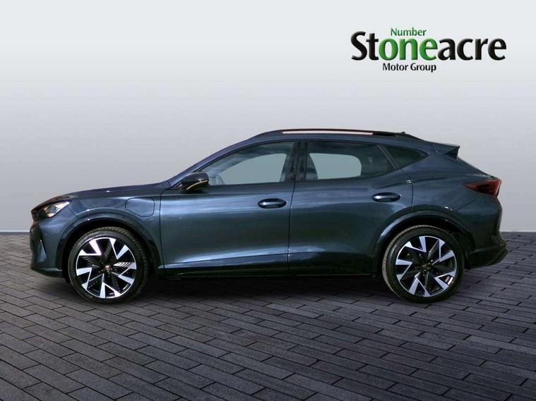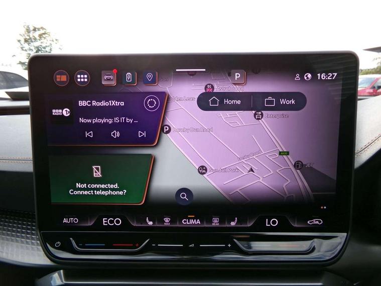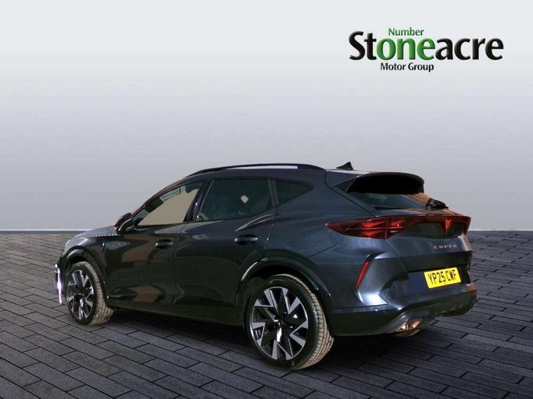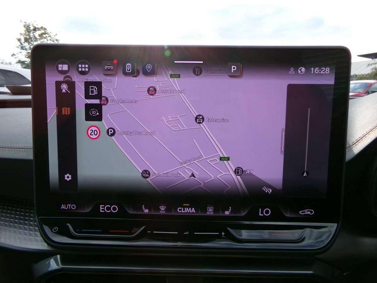 10.25" digital cockpit and configurable dashboard, Adaptive cruise control with follow-to-stop and speed limiter, Advanced driver alert system, Dynamic chassis control with driving profile selection (Comfort, Sport, CUPRA, Individual), Dynamic road sign display, Emergency steering support with turn assist, Forward collision warning with automatic braking, Front and rear parking sensors, Full link phone integration, Lane assist, Rear view camera, RPM, trip computer, outside temp gauge, instrument light brightness, low fuel warning light, lights on reminder, gearshift indicator, Service interval indicator, Speed sensitive power steering, Start/stop system with regenerative braking, Virtual pedal and electric tailgate, Voice control system, Wired Android Auto, Wireless apple carplay, Wireless phone charger, 10 amp mode 2 charging cable, 32 amp mode 3 charging cable, Adaptive chassis control with continuous operation, CUPRA sport suspension, Electronic locking differential and dynamic traction support, 2 front and 2 rear USB type C sockets, Media system with navigation, 12.9" touchscreen display, voice control, DAB, steering wheel mounted controls, Auto dimming rear view mirror, Body colour door handles, Body coloured bumpers, Dark grey wing mirror, Daytime running light with automatic headlight control and coming home feature, Door panel ambient lighting, Dynamic headlight range control, Electric front/rear windows, Electrically adjustable heated and folding door mirrors with memory function, Gloss black roof rails and window surrounds, High beam assist, LED 3rd brake light, LED front fog lamps with cornering function, LED Taillights with dynamic indicator, Matrix LED headlights with multifunction camera, Rain sensing wipers, Rear diffuser with copper simulated exhaust pipes, Rear fog lights, Rear side wing doors, Rear wash/wipe, Tinted rear windows, Welcome lights (within exterior mirror housing), 12V socket, 2 front and 2 rear reading lights, 3 seat bench in 2nd row, 60/40 split rear bench seat with armrest and mechanical seat release, Black headlining, Black interior roof lining, Cupra sports pedals, Dust/pollen filter, Electrically adjustable front seats with lumbar support and memory function, Front and rear head restraints, Front centre armrest, Heated front seats, Heated supersports multifunction leather steering wheel with satellite buttons and gear shift paddles, Height/reach adjust steering wheel, Illuminated aluminium doorsteps, Illuminated interior front door sills, Illuminated sunvisor with mirror, Isofix, Leather dashboard, door insert and side trim panel, LED smart wraparound lighting, PVC/Dinamica microfiber upholstery + bucket seats, Satellite steering wheel, Single front passenger seat, Storage pockets on rear of front seats, Three zone climate control with control panel in rear, 3 point seatbelts on all rear seats, ABS, Brake control system - ESC and brake booster, Child proof door locks, Driver and front passenger airbags with front passenger airbag de-activation, Electronic parking brake, Front and rear disc brakes, Front side curtain airbags, Hill hold control, Public e-call, Seat belt reminder for front and rear seats, Tyre pressure monitoring system, Anti theft alarm system, KESSY Advanced - Keyless start, keyless entry with SAFELOCK, Locking wheel bolts, Copper and aluminium interior detailing, 19" Sandstorm machined sport black and silver alloy wheels, Breakdown and tool kit,