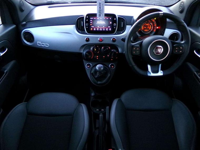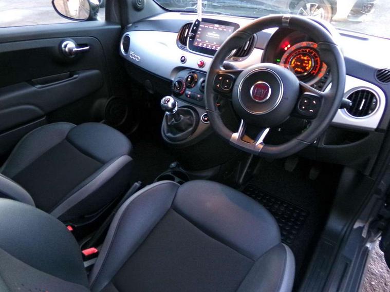 Adhesive skin for nest hub customized with 500 logo, Apple car play/Android Auto, Cruise control, External temperature gauge, Google nest hub with 7" smart display integrated with Google Assistant, digital portrait, smart home control, connected and controllable by voice, Google specific splash screen, Google welcome letter, Mopar connect services, Power assist steering, Rear parking sensor, Speed limiter, Stop/start system, Trip computer, 4 speakers, Rear speakers, Body colour electric adjustable door mirrors with defrosting / external temperature sensor, Body colour sports bumpers, Chrome plated exterior door handles, Dusk and rain sensors, Electric front windows, Front fog lights, Google specific exterior details with B-Pillar Google themed decal and Hey Google logo on fender, Halogen headlamps, Heat insulated glass, Heated rear windows with wash wipe, LED daytime running lights, 1 passenger grab handle, 50/50 split folding rear seats with height adjustable rear headrests, Auxilliary 12V power socket, Black door panel, Black pillars cover colour, Black techno leather steering wheel with audio controls, Front headrests, Google bag, Google key cover customized with 500 logo, Google specific interiors unique fabric seats upholstery, Google themed centre inserts, Height adjustable drivers seat, Height adjustable steering wheel, Isofix child seat preparation, Sports kit with top rear spoiler, side skirts and chrome exhaust, 7 airbags - Driver, passenger, side, window and drivers knee airbags, ABS/EBD, ESC + ASR/MSR + HBA + Hill holder, Passenger airbag deactivation system, Traction control, Tyre pressure monitoring system, Automatic door locking, Immobiliser, Locking fuel filler cap, Remote central locking, Silver matt dashboard with 500 logo silver,