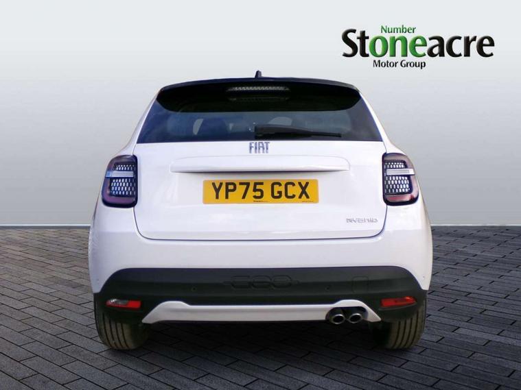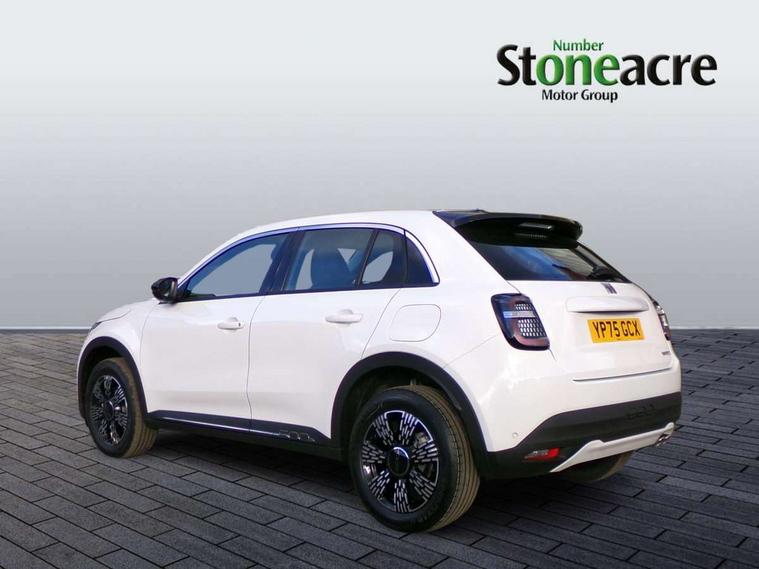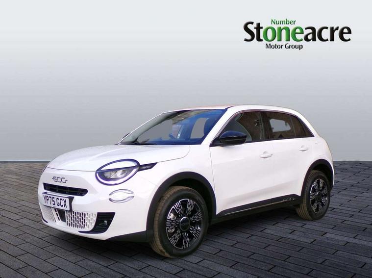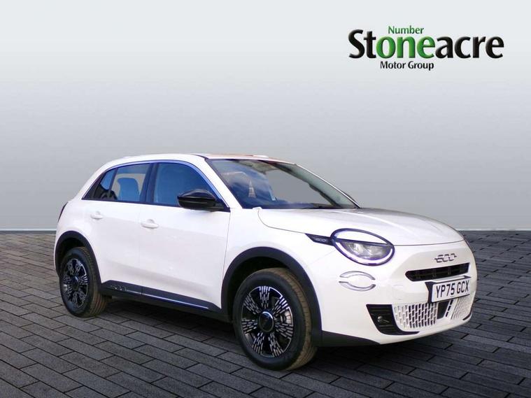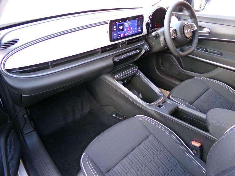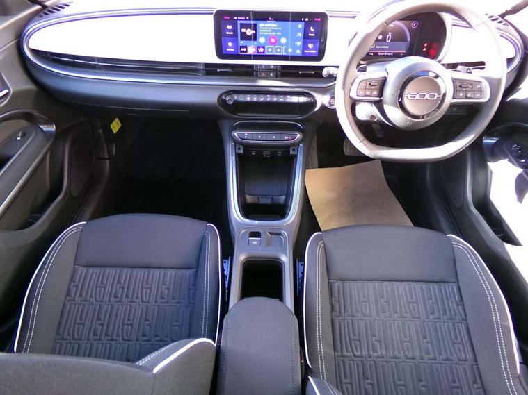 7" TFT digital cluster, Bluetooth connectivity, BSRF connectivity box, Connected services, Cruise control, Drowsy driver detection, Emergency E-call assist, Engine emission level default, GSR II step 1, Intelligent speed assist, Lane keeping assistant (LKA), Odometer, Power assist steering, Rain and dusk sensors, Rear parking sensors, Traffic sign recognition, Wireless apple car play/android Auto, Without drive mode selector, L2-AGM 12V battery, 1st Row USB type-A and USB type-C, 4 speaker audio system, Radio, Uconnect infotainment 10.25" touchscreen with DAB, All power windows express Up/Down, Auto dimming frameless rear view mirror, Automatic headlights, Body coloured door handles, Chrome day light openings, Electric adjustable door mirrors, Exterior chrome accents, Front and rear Chromed 600 logo, Gloss black finish B pillar, Gloss black shark fin antenna, Glossy black door mirrors, Heated windscreen wiper blade area, LED 3rd brake light, LED daytime running lights, LED Fog lamps with cornering function, LED front signature lighting, LED front turn indicators and position lights, LED rear lights, LED rear signature lighting, LED reflector headlamps, Matt black side skirts with 600 chromed logo, Rear bumper embossed 600 logo, Rear roof spoiler, Rear side wing doors, Rear wiper, 2 Spoke synthetic leather steering wheel with audio control, 3 rear headrests, 3 seat bench in 2nd row, 4 way manually adjustable passenger seat, 6 way manually adjustable drivers seat, Auxilliary 12V power socket, Body colour dashboard fascia, Chrome interior door handles, Dark metachrome dashboard ring, English handbook, Front centre armrest, Front headrests, Front passenger grab handle, Front seatback pockets, ISOFIX attachment on front passenger and rear passenger seats, Manual climate control, Metachrome central compartment bezel, Monogram fabric upholstery, Paddle shifts, Partial body cover for shipment, Predisposal for accessory upgrade to default tunnel pad cover (dedicated prnd bezel), Rear seat 40/60 split, Single front passenger seat, Smart 15L storage central tunnel with tunnel pad cover, Sunvisor label ciao Fiat, Sunvisors with vanity mirrors, 3x3 point rear seatbelts, 6 airbags, ABS, Autonomous Emergency Brake (AEB) & Vulnerable Road User (VRU) Protection, Child locks on rear doors, Electronic parking brake with auto hold, ESC (Electronic Stability Control), Front passenger airbag deactivation, Seatbelt reminder and pretensioners for all seats, Anti-theft volumetric alarm, Anti-theft wheel bolts, Keyless Go, 17" Diamond cut alloy wheels, Fix and go puncture repair kit,