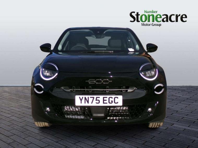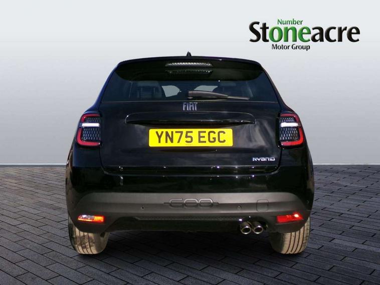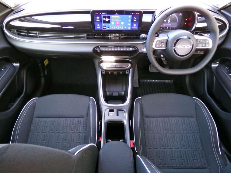 7" TFT digital cluster, Bluetooth connectivity, BSRF connectivity box, Connected services, Cruise control, Drowsy driver detection, Emergency E-call assist, Engine emission level default, GSR II step 1, Intelligent speed assist, Lane keeping assistant (LKA), Odometer, Power assist steering, Rain and dusk sensors, Rear parking sensors, Traffic sign recognition, Wireless apple car play/android Auto, Without drive mode selector, L2-AGM 12V battery, 1st Row USB type-A and USB type-C, 4 speaker audio system, Radio, Uconnect infotainment 10.25" touchscreen with DAB, All power windows express Up/Down, Auto dimming frameless rear view mirror, Automatic headlights, Body coloured door handles, Chrome day light openings, Electric adjustable door mirrors, Exterior chrome accents, Front and rear Chromed 600 logo, Gloss black finish B pillar, Gloss black shark fin antenna, Glossy black door mirrors, Heated windscreen wiper blade area, LED 3rd brake light, LED daytime running lights, LED Fog lamps with cornering function, LED front signature lighting, LED front turn indicators and position lights, LED rear lights, LED rear signature lighting, LED reflector headlamps, Matt black side skirts with 600 chromed logo, Rear bumper embossed 600 logo, Rear roof spoiler, Rear side wing doors, Rear wiper, 2 Spoke synthetic leather steering wheel with audio control, 3 rear headrests, 3 seat bench in 2nd row, 4 way manually adjustable passenger seat, 6 way manually adjustable drivers seat, Auxilliary 12V power socket, Body colour dashboard fascia, Chrome interior door handles, Dark metachrome dashboard ring, English handbook, Front centre armrest, Front headrests, Front passenger grab handle, Front seatback pockets, ISOFIX attachment on front passenger and rear passenger seats, Manual climate control, Metachrome central compartment bezel, Monogram fabric upholstery, Paddle shifts, Partial body cover for shipment, Predisposal for accessory upgrade to default tunnel pad cover (dedicated prnd bezel), Rear seat 40/60 split, Single front passenger seat, Smart 15L storage central tunnel with tunnel pad cover, Sunvisor label ciao Fiat, Sunvisors with vanity mirrors, 3x3 point rear seatbelts, 6 airbags, ABS, Autonomous Emergency Brake (AEB) & Vulnerable Road User (VRU) Protection, Child locks on rear doors, Electronic parking brake with auto hold, ESC (Electronic Stability Control), Front passenger airbag deactivation, Seatbelt reminder and pretensioners for all seats, Anti-theft volumetric alarm, Anti-theft wheel bolts, Keyless Go, 17" Diamond cut alloy wheels, Fix and go puncture repair kit,