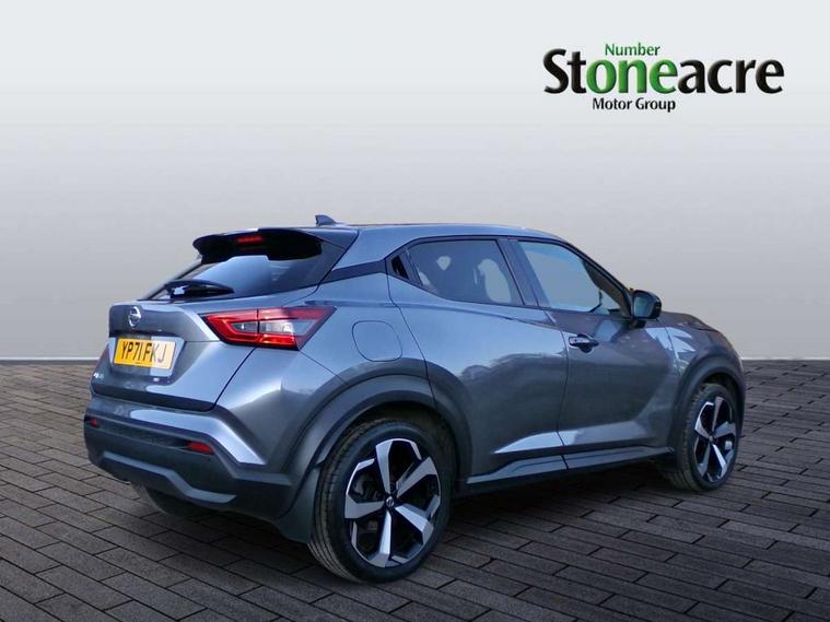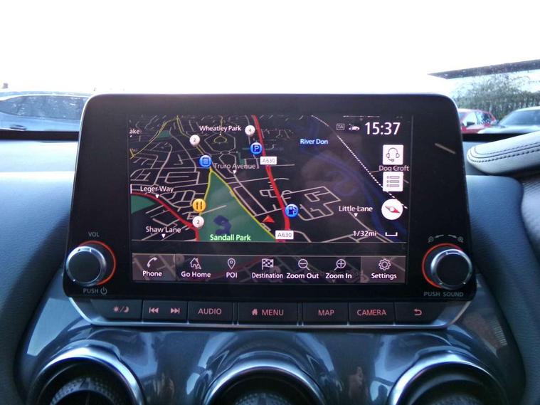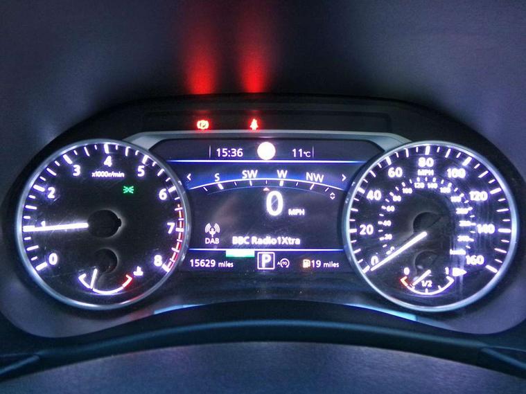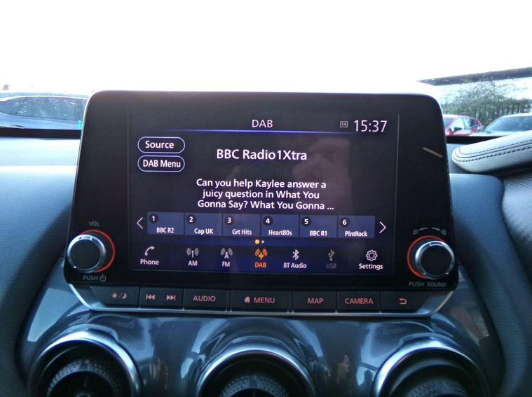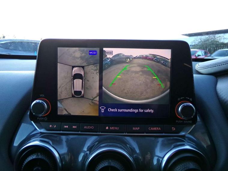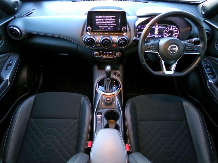 7" full colour TFT screen combimeter, Apple CarPlay and Google Android auto, Drive modes select (Eco, normal and sport), eCall emergency call system, Emergency and breakdown call, Front parking sensor, Idle start/stop system, Intelligent lane intervention, Lane departure warning system, Nissan connect 8" touch screen entertainment system, Nissan connect nav with TomTom traffic, Nissan connect services and Wifi connection, Outside temperature sensor, Power Steering, Rear parking sensor, Traffic sign recognition, Trip computer, Voice recognition, Gasoline particulate filter, Bluetooth system, USB, Aux-in and 12V socket, Bose personal plus audio system with 8 speakers(4 speakers and 2 headrest speaker for driver and passenger seats), Bose personal sound stage control, DAB Digital radio, Rear console USB port, Auto dimming interior rear view mirror, Auto headlights, Automatic hazard signal with emergency stop signal, Body colour bumpers, Body colour door handles, Electrically adjustable door mirrors with integrated indicators, Follow me home headlights, Front and rear electric window with one touch driver window, Heated and auto folding door mirrors, High beam assist, LED daytime running lights, LED front fog lights, LED headlamps, LED rear fog lamp, LED rear lamps, Rain sensor windscreen wipers, Rear privacy glass, Rear side wing doors, Rear wiper, Thermaclear heated windscreen, Three blink turn signal, 3 height adjustable rear headrests, 3 seat bench in 2nd row, 60/40 split folding rear seat, Automatic climate control, Card holder on driver sunvisor, Cloth/Synthetic leather upholstery, Door ambient lighting, Driver and passenger sliding and reclining seats, Driver seat back pocket, Driver side rear coat hanger, Driver/passenger sunvisors and vanity mirrors, Front and rear cabin lighting, Front armrest, Front door pockets with bottle holders, Front head restraints, Front passenger isofix child seat anchorage point, Front/rear passenger grab handles, Gear console ambient circle lighting, Grey synthetic leather kneepad, Heated front seats, Height adjustable driver's seat, Height adjustable passenger seat, Internal chrome door handles, Leather gearshift knob, Leather steering wheel, Luggage board, Luggage space lighting, Monoform sporty seats, Multifunction steering wheel, Passenger seat back pocket, Rear door bottle holders, Single front passenger seat, Steering wheel mounted gearshift paddles, Telescopic steering wheel adjustment, Two cupholders in front centre console, Two rear isofix child seat anchorage points with top tether, Welcome light and console tray ambient lighting, ProPilot pack - Juke, ABS with EBD and brake assist, Active ride control, Active Trace Control, Driver and passenger airbags, Driver and passenger side airbags, Electric handbrake with auto hold function, Electronic Stability Programme (ESP), Front and rear curtain airbags, Height adjustable seatbelts, Hill start assist, Intelligent emergency braking with pedestrian and cyclist recognition, Rear door child safety locks, Seatbelt reminder for driver/front passenger and rear seats, Single tone horn, Three 3 point rear seatbelts, Traction control, Tyre pressure monitoring system, VDC Dynamic Vehicle Control, Ventilated rear brake discs, Alarm, Immobiliser, Intelligent Key with push button starter, Remote central locking,