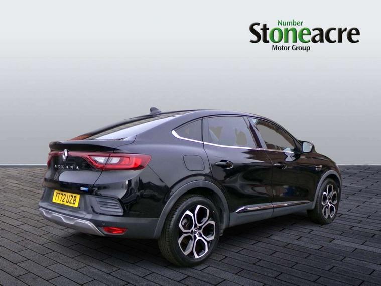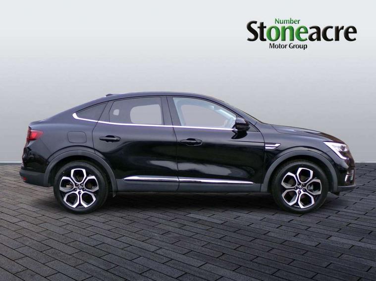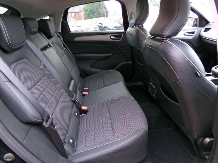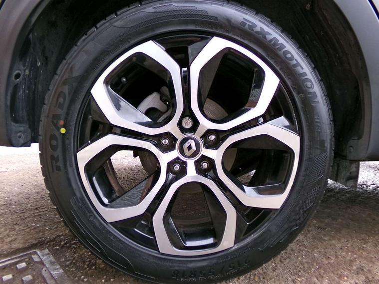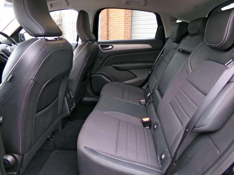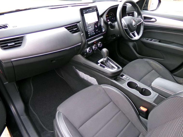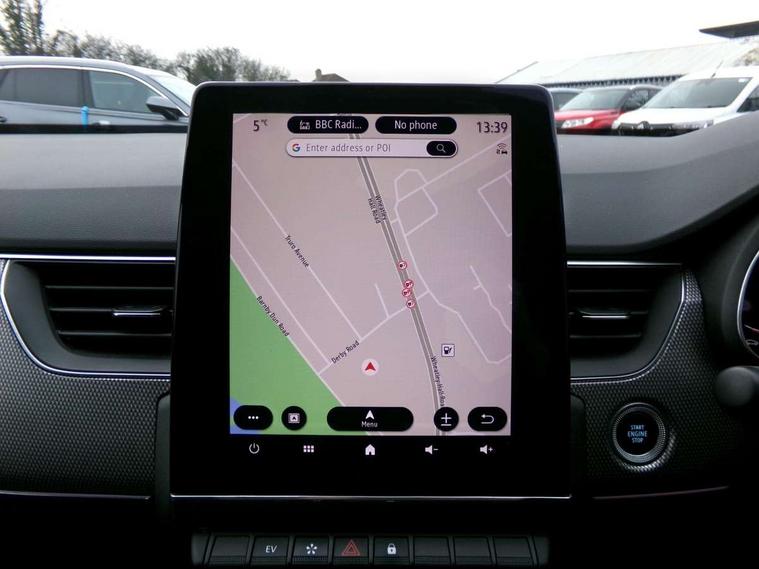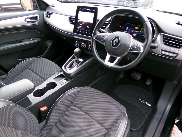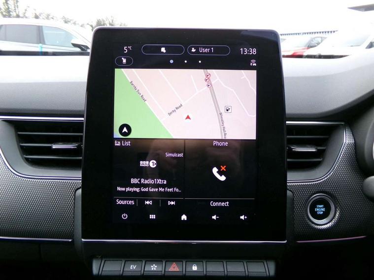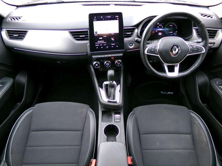 7" TFT Driver information display, Blind spot warning, Bluetooth system, EASY LINK 9.3" portrait touchscreen with navigation, Google search and traffic information, eCall emergency call system, Eco mode, EV button to activate pure mode, Front and rear parking sensors, Gear change indicator, Lane departure warning, Lane keep assist, Multi-sense - 3 driving modes and 8 ambient lighting, Rear cross traffic alert, Rear view camera, Renault automatic emergency assist, Smartphone integration compatible with Apple CarPlay and Android Auto, Traffic sign recognition with over speed prevention, Trip computer, Variable assistance electric power steering, Arkamys classic sound system with 6 speakers, DAB radio, USB port, 3rd brake light, Auto dimming rear view mirror, Automatic headlights, Automatic high / low beam, Automatic windscreen wipers with rain sensor, Black side door protection with chrome insert, Body coloured bumpers, C-shaped LED front signature lighting, Chrome decopart on wing (fender molding), Chrome window lower lining, Extra tinted rear windows and tailgate, Front and rear electric windows, Front driver window with one touch facility and anti-pinch function, Front grille with chrome on upper part, Full LED headlights, Grey front and rear skid plates, Heated rear window, Rain sensor, Rear windscreen wiper, Shiny black shark fin antenna, Side mirrors adjustable electrically, electrically foldable, with defrosting and temperature sensor, automatically foldable at vehicle closure, 3 seat bench in 2nd row, 60:40 split and fixed base rear seats, Automatic climate control with combined filter, humidity sensor and AQS, Central console with storage, Front and rear head restraints, Height and reach adjustable steering wheel, ISOFIX child seat fixing points on rear outermost seats, Leather steering wheel, LED front and rear roof lights, Rear air vents, Single front passenger seat, 3x3 point rear seat belts, ABS+EBA, Active emergency braking system, B Brake Mode - One pedal driving with increased regenerative braking, Distance warning alert, Driver airbag, Driver and passenger front and side airbag deactivation, Driver and passenger side airbags, Driver height adjustable seat belt, Electronic parking brake with auto hold, ESC (Electronic Stability Control), Front and rear no seatbelt warning sound, Front curtain airbags, Front head airbags, Hill start assist, Passenger airbag, Tyre pressure warning light, Anti drill door locks and locking fuel cap, Central door locking, Deadlocking system, Hands free keycard with Keyless access and start, RAID (Renault Anti-Intruder Device) automatic door locking, Rear side wing door and window child locking function (front driver door control panel), Superlocking, Thatcham alarm, 18" Pasadena diamond cut alloy wheels with grey inserts,