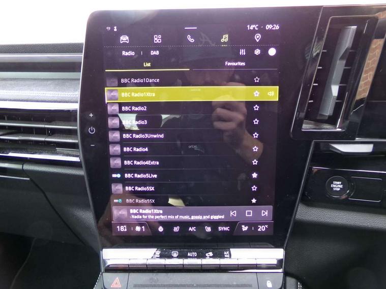 12" openR multimedia screen, 12.3" driver information display cluster, 9.3" head-up display, Apple car play and Android auto, Autonomous driving level 2: adaptive cruise control with speed limiter, lane centering and hands-off detection, Blind spot warning, Bluetooth, Configurable dashboard display, Digital owner's manual, Driver attention alert system, E-call, Eco mode, Electric power boot opening, Emergency lane keep assist including overtaking and oncoming traffic, Engine start button, Exterior temperature display, Front cross traffic camera, Front, rear and side parking sensors, Gear selection indicator, Google built-in: maps, assistant and playstore, Internet access, Lane change warning, Lane departure warning, Multisense driving modes (eco, comfort, sport and normal), OEM internet services, On board diagnostics, PAS, Pedestrian alert, Real time traffic information, Rear cross traffic alert, Rear cross traffic camera, Rear view camera, Service interval indicator, Start/stop system, Tailgate, Traffic and speed sign recognition with overspeed prevention, Travel data recorder, Trip computer, Voice control for audio, climate, telephone, navigation, Wi-Fi hotspot, 2 front and 2 rear USB-C ports, Arkamys audio system with 8 speakers, DAB radio, Steering wheel audio controls, Auto dimming door mirrors, Auto dimming rear view mirror, Automatic high / low beam, Body coloured bumpers, Cornering headlights, Door mirror LED indicator lights, Door sill protector, Electric adjustable door mirrors, Electric folding and heated door mirrors, Electric one-touch power front and rear windows, esprit Alpine detailing, Flush roof bars, Frameless rear view mirror with rain and light sensor, Front fog lights, Front wiper de-icer, Heated rear window, LED 3rd brake light, LED adaptive vision, LED daytime running lights, LED rear lights with moirage effect, Matrix LED vision headlights, Privacy glass, Rear side wing doors, Shark fin antenna, Tinted rear windows, Trailer Stability Programme, Underbody protection, Variable intermittent front wash/wipe, Variable intermittent rear wash/wipe, 12v power outlet in cargo area, 12V power outlets front and rear, 3 folding rear headrests, Air purifier, Cabin air filter, Cigarette lighter, Cloth/alcantara upholstery, Cruise control operation in steering wheel, Dual zone automatic climate control, Electric front seats with lumbar adjustment, massage function, driver recognition and easy access, Esprit Alpine leather steering wheel, False floor in boot, Front and rear head restraints, Front floor lighting, Heated front seats, Heated steering wheel, Interior ambient lighting, ISOFIX child seat fixing points on rear outermost seats, Luggage area divider, Luggage compartment cover, Luggage compartment light, Manually adjustable steering column, Multifunction steering wheel, Reach and rake adjustable steering column, Rear armrest, Regenerative braking paddles, Rubber floor mats, Seat pockets on rear of front seats, Single front passenger seat, Sliding 3 seat rear bench, Sliding centre console handrest, Tie down hooks, Timed interior light, 3 point seatbelts on all rear seats, ABS, Automatic emergency braking system (urban, city pedestrian and cyclist), Curtain airbags, Distance warning alert, Driver airbag, Driver knee airbag, Electronic parking brake with auto hold, Emergency brake assist with intersection function, ESP, Fire protection system, Front & rear active emergency brake assist, Front side airbags, Height adjustable front seatbelts, Height adjustable rear seatbelts, Hill start assist, Manual rear child locks, Passenger airbag, Passenger airbag deactivation system, Passenger knee airbag, Pedestrian airbag system, Seatbelt load limiter, Seatbelt pretensioners, Seatbelt reminder, Tyre pressure monitor, Alarm, Central locking, Drive away door locking, Hands free key card with keyless entry, Immobiliser, Remote central locking, Remote vehicle locator, 20" Daytona alloy wheels,