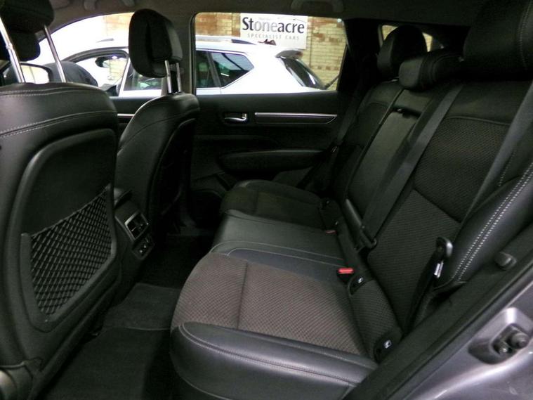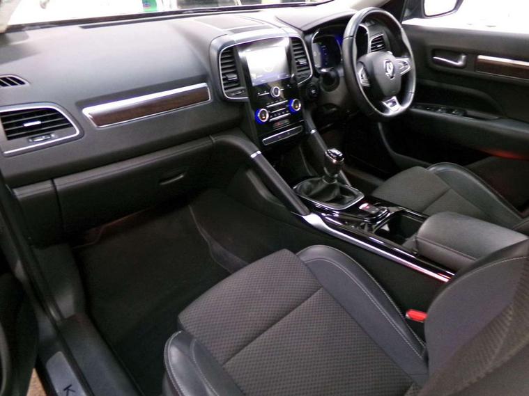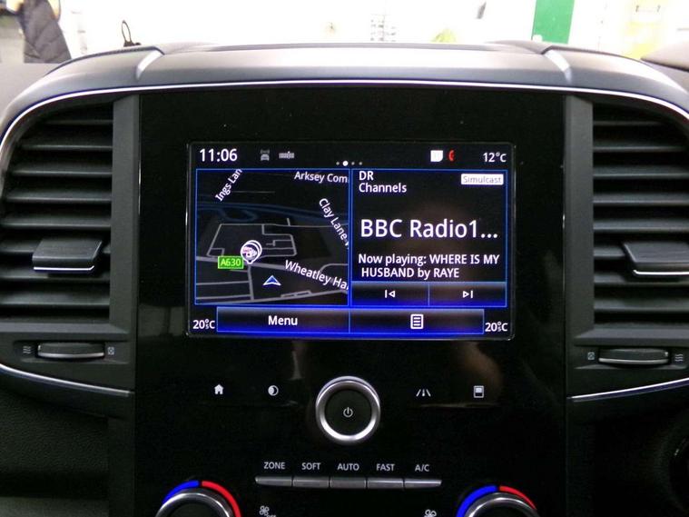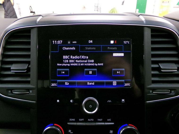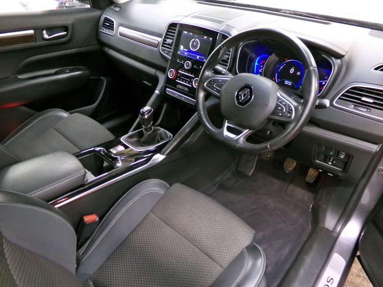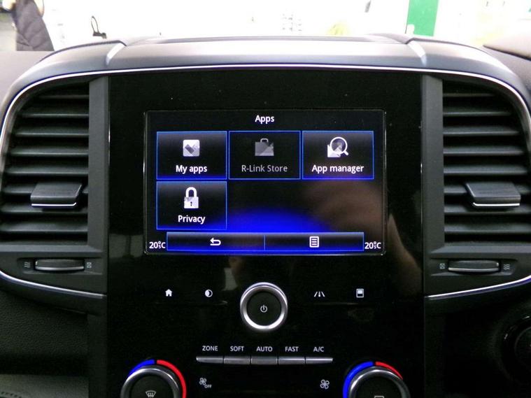 Apple car play/Android Auto, Blind spot monitoring, Cruise control + speed limiter, Digital speedometer, Door/boot open warning light, Eco mode, Exterior temperature gauge, Front and rear parking sensors, Low fuel level warning light, PAS, R-Link 2 multimedia system with 7" touch screen, TomTom Live 3D navigation, european mapping and app store, Rear parking camera, Rev counter, Traffic sign recognition, Trip computer, Visio system - lane departure and high beam assist, Voice control system, 4 speakers, Auxiliary input socket, DAB Radio with Bluetooth and USB, Fingertip controls for audio system, Automatic headlights and windscreen wipers, Body colour door handles, Body coloured door mirrors, Electric adjustable/heated/folding door mirrors, Electrochrome rear view mirror, Extra tinted glass in rear windows and tailgate, Front and rear electric windows, Front and rear towing rings, Front fog lights, Heated rear windscreen, LED daytime running lights, Longitudinal roof bars, Panoramic sunroof, Rear wiper, 3 height adjustable rear headrests, 3 seat rear bench, 60/40 split folding rear seat, Air recirculation system, Ambient lighting, Centre rear armrest with cup holder, Driver's seat with lumbar adjustment, Driver/passenger reading lights, Dual zone automatic climate control, Front centre armrest with storage, Front courtesy lights, Heated and cooled front cupholders, Height adjustable driver's seat, Height adjustable front headrests, Height adjustable passenger seat, Height/reach adjust steering wheel, Illuminated luggage compartment, Illuminated sun visor mirrors, Isofix system on outer rear seats, Leather steering wheel, One touch easy folding rear seating system, Pollen filter, Rear courtesy lights, Rear passenger heating ducts, Synthetic leather/cloth upholstery, Two 12V accessory power outlets, ABS + EBD + EBA, Driver/passenger 2 stage auto adaptive airbags, Electronic parking brake, ESP with ASR and UCL (understeer control logical), Front and rear curtain airbags, Front lateral airbags, Front side airbags, Height adjustable front seatbelts + pretensioners, Hill start assist, Inertia reel 3 point seatbelts on all seats, Manual passenger airbag deactivation function, Seatbelt warning, Side impact protection, Traction control, Tyre pressure monitor, Anti-drill door locks/ignition barrel, Hands free Renault card, Insurance approved Cat 1 alarm system, Insurance Approved Immobiliser, RAID (Renault Anti-Intruder Device) with automatic door locking, Superlocking, 18" Agapi diamond cut alloy wheels,