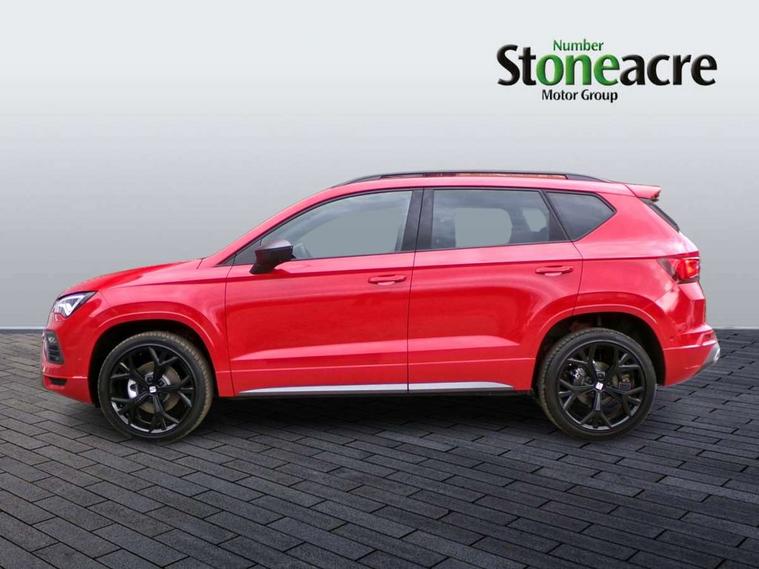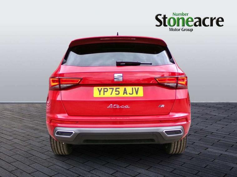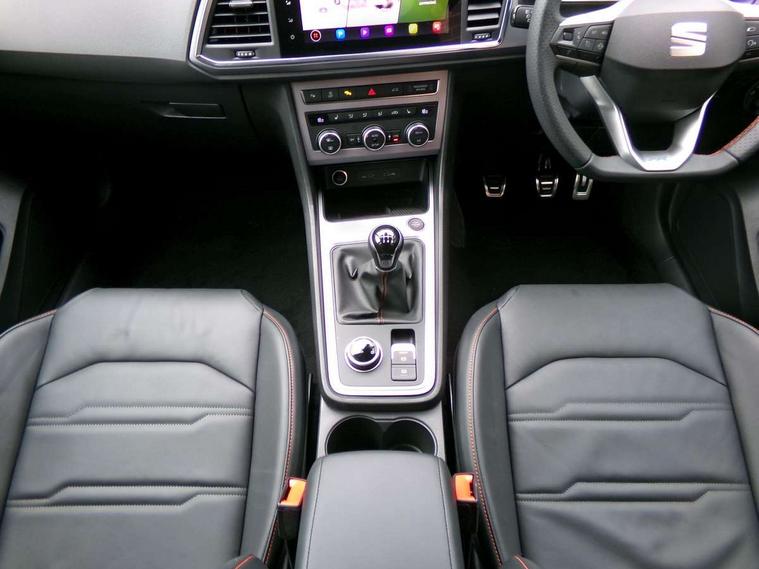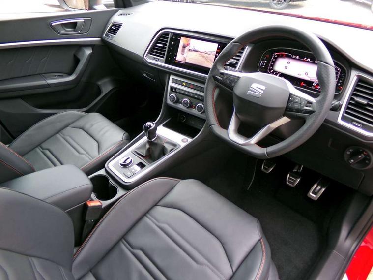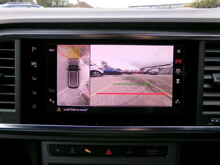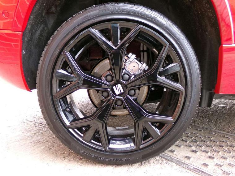 10" Digital cockpit, Bluetooth audio streaming with handsfree system, E-call, Electric tailgate with virtual pedal, Outside temperature gauge, Progressive power assisted steering, SEAT drive profile with driving experience button - Normal, Sport, Eco and Individual mode, steering and throttle response, Self parking functionality (includes front and rear parking sensors), Speed limiter, Start/stop system, Top view camera with rear view camera, Trip computer, wired and wireless full link smartphone integration, Wireless phone charger, Steering wheel mounted audio/phone controls, Black roof rails, Black side window trim, Body colour bumpers, Body coloured wheel arch surrounds, Chrome front grille frame, Dark tinted rear windows, Daytime running lights, Door mirrors with welcome light silhouette, Dynamic headlight range control with self adjusting whilst driving, Electric adjustable/heated/folding door mirrors, Front and rear electric windows, Illuminated aluminium front door sill, LED 3rd brake light, LED headlamps with lens and LED front fog lamps with cornering function, LED rear tail lights with dynamic indicators, Rear exhaust tailpipe, Rear fog lights, Rear side wing doors, Rear spoiler, Rear wash/wipe, Variable front intermittent wipers, 12v socket in front, 3 seat bench in 2nd row, 60/40 split folding rear seat, Aluminium pedals, Black greenhouse interior roof, Dual zone climate control, Electric adjustable driver seat with memory function, Front and rear head restraints, Front centre armrest, Front seat back storage pockets, Heated front seats, Height adjustable passenger seats with lumbar adjustment, ISOFIX points in outer rear seats with top tether anchorage points, Leather sports steering wheel and gear knob, Leather upholstery with front comfort seats, Rear armrest and easy back seat release mechanism from boot, Single front passenger seat, Convenience pack - Ateca, Interior lighting pack - Ateca, Navigation system pack with DAB - Ateca, Safety and driving pack (L) - Ateca, Safety and driving pack with attention and drowsiness assist - Ateca, 3x3 point rear seatbelts, ABS, Traction control system (TCS), Electronic stability control (ESC) and Electronic differential lock system (XDS), Airbags - Driver and front passenger airbag with deactivation, front side, two curtain and driver's knee airbags, Electric parking brake with auto hold function, Front and rear seatbelt reminder, Hill hold control, Manual rear child locks, Single tone horn, Tyre pressure monitoring system, Alarm, Keyless entry, Locking wheel bolts, Remote central locking, Chrome interior detailing, 19" Exclusive alloy whelels 36/10 in glossy black, Tool kit,