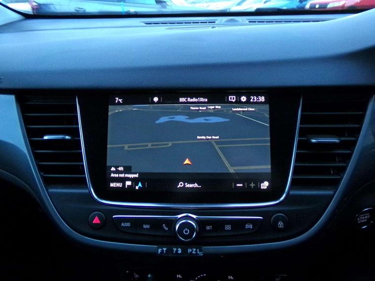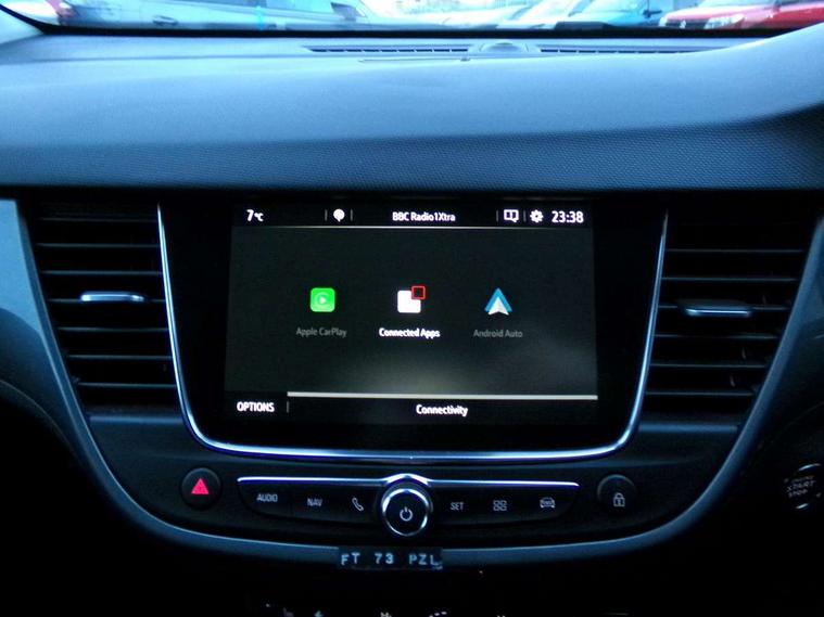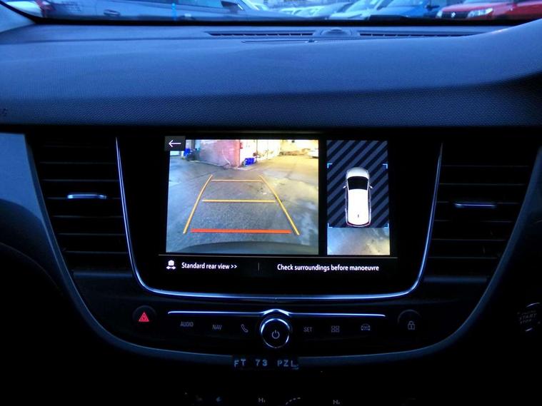 3.5" colour instrument display, Advanced Park Assist, Audible lights on warning, Cruise control + speed limiter, Digital clock with automatic RDS time adjustment, Driver drowsiness alert system, E-call, Forward collision warning, Front camera system, Instrumentation - Speedometer, rev counter, low fuel gauge warning light + water temperature gauge warning light, shift up/down indicate light, Lane departure warning with lane keep assist, Multi function trip computer, Multimedia sat nav pro with 8" colour touchscreen, AM/FM, Bluetooth streaming, Bluetooth mobile phone portal, apple CarPlay/Android Auto + 6 speakers, Outside temperature display with ice warning, Panoramic rear view camera, Refridgerant low indicator, Service interval indicator, Side blind spot alert, Smartphone projection, Speed sensitive power steering, Speed sign recognition, Start/stop system, Vauxhall connect, Vehicle microphone, Front wheel drive, 2 x USB connections, DAB Digital radio, Steering wheel mounted audio/phone/cruise controls, 2 speed wipers/wash wipe/intermittent wipe, Automatic anti dazzle rear view mirror, Automatic headlamp levelling system, Automatic high beam control with cornering light, Automatic lighting control, Black door mirror caps, Black griffin logo, vizor frame, rear lettering and skid plates, Body colour door handles, Body colour front and rear bumpers, Chrome effect upper window moulding, Collapsible windscreen wipers, Dark tinted rear side windows + tailgate window, Electrically adjustable, heated and power folding door mirrors, Electrically operated front and rear windows with safety auto reverse and one touch up/down facility, Flexible roof mounted aerial, Hazard warning lights, Headlamps for left side traffic, Heated rear window, Integrated tailgate spoiler, Intermittent rear wash/wipe, LED 3rd brake light, LED daytime running lights, LED front fog lights, LED Headlights, LED side repeat indicators, LED tail lights, Rain sensitive windscreen wipers, Rear fog lights, Rear side wing doors, Reversing light, Side window demist vents, Silver roof rails, Solar heat absorbing windscreen and windows, Upper and lower bumper design, Welcome lighting, Windscreen demist vents, 12v power outlet - front, 12V power outlets on rear seat, 3 seat bench in 2nd row, 3 spoke leather covered steering wheel, Air recirculation facility, Alcantara suede/vinyl upholstery, Ambient lighting, Anti submarining ramps in front seats, Cabin particulate filter - removes dust, airborne particles and pollen, Centre console storage box with sliding lid, Centre console with two cup holders and open storage box, Chrome effect digital instrument cluster surround, Driver's vanity mirror with flip up cover, Dual zone electronic climate control, Ergonomic active driver’s and front passenger’s seat with AGR approved 8 way adjustable, seat cushion extension, 4 way electrical lumbar adjustment, Fade up/fade down on interior lighting, Four adjustable facia vents, Front and rear central courtesy light, Front centre armrest for drivers seat, Front door pockets with 1.5 litre bottle holder, Front map reading lights, Fully carpeted luggage area, Glovebox with lid, Height adjustable front/rear head restraints, Illuminated load area, Isofix system on outer rear seats, Jet black fabric side bolsters, Luggage compartment cover, Multi-speed fan with Illuminated control, Passenger assist handles, Passenger's illuminated vanity mirror with flip up cover, Reach + rake adjustable steering column, Rear dome lamp, Rear door pockets with 0.5 litre bottle holder, Rear floor ventilation ducts, Satin chrome effect bezel on steering wheel, Single front passenger seat, Storage pockets on front seat backs, Versatility pack - Crossland, Winter pack - Crossland, 3x3 point rear seatbelts, ABS, Automatic emergency braking with pedestrian detection, Child locks on rear doors, CSC - Cornering stability control, Deactivate switch for side impact airbags, Deformation zones front and rear, Driver and front passenger airbags, Dual seatbelt pretensioners on front seats, EBD - Electronic brakeforce distribution, Energy absorbing steering column, Engine drag torque control, ESP + traction control, Front side impact airbag, Full size curtain airbags, Hill start assist, Hydraulic Brake Assist (HBA), Hydraulic brake boost, Inertia reel lap and diagonal seatbelts for all seats, Passenger airbag deactivate switch, Rear seat belt pretensioners, Reinforced passenger safety cell, Seatbelt load limiter, Side impact protection beams, Smart seatbelt reminder for front and rear seats, Tyre pressure monitoring system, 2 remote folding keys, Electronically protected audio equipment, Engine immobiliser, Keyless entry and start, Locking wheel bolts, Remote control central locking, Remote control security alarm system, Visible vehicle identification number, Black facia with dark grey trim inserts, Cluster black with chrome rings, Silver trim inserts on front doors, 17" Five twin spoke diamond cut bi colour alloy wheels,