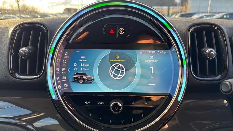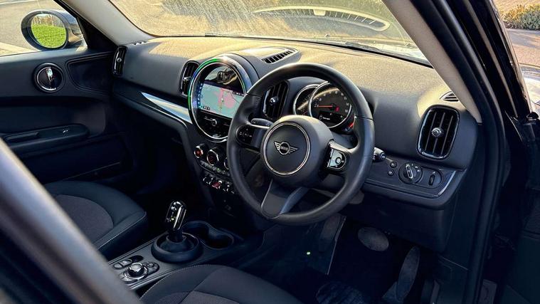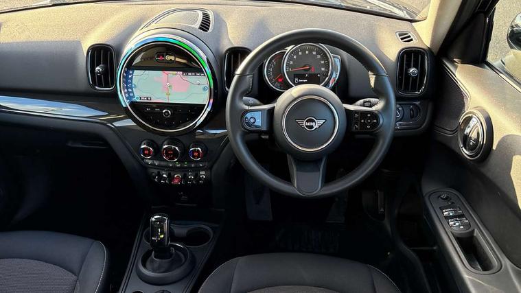 Active Guard incl speed limiting and lane departure functions with auto steering, and front collision warning with brake intervention, Automatic start/stop function with brake energy recuperation, Compatible mobile phone bluetooth with audio streaming, Cruise control with brake assist, Electro-mechanical speed dependant steering assistance, Instrument cluster, Mini E-call, On board computer, Rear parking distance control, 51 Litre fuel tank, Double Vanos system, Fully variable valve control, High precision injection, Performance Control, Steptronic transmission with double clutch, FM tuner and DAB digital radio, 3rd brake light, Body colour fuel filler cap, Day time driving lights, Door sill strips, Dynamic brake lights, Electric windows, Heated rear window, Heated windscreen washer jets, LED fog lights, LED Headlights, Left exhaust tailpipe with chrome finisher, Model logo, Model logo on Tailgate, Radiator grille, Rain sensor with auto headlights, Rear fog lights, Rear side wing doors, Rear window wiper, Side scuttle panel with integrated indicator, Split rear doors, Sun/heat protection glass, White indicator lenses, 12V socket in centre console, 3 seat bench in 2nd row, 3 spoke sport leather steering wheel + limiter function and audio controls, 360L luggage compartment capacity, 4 lashing eyes in luggage compartment, 40:20:40 split folding rear seats, Chrome interior highlights, Colour line - Carbon black, Cupholders, English handbook, Floor mats, Front headrests, Glove compartment, Headliner with grab handles and clothes hooks, Height and length steering column adjustment, Interior lighting with 12 basic colours selectable via toggle switch in roof, Isofix rear child seat preparation, Leather gearshift lever and handbrake gaiters, LED reading lights, vanity mirror lights, front foot well light and spotlight on front seats, Manual air conditioning, Mechanical seat adjustment, driver seat height adjust, forward/back and front seats backrest, Multifunction steering wheel, Passenger seat height adjuster, Rear headrests, Single front passenger seat, Storage compartments in doors, Sunvisors with vanity mirrors, Excitement pack - Countryman, Navigation pack - Countryman, 2 tone horn, 3 point seatbelts on all seats, 6 Airbags - front, side, head and seat belt tensioners, Anti-lock braking system (ABS), DSC - Dynamic Stability Control, Electronic handbrake, Front and rear disc brakes, Hill start assist, Manual rear child locks, Tyre pressure monitoring system, Alarm system with tilt sensor, monitoring doors, bonnet interior and tailgate, Auto drive away locking, Deadlocking function, Electronic vehicle immobiliser, Locking wheel bolts, Start/stop toggle with keyless go, Tool kit,