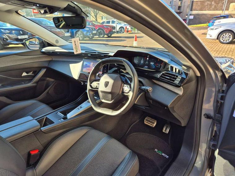 10" Capacitive colour touchscreen with connected 3D navigation, Bluetooth telephone facility, Compact automatic gearbox impulse selector, Driver attention warning, eCall emergency call system, Emergency call service, Exterior temperature indicator with ice warning, Intelligent speed adaptation, Lane keep assist, Mirror screen with mirror link, apple carplay and android auto, Multi driving mode selector - Eco / Normal / Sport mode selector, Multi function trip computer, New PEUGEOT i-Connect, PEUGEOT i-Cockpit with 10" digital instrument panel display, PEUGEOT i-Cockpit with compact steering wheel, Service interval indicator, Speed limit recognition and recommendation, Sport pedals with foot rest, Wireless apple car play/android Auto, 6 speakers radio with mp3 compatible, DAB Digital radio, Peugeot customisable iToggles, Steering column mounted multifunction controls, Voice recognition for radio, navigation and telephony features, Acoustic and tinted windscreen, Automatic hazard light activation upon heavy brake application, Automatic triggered rear windscreen wiper in reverse gear, Body colour door handles, Body colour rear spoiler, Dark tinted rear side and tailgate windows, EcoLED headlights, Electric operated/heated door mirrors, Framed electrochromatic rear view mirror, Front and rear electric windows with one touch/anti pinch, Front grille with horizontal chrome stamping, Gloss black finish B pillar, Gloss black rear cluster connecting strip, High beam assist, LED rear number plate lights, LED side indicator lights integrated into door mirrors, Manual headlight position correction/adjustment, Model designation badges on front and rear, Nera black door mirrors, Peugeot signature LED daytime running lights, Power folding door mirrors, Rain sensor, Rear full LED 3D peugeot signature claw effect lights with daylight function, Rear lower bumper gloss black diffuser effect trim, Rear reversing lights, Rear side wing doors, Tailgate with heated rear windscreen and wiper blade, Third brake light, Twin exhaust pipes with chrome surround, 1/3 to 2/3 split folding rear seats, 12V socket, 2 front USB socket including 1 USB type c, 2 rear USB socket including 2 USB type c, 3 seat bench in 2nd row, Automatic air conditioning with AQS 3, Central front armrest with storage compartment, Driver and front passenger seat height adjustment, Driver and front passenger seat manual adjustment in longitudinal and back rest angle, Driver seat lumbar adjustment, Dynamic front seats, Electric power steering with reach and rake adjustable steering column, Falgo tri-material with isabella leather effect and cloth upholstery, Front central console with two cup holders, Manual driving mode - change gear manually via steering mounted paddles, Multifunction split leather and gloss steering wheel, Piano keys gloss black plated toggle switches to access main functions of the vehicle, Roof lining - light grey, Seatbelt unfastened on the move audible and visual alert for front and rear seats, Single front passenger seat, Ski hatch with central rear armrest with cup holder, Sunvisor with concealable mirrors and LED lighting, Drive assist pack with rear cross traffic alert- 308, Visibility pack with automatic magic wash windscreen wipers - 308, 2x Isofix child seat fitting on outer rear seats, 3x Rear three-point retractable seatbelts with force limiters in the outer rear seats, ABS + EBD + EBA, Active safety brake with night function/cyclists/pedestrians, Adaptive driver and front passenger airbags with passenger airbag deactivation function, Automatic post collision braking, Child locks on rear doors, Driver/front passenger side airbags, Electronic parking brake, ESP, Front and rear curtain airbags, Front optimised safety headrests and rear retractable headrests (x3), height adjustable, Front three point retractable seatbelts with force limiters, Front/rear disc brakes, Hill start assist, Tyre pressure sensor, Automatic door locking when moving off, Deadlocking system, Electronic code immobiliser, Locking wheel nuts, Peugeot open and go system includes keyless entry with push start button, Thatcham cat. 1 alarm with anti lift sensor, 17" Halong diamond cut alloy wheels,