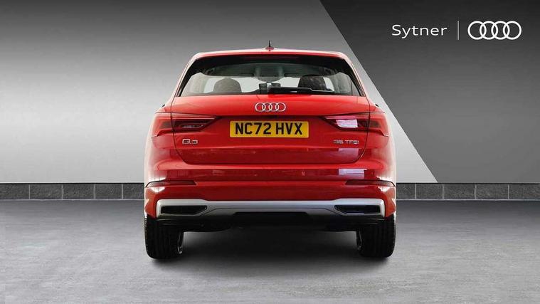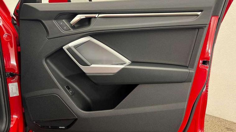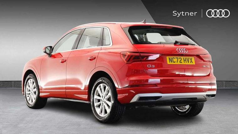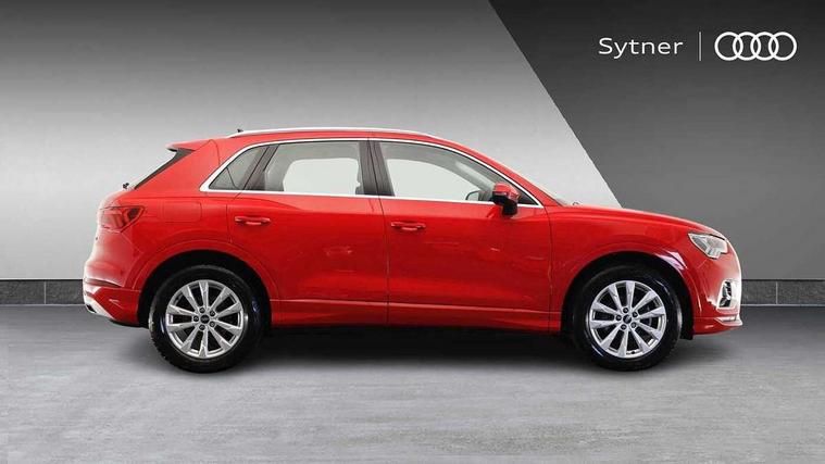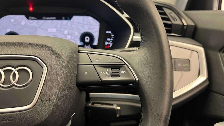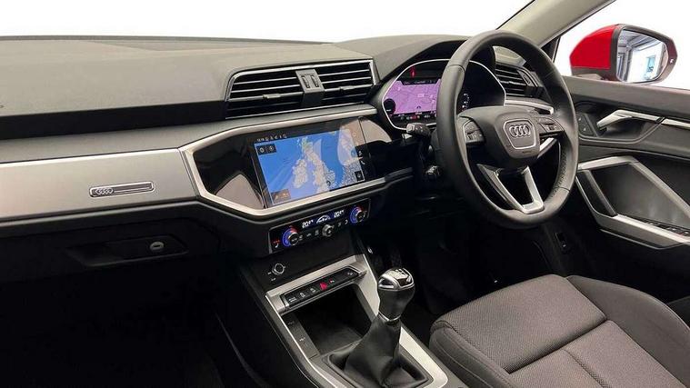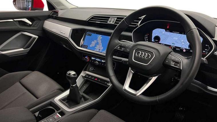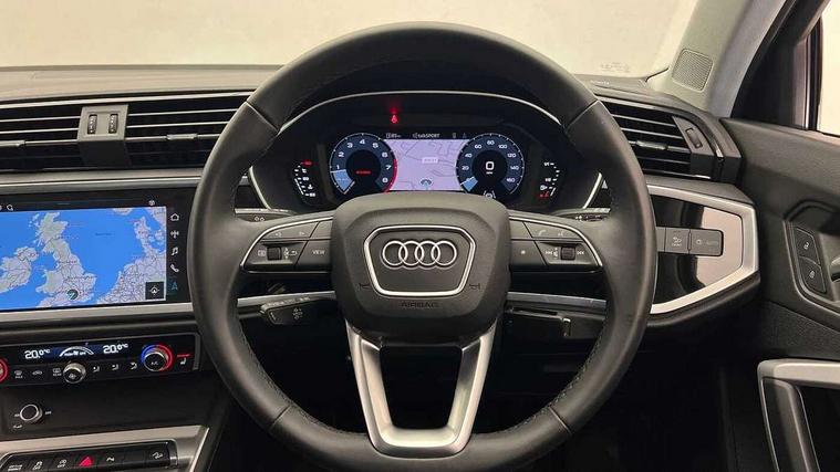 Amazon alexa Integration, Audi drive select, Audi lane departure warning, Audi Virtual Cockpit - 10.25" display, Bluetooth interface, Camera based traffic sign recognition, Cruise control + speed limiter, Legal emergency call, MMI Navigation Plus with high resolution 10.1 inch touchscreen colour display, Power operated tailgate, Progressive steering, Rear parking sensors, Service interval indicator, Smartphone interface includes wireless Apple carplay/Android Auto, Start stop system with recuperation, Voice control system with natural language interaction, Standard suspension, 2 USB-C ports with charge and data functions, 6 passive loudspeakers, DAB digital radio module, Acoustic windscreen, Aluminium roof rails, Aluminium window trim, Auto dimming frameless rear view mirror, Body coloured bumpers, Electrically folding, adjustable and heated door mirrors with integrated LED side indicators and kerb view function for passenger side, Front and rear electric windows, Front fog lights, Front side air inlets in matt selenite silver, Front spoiler in matt selenite silver, Grille vertical bars in aluminium silver/Matt, High gloss black finish B and C pillars, LED headlights with LED daytime running lights, LED rear lights, LED third brake light, Rain and light sensors, Rear diffuser strip in matt selenite silver, Rear side wing doors, Rear wiper, Titanium black radiator grille, Variable front intermittent wipers, 12V socket in rear centre console, 3 seat bench in 2nd row, 3 spoke multi-function leather steering wheel, 40:20:40 folding with manual adjustment for 60:40 forwards/backwards position and backrest angle, Door sill trims with aluminium inlay, Dual zone electronic climate control, Front and rear floor mats, Front and rear headrests, Front and rear roof module including reading lights, Front centre armrest, Glove compartment lighting, Height and reach adjustable steering wheel, ISOFIX child seat mounting for front passenger with airbag deactivation and outer rear seat including top tether attachment point for outer rear seats, Luggage compartment light, Lunar silver cloth headlining, Manual front seats with height adjustment, Single front passenger seat, Stainless steel luggage compartment sill finisher, Non smoking pack - Q3, 3x3 point rear seatbelts, 6 airbags - Driver, front passenger, curtain and side windows, Audi pre-sense front with pedestrain and cyclist recognition, Electromechanical parking brake, Electronic stabilisation control including ABS, ASR and EDL, Front seatbelt reminder, Hill descent control, Hill hold assist, Manual child lock in rear doors, Pre sense basic, Seatbelt monitoring, Tyre pressure warning, Warning triangle and first aid kit, Anti theft alarm, Anti theft wheel bolts, Immobiliser, Remote central locking, Detail dashboard around MMI touch colour display in glass look, black with surround in aluminium look, Micrometallic silver inlay,