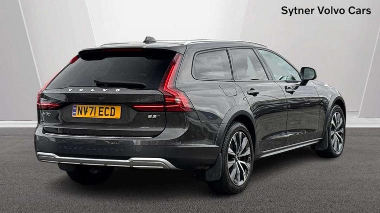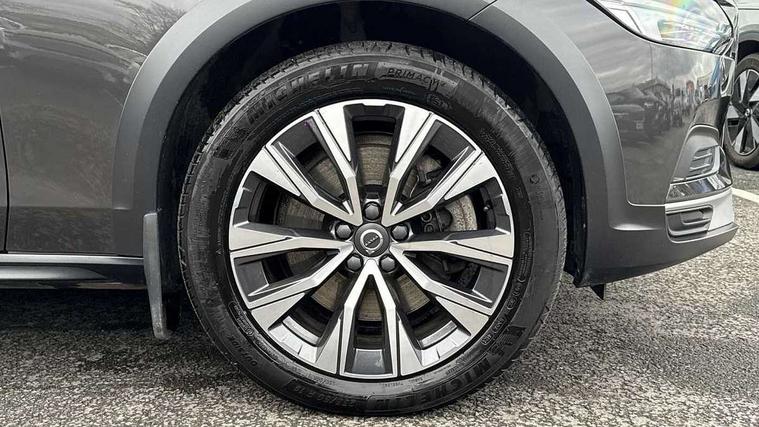 12.3" Progressive Driver Display, 9" centre console touch screen, Adjustable steering wheel force, Bluetooth Handsfree Phone Connection, Drive mode settings, E-call, Google automotive services enabled entertainment apps, navigation with google maps, voice recognition with google assistant, Lane keep assist with driver alert control, Oncoming Lane Mitigation, Power operated tailgate, Speed limiter, Speed sensitive steering, Volvo on call, Wireless/Inductive Mobile Phone Charging, 65mm additional ground clearance, 8 speed automatic transmission with start/stop + manual change functions, DAB Radio (Digital Audio Broadcasting), Steering wheel remote infotainment controls, Adaptive brake lights with high level LED brake lights, Auto dimming interior + exterior mirrors, Automatic headlamp levelling, Automatic LED Headlights + Active high beam incorporating daytime running lights, Charcoal lower grille, Charcoal wheel arch extensions, Colour coordinated auto folding and heated power door mirrors, Cross Country embossed rear bumper, Enlarged door mirrors, Front and rear power windows, High gloss black front grille with chrome details, High gloss black window trim, Home safe and approach lighting, Integrated roof rails in silver, Puddle lights in exterior door handles, Rain sensor with automatic windscreen wiper activation, Rear LED lights with sequential indicators, Rear side wing doors, Rear wiper, Roof antenna, Roof spoiler, Silver front and rear skid plate, Visible VIN plate, 3 seat bench in 2nd row, 3 spoke leather steering wheel with chrome trim, A-pillar parking ticket holder, Ambient door and instrument panel lighting, B Pillar ventilation, Blond headlining, Bright metal luggage threshold, Cargo divider with grocery bag holder, Center Console Cupholders and Storage, Driver's side lower dashboard storage compartment, Extended front seat cushions, Floor mats, Front 12V socket tunnel console and cargo area, Front centre armrest storage illumination, Front footwell and side step illumination, Front head restraints, Front/rear door pockets and front cupholder illumination, Front/rear reading lights, Heated front seats, Height/reach adjustable steering column, Illuminated front and rear tread plates, Illuminated glovebox, Illuminated luggage compartment, Illuminated tailgate, Illuminated vanity mirrors + ticket holder, Integrated sun curtains in rear doors, Isofix system on outer rear seats, Leather upholstery with unique stitching, Load cover, Load protection net, Off-black finish in steering wheel, Power driver seat with memory for seat and exterior mirrors, Power Folding Rear Seat Backrests and Headrests, Rear armrest with storage + cupholders, Rear footwell and side step illumination, Single passenger seat, Ski hatch, Underfloor cargo storage, Versatile split folding rear seat - 60/40, Driver assist pack - V90, 3x3 point rear seatbelts, Active bonnet, City safety with steering support with Pedestrian + cyclist + front collision warning with full auto brake and rear auto brake, Drivers knee airbag, Dual stage driver/passenger airbags, Front seats SIPS airbags, Hill descent control, Hill start assist, IC (Inflatable Curtains) - Full Length, Passenger airbag cut-off device, Power parking brake with auto hold function, Road sign information display, Run off Road Mitigation, Run off Road Protection, Seatbelt reminder and pretensioners for all seats, SIPS (Side Impact Protection System), Slippery road and hazard light alert, Stability and Traction Control with Spin control, Engine Drag Control and Corner Traction Control, Tyre pressure monitoring system, Vehicle deceleration control with Anti-lock Brake System, Electronic Brake Distribution and Emergency Brake Assist, Warning triangle and first aid kit, WHIPS whiplash protection system - front, Anti-theft alarm including immobiliser/volume sensor + level sensor, Care key with user defined top speed, Key integrated remote control central locking + fuel flap with deadlocking system and auto open/close power windows, Keyless drive with Keyless entry and start, Locking wheel nuts, Private locking for tailgate, Tailored Instrument Panel and Door Tops with Contrast Stitching,