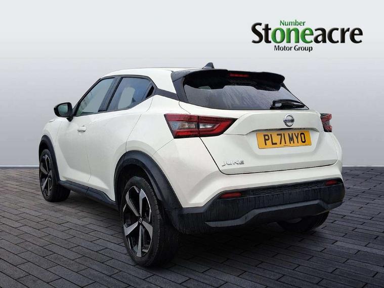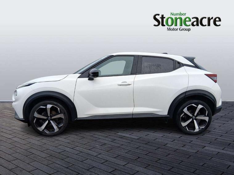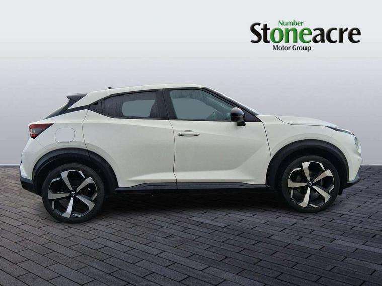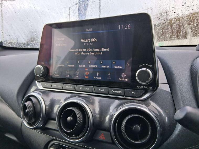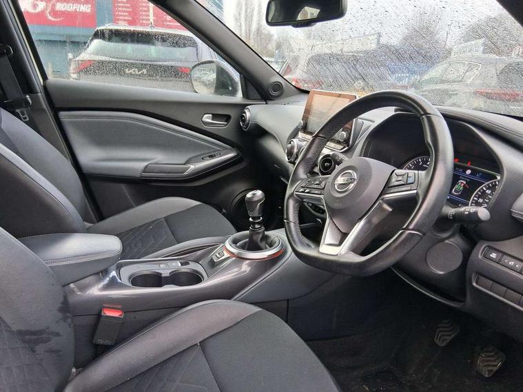 7" full colour TFT screen combimeter, Apple CarPlay and Google Android auto, Drive modes select (Eco, normal and sport), eCall emergency call system, Emergency and breakdown call, Front parking sensor, Idle start/stop system, Intelligent lane intervention, Lane departure warning system, Nissan connect 8" touch screen entertainment system, Nissan connect nav with TomTom traffic, Nissan connect services and Wifi connection, Outside temperature sensor, Power Steering, Rear parking sensor, Traffic sign recognition, Trip computer, Voice recognition, Gasoline particulate filter, Bluetooth system, USB, Aux-in and 12V socket, Bose personal plus audio system with 8 speakers(4 speakers and 2 headrest speaker for driver and passenger seats), Bose personal sound stage control, DAB Digital radio, Rear console USB port, Auto dimming interior rear view mirror, Auto headlights, Automatic hazard signal with emergency stop signal, Body colour bumpers, Body colour door handles, Electrically adjustable door mirrors with integrated indicators, Follow me home headlights, Front and rear electric window with one touch driver window, Heated and auto folding door mirrors, High beam assist, LED daytime running lights, LED front fog lights, LED headlamps, LED rear fog lamp, LED rear lamps, Rain sensor windscreen wipers, Rear privacy glass, Rear side wing doors, Rear wiper, Thermaclear heated windscreen, Three blink turn signal, 3 height adjustable rear headrests, 3 seat bench in 2nd row, 60/40 split folding rear seat, Automatic climate control, Card holder on driver sunvisor, Cloth/Synthetic leather upholstery, Door ambient lighting, Driver and passenger sliding and reclining seats, Driver seat back pocket, Driver side rear coat hanger, Driver/passenger sunvisors and vanity mirrors, Front and rear cabin lights, Front armrest, Front door pockets with bottle holders, Front head restraints, Front passenger isofix child seat anchorage point, Front/rear passenger grab handles, Gear console ambient circle lighting, Grey synthetic leather kneepad, Heated front seats, Height adjustable driver's seat, Height adjustable passenger seat, Internal chrome door handles, Leather gearshift knob, Leather steering wheel, Luggage board, Luggage space lighting, Monoform sporty seats, Multifunction steering wheel, Passenger seat back pocket, Rear door bottle holders, Single front passenger seat, Telescopic steering wheel adjustment, Two cupholders in front centre console, Two rear isofix child seat anchorage points with top tether, Welcome light and console tray ambient lighting, Advanced safety shield pack - Juke, ABS with EBD and brake assist, Active ride control, Active Trace Control, Driver and passenger airbags, Driver and passenger side airbags, Electric handbrake with auto hold function, Electronic Stability Programme (ESP), Front and rear curtain airbags, Height adjustable seatbelts, Hill start assist, Intelligent emergency braking with pedestrian and cyclist recognition, Rear door child safety locks, Seatbelt reminder for driver/front passenger and rear seats, Single tone horn, Three 3 point rear seatbelts, Traction control, Tyre pressure monitoring system, VDC Dynamic Vehicle Control, Ventilated rear brake discs, Alarm, Immobiliser, Intelligent Key with push button starter, Remote central locking,