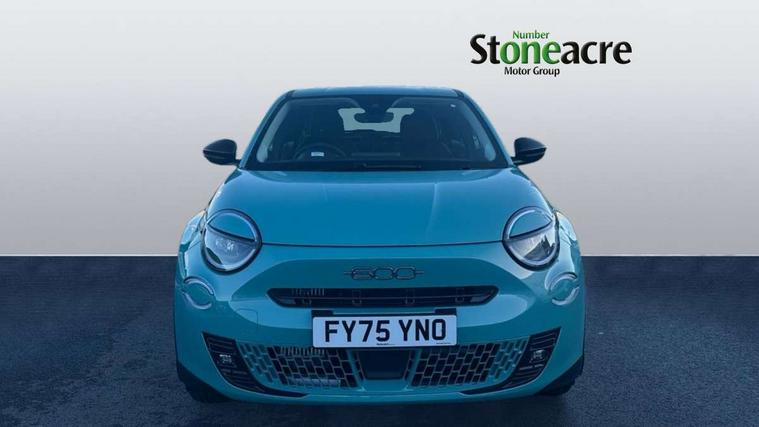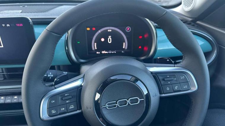 7" TFT digital cluster, Bluetooth connectivity, BSRF connectivity box, Connected services, Cruise control, Drowsy driver detection, Emergency E-call assist, Engine emission level default, GSR II step 1, Intelligent speed assist, Lane keeping assistant (LKA), Odometer, Power assist steering, Rain and dusk sensors, Rear parking sensors, Traffic sign recognition, Wireless apple car play/android Auto, Without drive mode selector, L2-AGM 12V battery, 1st Row USB type-A and USB type-C, 4 speaker audio system, Radio, Uconnect infotainment 10.25" touchscreen with DAB, All power windows express Up/Down, Auto dimming frameless rear view mirror, Automatic headlights, Body coloured door handles, Chrome day light openings, Electric adjustable door mirrors, Exterior chrome accents, Front and rear Chromed 600 logo, Gloss black finish B pillar, Gloss black shark fin antenna, Glossy black door mirrors, Heated windscreen wiper blade area, LED 3rd brake light, LED daytime running lights, LED Fog lamps with cornering function, LED front signature lighting, LED front turn indicators and position lights, LED rear lights, LED rear signature lighting, LED reflector headlamps, Matt black side skirts with 600 chromed logo, Rear bumper embossed 600 logo, Rear roof spoiler, Rear side wing doors, Rear wiper, 2 Spoke synthetic leather steering wheel with audio control, 3 rear headrests, 3 seat bench in 2nd row, 4 way manually adjustable passenger seat, 6 way manually adjustable drivers seat, Auxilliary 12V power socket, Body colour dashboard fascia, Chrome interior door handles, Dark metachrome dashboard ring, English handbook, Front centre armrest, Front headrests, Front passenger grab handle, Front seatback pockets, ISOFIX attachment on front passenger and rear passenger seats, Manual climate control, Metachrome central compartment bezel, Monogram fabric upholstery, Paddle shifts, Partial body cover for shipment, Predisposal for accessory upgrade to default tunnel pad cover (dedicated prnd bezel), Rear seat 40/60 split, Single front passenger seat, Smart 15L storage central tunnel with tunnel pad cover, Sunvisor label ciao Fiat, Sunvisors with vanity mirrors, 3x3 point rear seatbelts, 6 airbags, ABS, Autonomous Emergency Brake (AEB) & Vulnerable Road User (VRU) Protection, Child locks on rear doors, Electronic parking brake with auto hold, ESC (Electronic Stability Control), Front passenger airbag deactivation, Seatbelt reminder and pretensioners for all seats, Anti-theft volumetric alarm, Anti-theft wheel bolts, Keyless Go, 17" Diamond cut alloy wheels, Fix and go puncture repair kit,