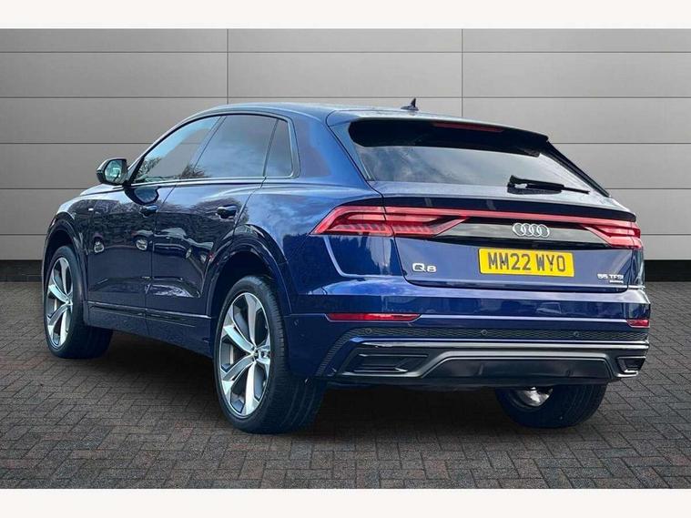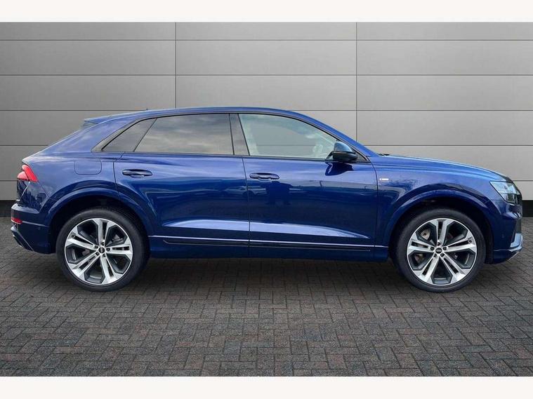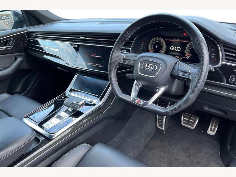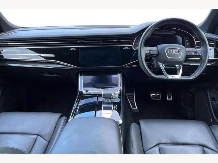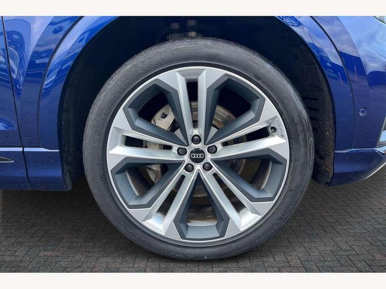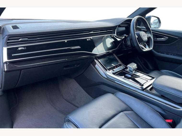 10.1" and 8.6" Dual colour touchscreens, Audi connect safety and service (e-call), Audi connect with Amazon Alexa Integration, Audi drive select, Audi parking system plus includes 360 degree display with front and rear sensors, Audi smartphone interface includes wireless Apple carplay/Android Auto, Audi virtual cockpit - 12.3" high resolution LCD display with fully customisable instrument cluster, Automatic start/stop system, Electro-mechanical PAS, Low washer fluid indicator, MMI - Multi Media Interface control system, MMI navigation plus with MMI touch, Natural voice recognition, On board computer, Operating buttons in black, glass look with haptic feedback, Power operated tailgate, Rear view camera, Service interval indicator, 48V Mild hybrid technology, 85 litre fuel tank, Adaptive sport air suspension, Quattro all wheel drive with self locking centre differential, Audi music interface with 2 USB ports with charge and data functions, Audi sound system with 6 channel amplifier, 180 watt amplifying capacity and 10 loudspeakers including subwoofer, Aux-in socket, DAB Digital radio, 3rd brake light, Acoustic windscreen, Audi HD Matrix LED headlights with dynamic front and rear indicators, Auto dimming frameless rear view mirror, Coming/leaving home lighting function, Electric front+rear windows, Electrically folding auto dimming/adjustable/heated door mirrors with memory function, LED side indicators and kerb view function for passenger side, Headlight washers, Heat insulating glass in windshield, LED signature daytime running lights, Platinum grey front spoiler lip and diffuser insert, Privacy glass - dark tinted rear and rear side windows from B-pillar backwards, Rain and light sensors, Rear side wing doors, Rear wiper, 3 bench rear seats in 2nd row, 4 zone deluxe automatic climate control, 4-way lumbar support for front seats, 40:20:40 split folding rear bench seat, Black cloth headlining, Comfort front centre armrest, Driver seat memory function, Electrically adjustable front seats, Front head restraints, Front/rear floor mats, Heated front seats, ISOFIX child seat mounting for front passenger seat and 2 outer rear seats with top tether child seat mounting for all 3 rear seats, LED interior ambient lighting, Luggage compartment sill protection in stainless steel, Rear centre armrest with 2 cupholders, Rear headrests, Single front passenger seat, Stainless steel pedals, Sunvisors with illuminated vanity mirrors, Tool kit, Titanium Black Styling Pack - Q8, 3 point seatbelts on all seats, Audi pre sense front, Child locks on rear doors, Driver and front passenger, front side and curtain airbags, Electromechanical parking brake, Electronic Stability Control (ESC) including ABS, ASR and EDL, Front passenger airbag deactivation, Hill descent control, Hill hold assist, Predictive pedestrian protection, Seatbelt monitoring, Traction control, Tyre pressure loss indicator, Warning triangle and first aid kit, Anti theft alarm with tow away protection, Anti-theft wheel bolts and wheel loosening detection, Immobiliser, Keyless go with remote central locking, Polished oak trim with grey finished, Tyre repair kit,