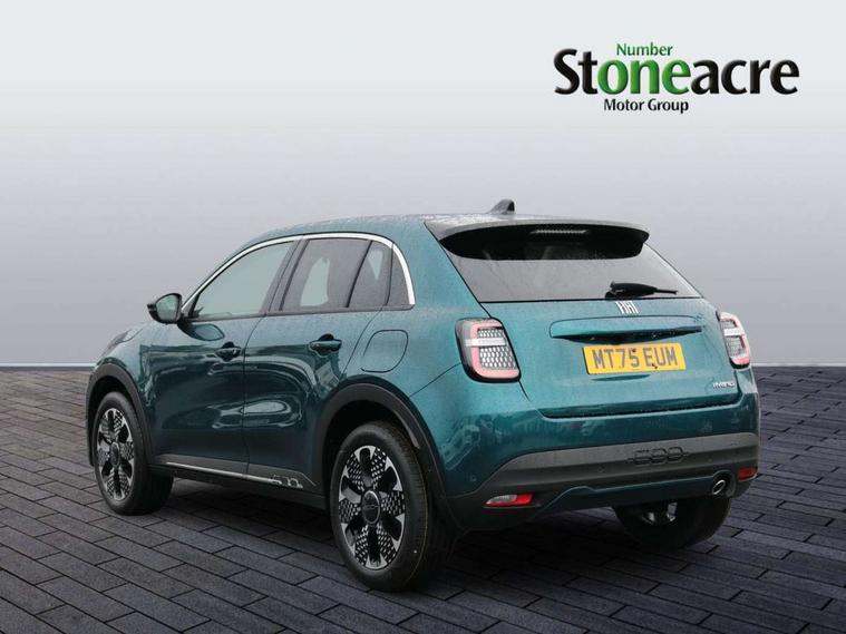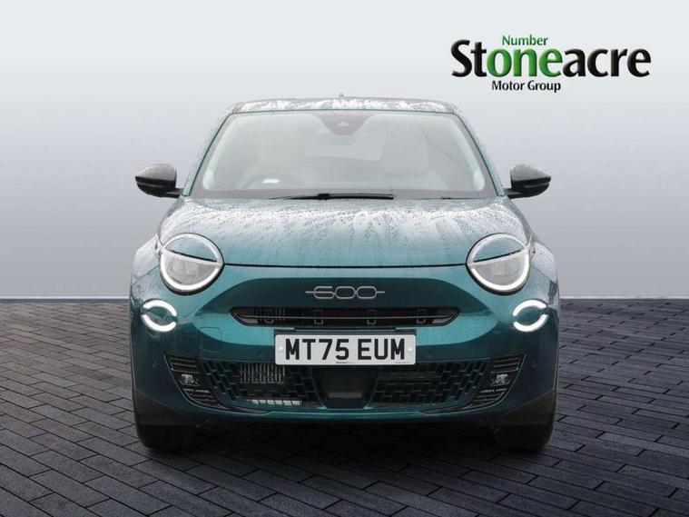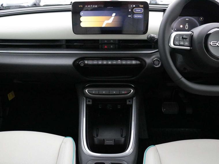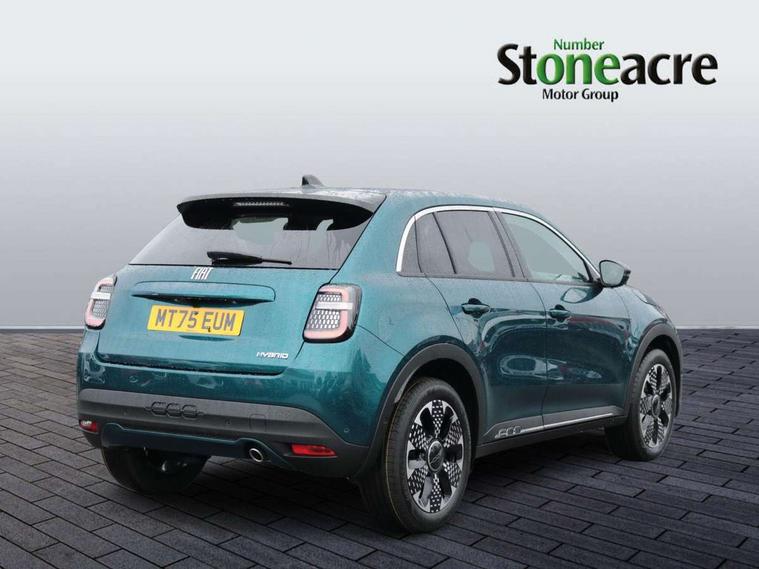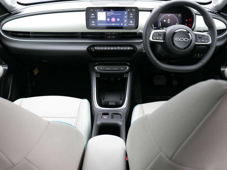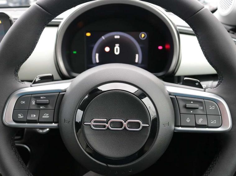 360 degree parking sensors with 180 degree rear view camera, 7" TFT digital cluster, Autonomous driving level 2: Adaptive cruise control with stop & go and lane centering, Blind spot detection, Bluetooth connectivity, BSRF connectivity box, Connected services, Drowsy driver detection, Emergency E-call assist, Engine emission level default, GSR II step 1, Hands free power liftgate, Intelligent speed assist, Lane keeping assistant (LKA), Odometer, Power assist steering, Rain and dusk sensors, Semi-automatic parking with Visiopark 1 system, Traffic sign recognition, Wireless apple car play/android Auto, Wireless charging pad for smartphones, Without drive mode selector, L2-AGM 12V battery, 1st Row USB type-A and USB type-C, 2nd Row USB type-C, 6 speaker audio system, Radio, Uconnect infotainment 10.25" touchscreen with integrated navigation system and DAB, All power windows express Up/Down, Auto dimming frameless rear view mirror, Automatic headlights, Automatic high/low beam, Body coloured door handles, Chrome day light openings, Chromed exhaust tip, Electric adjustable/heated/folding door mirrors, Exterior chrome accents, Front and rear Chromed 600 logo, Gloss black finish B pillar, Gloss black shark fin antenna, Glossy black door mirrors, Heated windscreen wiper blade area, LED 3rd brake light, LED daytime running lights, LED Fog lamps with cornering function, LED front signature lighting, LED front turn indicators and position lights, LED rear lights, LED rear signature lighting, LED reflector headlamps, Matt black side skirts with 600 chromed logo, Privacy glass, Puddle lights, Rear bumper embossed 600 logo, Rear roof spoiler, Rear side wing doors, Rear wiper, 2 Spoke synthetic leather steering wheel with audio control, 3 rear headrests, 3 seat bench in 2nd row, 6 way manually adjustable front passenger seat, 6 way power adjustable driver seat with lumbar support and massage function, Adjustable trunk floor, Automatic climate control, Auxilliary 12V power socket, Cargo flex fit, Chrome interior door handles, Dark metachrome dashboard ring, English handbook, Front centre armrest, Front headrests, Front passenger grab handle, Front seatback pockets, Heated front seats, ISOFIX attachment on front passenger and rear passenger seats, Matt Ivory painted dashboard fascia, Metachrome central compartment bezel, Monogram Synthetic leather upholstery, Paddle shifts, Partial body cover for shipment, Predisposal for accessory upgrade to default tunnel pad cover (dedicated prnd bezel), Rear seat 40/60 split, Single front passenger seat, Smart 15L storage central tunnel with La prima tunnel pad cover, Sunvisor label ciao Fiat, Sunvisors with vanity mirrors, Velour floor mats, 3x3 point rear seatbelts, 6 airbags, ABS, Autonomous Emergency Brake (AEB) & Vulnerable Road User (VRU) Protection, Child locks on rear doors, Electronic parking brake with auto hold, ESC (Electronic Stability Control), Front passenger airbag deactivation, Seatbelt reminder and pretensioners for all seats, Anti-theft volumetric alarm, Anti-theft wheel bolts, Passive entry and keyless go, 18" Diamond cut alloy wheels, Fix and go puncture repair kit,