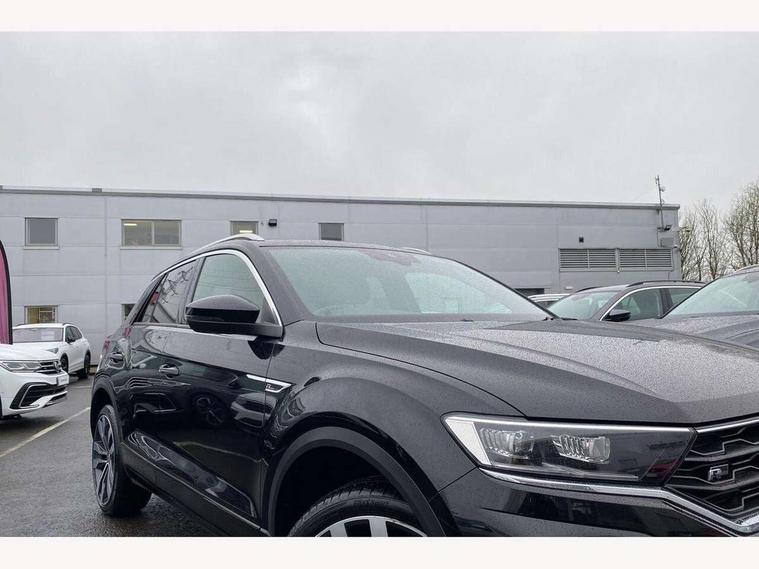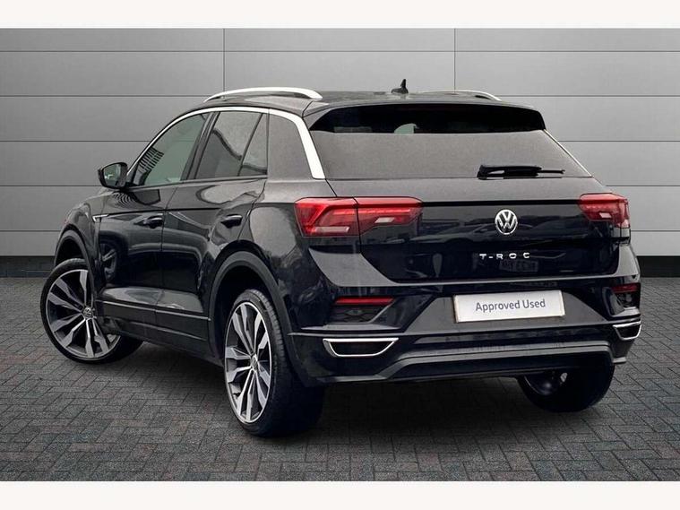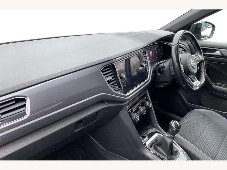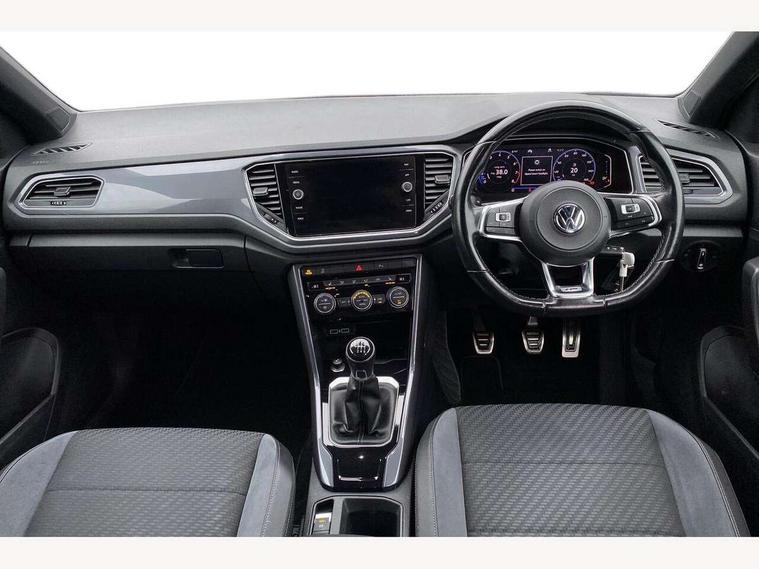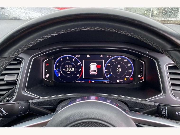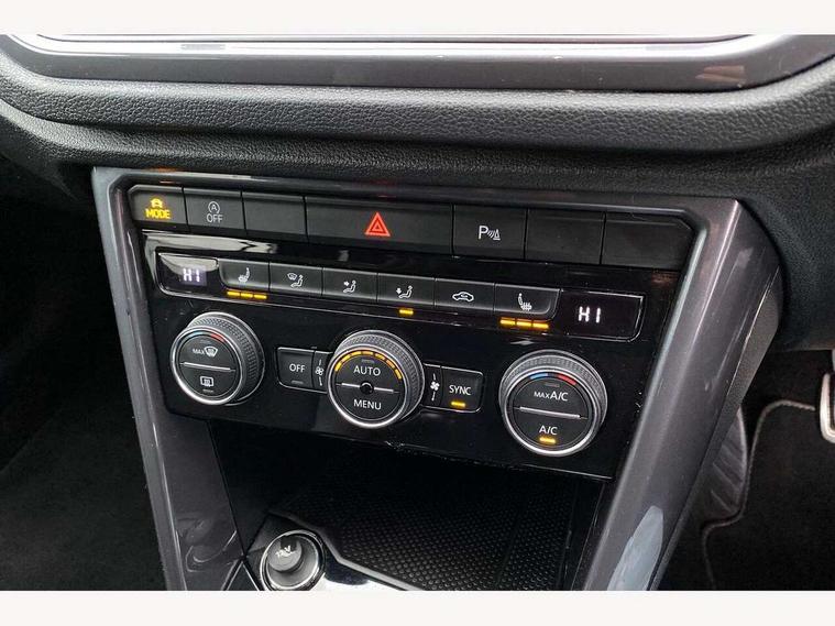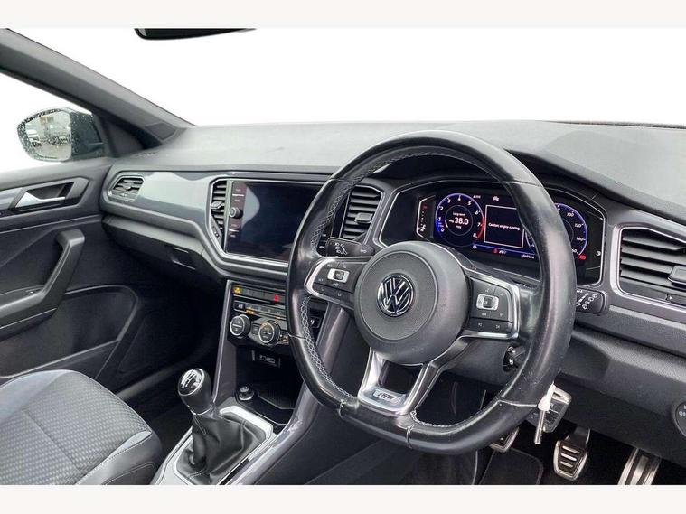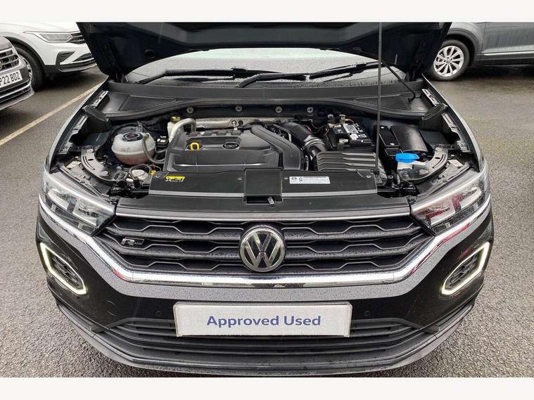 App-Connect, 'Lights On' Reminder warning buzzer, 2 USB connection charging sockets, Active Info Display, 10.3" high resolution TFT dash display screen with customised information, Adaptive cruise control with front assist, radar sensor controlled distance monitoring, city emergency braking, Automatic start/stop system, Bluetooth telephone and audio connection for compatible devices, Car information display, Car-Net Security and Service, Discover navigation, 8" touch screen navigation/infotainment system with Car-Net, European map, CD/radio, 2D/3D map and speed limiter, Driver alert system with audible and visual fatigue detection system, Driver tips and journey analysis, Driving profile selection - Eco, normal, sport or individual modes with Individual mode allows for steering, drive and air conditioning settings, Dusk sensor, Lane assist, Multifunction computer with visual gear change recommendation for fuel consumption, Service interval indicator, Think blue trainer driver tips and journey analysis, Voice activation, Warning sound and light for doors and tailgate open, Warning sound and light for front seatbelts unfastened, Battery regeneration during braking, DAB Digital radio, Dynamic navigation based on TMC+, Multi device interface (MDI) with USB connection, Music playback - MP3, WMA and AAC files, Premium USB cable in choice of either Apple or Android smartphone compatibility, SD card slot, Simultaneous pairing of 2 compatible mobile devices, SMS functionality - read, compose and send SMS messages using touch-screen display, Three route options - Fast, Short, Eco, Title and cover art display, Auto dimming interior rear view mirror, Automatic hazard lights activation under emergency braking, Black grained lower door protectors, Body colour door handles, Body colour rear roof spoiler, Chrome effect left and right trapezoid exhaust tailpipe fascia surround, Chrome trim on upper and lower radiator grille, Electrically foldable, adjustable and heated door mirrors with puddle lights and reverse activated kerb-view adjustment on passenger's door mirror, Front and rear electric windows, Front fog lights with static cornering function, Front windscreen wiper with intermittent wipe and 4 position delay, Fully galvanised body, Heated rear window, High level 3rd brake light, LED darkened rear light clusters, LED dipped and main beam headlights with automatic range adjustment including signature LED daytime running lights, LED rear number plate lights, Manual coming/automatic leaving home lighting function, Rain sensor, Rear tinted glass from B-pillar backwards approx 65% tinted, Rear wash/wipe with intermittent wipe setting, 12V socket in centre console storage area, 2 Front and rear reading lights incorporating LED technology, 3 rear head restraints, 4 load lashing points in luggage compartment, Aluminium pedals, Ambient lighting in front footwell and light strips below trim in front doors, Black roof lining and sun visors, Branded points of interest, Carbon flag cloth upholstery, Climate control - 2 zone electronic air conditioning with automatic air recirculation and allergy filter, Drawer under drivers seat, Front and rear carpet mats with contrast stitching, Front centre armrest with storage compartment, longitudinal and height adjustable and two rear air vents, Front cupholders x 2, Front footwell illumination, Front seat back storage pockets, Front sports seats with R-Line logo on seat backrest, Glovebox, Height adjustable front seats, Height/reach adjust steering wheel, Illuminated vanity mirrors, Instrument lighting, white adjustable panel illumination, Interior light delay, Isofix easy fit child seat preparation for 2 outer rear seats, Load through provision with single cup holder when folded down, Luggage compartment cover, removable, Luggage compartment lighting, R Line badge, Split folding rear seat backrests with centre armrest, Storage compartment in left and right luggage area, Storage compartment in rear doors, Storage compartments in driver and front passenger doors, Three spoke multi function leather trimmed steering wheel including gear knob with contrast stitching and aluminium inserts and R Line logo, Unique R Line door sill protectors, R line styling pack - T-Roc, Winter pack - T-Roc, 3 rear three point seatbelts, ABS, Curtain airbags, Driver and front passenger safety-optimised head restraints, Drivers and front passengers airbags with passengers deactivation switch, Electronic parking brake with auto hold, Electronic stability control (ESC) includes ASR, EDL, EDTC and trailer stabilisation function, Front seat side impact airbags, Predictive pedestrian protection, Rigid safety cell with front and rear crumple zones, Three point height adjust front seatbelts + pretensioners, Tyre pressure loss indicator, Ventilated front and rear disc brakes, Volkswagen roadside assistance, Alarm with interior protection and deactivation via infotainment system, Electronic engine immobiliser, Remote central locking with 2 remote folding keys, Shadow steel decorative inserts in dash and door panel, 19" Suzuka alloy wheels with low rolling resistance tyres and anti wheel bolts, Space and weight saver spare wheel,
