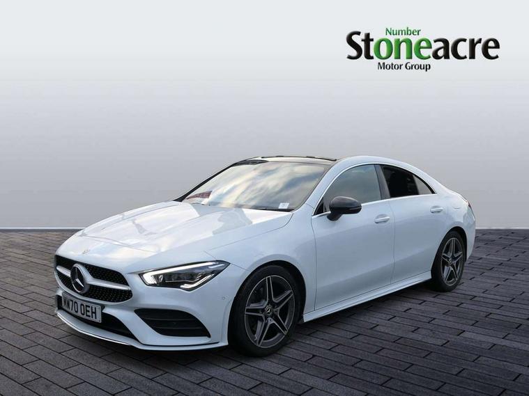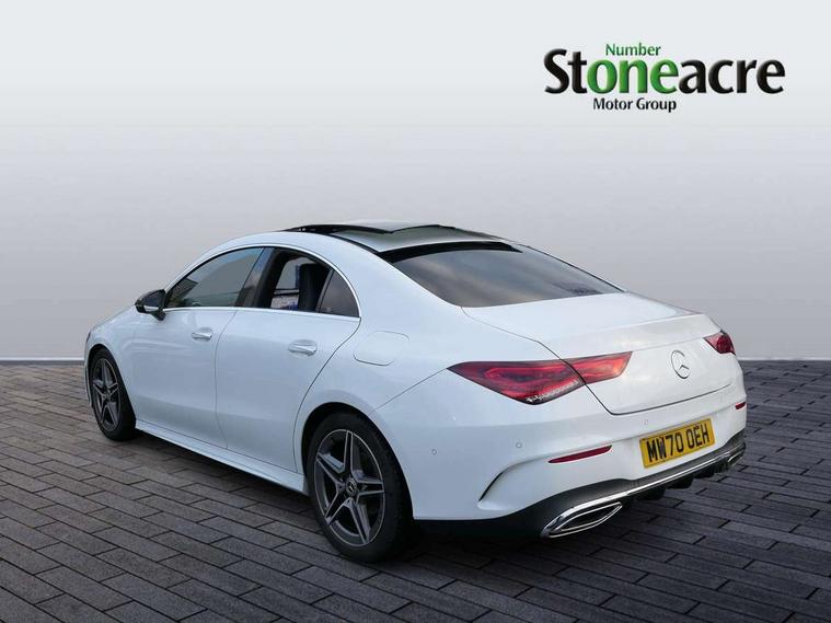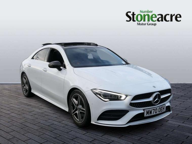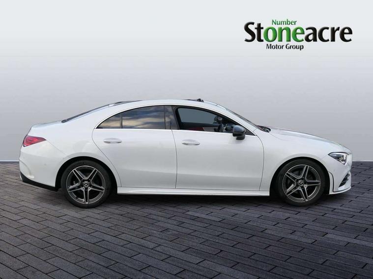 10.25 inch Instrument display with digital cockpit, 10.25 inch touchscreen central media display, Attention assist - Monitors steering behaviour and long journey fatigue, Bluetooth connection, Car wash mode, DYNAMIC SELECT with a choice of driving modes (ECO, Comfort, Sport and Individual), ECO start/stop function, Fluid level warning indicator for fuel, oil, coolant and washer fluid, Hard-disk navigation, Hey Mercedes Voice activation, Lamp failure indicator, MBUX augmented reality for navigation, Mercedes me connect including emergency call system, accident recovery, breakdown and maintenance management, Outside temperature gauge, Owners manual and service booklet in English, Pre-installation for Vehicle Monitoring, Pre-installation for Vehicle Setup, Pre-installation of private car share, Preinstallation for Mercedes Benz link, Radio aerial integrated into front and rear windshields, Service indicator (ASSYST), Smartphone integration with Apple CarPlay and Android auto, Traffic sign assist, Trip computer in multifunction display with current consumption indicator, Wireless charging, 7G-DCT 7 speed automatic transmission, Lowered comfort suspension, Rear axle multi-link, DAB digital radio tuner, MBUX multimedia system with DAB digital radio and touchpad including satellite navigation, Mercedes Benz advanced sound system (225 W) with 10 speakers, 1 central speaker, speakers on doors, a tweeter on door, one sub woofer + boost amplifier, USB (type C) ports (2) in stowage compartment and 1 in front of centre console, Adaptive brake lights, AMG body styling with AMG front apron and rear apron and visible exhaust tailpipe in chrome trim elements, AMG bodystyling side skirts, Body colour bumpers, Body colour door handles, Chrome beltline strips, Chrome weather strip, Diamond radiator grille pins in chrome with silver painted louvres and chrome insert, Electric panoramic sliding sunroof, Electric windows, Electrically adjustable and heated door mirrors with integrated LED indicators, Exhaust system with 2 Visible tailpipe trim elements and rear apron with trim in chrome, Headlamp assist automatic headlamp activation, Heated glass rear windscreen + timer control, High level LED third brake light, Integrated LED daytime running lights, Interior mirror with black reading lamps and frameless, LED tail lamp, Multibeam LED headlamps with adaptive highbeam assist plus, Privacy glass with dark tinting on rear side windows and rear window, Rain sensing windscreen wipers with two sensitivity settings, Rear fog lamp, Window line trim strip in chrome, 3 spoke flattened bottom nappa leather multifunction steering wheel with perforated leather in grip area, 40:20:40 split folding rear seat backrests, Air conditioning - Two zone thermotronic luxury automatic climate control with display, Air vents with surround in silver chrome, Automatic child seat recognition sensor, Black roof lining, Brushed stainless steel sports pedals with rubber studs, Electrically adjustable front memory seats including lumbar support, Floor mats with stitched AMG lettering, Front centre armrest with stowage, Galvanished gear shift paddles on steering wheel, Heated front seats, Illuminated glove compartment stowage, Illuminated Mercedes benz door sills with Mercedes Benz lettering, Interior lighting - 64 colour Ambient lighting, Luggage net on driver/front passenger seat backrest, Manually height and reach adjustable steering column, Rear armrest with two integral cup holders for drinks, Rear head restraints, Sport seats with fixed head restraints, Stowage compartment in centre console with retractable cover, Sunvisors with illuminated vanity mirrors, Touchpad on center console, Twin front cupholders, Two outer rear seat isofix and top tether child seat fixing points, Keyless go pack - CLA, Light and sight pack - CLA, Mirror pack - CLA, Parking package - CLA, Seat comfort pack - CLA, Active bonnet pedestrain safety measure which detects an impact and raises bonnet by 65mm, Adaptive brake assist with hold function and hill start assist, Anti-lock braking system (ABS), Black seat belts, Bonnet with power domes, Brake pad wear warning indicator, Childproof locks manually operated for rear doors and electrically operated for rear power windows, Crash responsive emergency lighting, Driver and front passenger head and sidebags, Driver and front passenger windowbags, Drivers knee airbag, Dual stage driver and front passenger airbags, Electric parking brake, Electronic stability programme with acceleration skid control, ESP curve dynamic assist, Front and rear seatbelt reminder, Front passenger seat occupancy sensor, Three point rear seat belts, Tyre pressure monitoring system, Warning triangle and first aid kit, Remote central locking and crash sensor with emergency opening function, Urban guard vehicle protection system with immobiliser and interior protection, Light aluminium with longitudinal grain interior trim, 18" 5 twin spoke design alloy wheels painted in titanium grey with high sheen finish, Summer tyres, Tirefit tyre sealant kit,