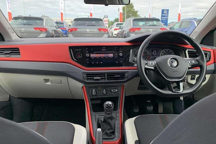 Air vents in High gloss black, Limestone grey decorative inserts, Velvet red trim in dash and centre console, Tyre mobility kit and compressor, Alarm with interior protection and deactivation via infotainment system, Electronic engine immobiliser, Remote central locking with 2 remote folding keys, Beats audio system, 3 point height adj front seatbelts + pretensioners, 3x3 point rear seatbelts, ABS, Automatic post collision braking, Driver/front passenger airbag, Drivers and front passengers safety optimised head restraints, ESP with EDL + ASR, Front and rear passenger curtain airbags, Front disc brakes and rear drum brakes, Front passenger airbag deactivation, Front seat side impact airbags, HBA (Hydraulic Brake Assist), Hill hold control, Single tone horn, Tyre pressure monitoring system, Black door mirrors with integrated indicators, Black grille with chrome surround, Black radiator grille with chrome louvres, Body colour bumpers, Body colour door handles, Body coloured side sills, Electric front windows, Front fog lights including static cornering, Front windscreen washers and wipers with 4 speed intermittent delay, Heated rear window with auto timer, High level 3rd brake light, LED daytime running lights, LED rear number plate lights, Rear electric windows, Rear tinted glass from B-pillar backwards approx 65% tinted, Rear windscreen washer and wiper with interval delay, reverse activated, Unique beats door sill protectors, Unique beats logo on B pillar, 2 bag hooks in luggage compartment, 2 front and 2 rear reading lights, 2 front cupholders and 12 V socket with cover, 3 rear head restraints, 60/40 split folding rear seat, Centre console storage with open storage compartment, Driver and front passenger sunvisors with illuminated vanity mirrors, Dust/pollen filter, Folding rear seat backrest, Front + rear carpet mats, Front head restraints, Front seat backrest storage pockets, Front sport seats with height adjustment and beats logo on rear backrest, Gear lever gaiter in black trim surround, Glovebox, Handbrake grip button in chrome effect, Height/reach adjustable steering column, Instrument lighting, adjustable panel illumination, Interior light with delay, Isofix Preparation 2 Rear child seats, Jack and tool kit, Leather gear knob and handbrake grip, Leather multifunction steering wheel, Leatherette door panels, Luggage compartment cover, removable, Luggage compartment lighting, Storage compartment in front doors, Storage compartment in rear doors, Storage compartment under front seats, Tracks 2 cloth seat centre section leatherette with side bolsters, App-Connect, Digital clock, Driver alert system, Lights on warning, Multifunction computer plus, Power assisted speed sensitive steering, Speedo and rev counter, electronic odometer, trip, service interval display and fuel gauge, Start/stop system, Volkswagen connect, Warning buzzer and light for front seatbelts unfastened, Battery regeneration during braking, Galvanished body,