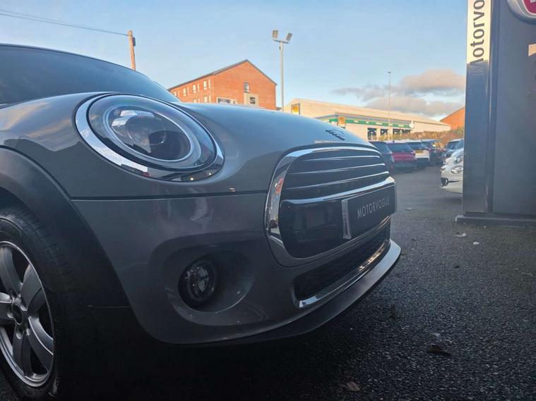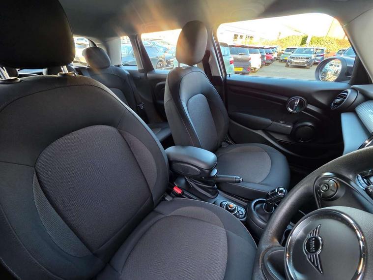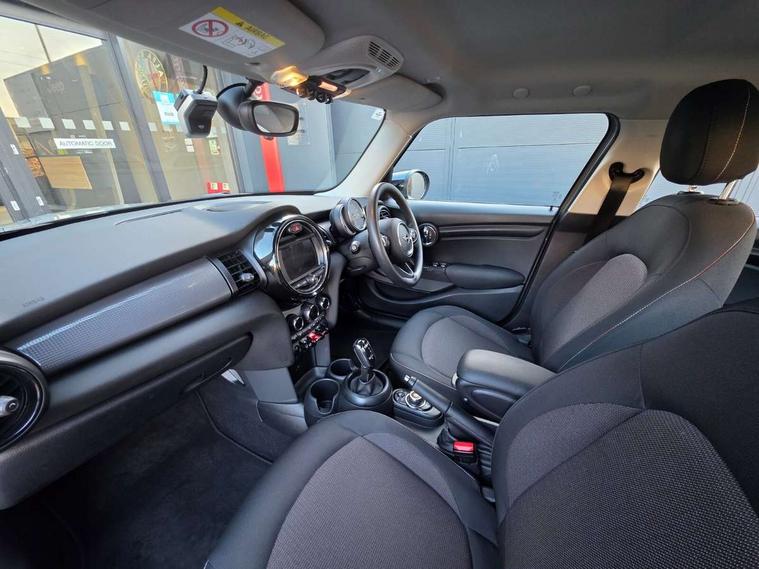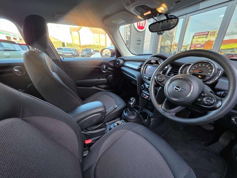 Automatic start/stop function with brake energy recuperation, Compatible mobile phone bluetooth with audio streaming, Electro-mechanical speed dependant steering assistance, Instrument cluster, Mini E-call, MINI TeleServices, On board computer, Service interval indicator, Double Vanos system, Fully variable valve control, Gear change indicator display, High precision injection, Steptronic transmission with double clutch, 6.5" touchscreen with LED ring, FM tuner and DAB digital radio, Automatic headlight activation switch, Body colour fuel filler cap, Chrome border high gloss black slats radiator grille, Dynamic brake lights, Electric front+rear windows, Heated rear window, Heated windscreen washer jets, LED headlight with closed ring and daytime driving lights, Left exhaust tailpipe with chrome finisher, Metal door sill strips with MINI imprint, Model logo Cooper on right of tailgate, Rain sensor window wipers, Rear fog lights, Rear LED lights with union jack design, Rear window wiper, Side scuttle panel with integrated indicator, Sun/heat protection glass, White indicator lenses, 12V Accessory socket in centre console, 4 lashing eyes in luggage compartment, 60/40 split folding rear seat, Chrome interior highlights, Colour line - Carbon black, Cupholders, Front and rear head restraints, Front and rear isofix with front passenger airbag deactivation, Glove compartment, Height and length steering column adjustment, Interior lighting with 12 basic colours selectable via toggle switch in roof, Knee roll and door armrests, Leather gearshift lever and handbrake gaiters, LED reading lights, vanity mirror lights, front foot well light and spotlight on front seats, Manual air conditioning, Mechanical seat adjustment, driver seat height adjust, forward/back and front seats backrest, Mini logo projection on floor from drivers exterior mirror, Multifunction steering wheel, Satellite grey headlining, Satellite grey headlining including grab handles and clothes hooks, Storage compartments in doors, Sunvisors with vanity mirrors, 3 point seatbelts on all five seats, 6 Airbags - front, side, head and seat belt tensioners, Anti-lock braking system (ABS), DSC - Dynamic Stability Control, Front and rear disc brakes, Hill start assist, Single tone fanfare horn, Tyre pressure monitoring system, Alarm system with tilt sensor, monitoring doors, bonnet interior and tailgate, Electronic vehicle immobiliser, Start/stop toggle with keyless go, Tool kit, Tyre repair kit,