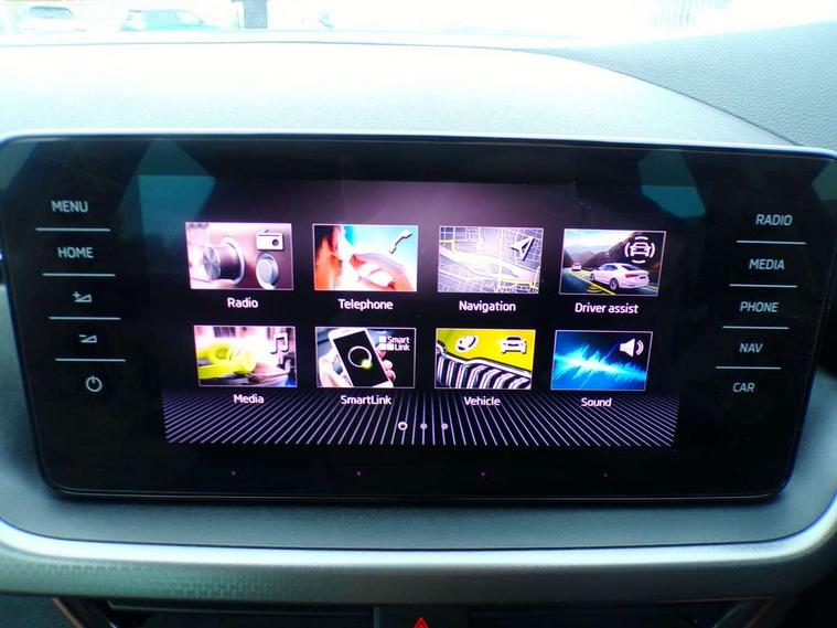 Amundsen satellite navigation with 9.2" glass colour touchscreen with virtual cockpit, web radio, Android Auto, Bluetooth system, Colour multifunction trip computer, eCall emergency system, PAS, Rain and light assist with auto dimming rear view mirror, Rear view camera, Speed limiter, Tailgate, Traffic sign recognition, Virtual cockpit, Voice control system, Wireless SmartLink for Apple Car Play, 2 USB - C ports, 8 loudspeakers, DAB Digital radio, 3rd brake light, Automatic headlamp activation with Coming home and Leaving home feature, Body colour door mirrors and handles, Chrome grille surround, Dimming rear view mirror with black frame, Electric folding door mirrors, Electrically adjustable and heated door mirrors, Front and rear electric windows, Front fog lights with cornering function, LED rear tail lights with dynamic indicators, Privacy glass, Rear side wing doors, Rear wiper, Tinted windows, 12V Accessory socket in centre console, 3 seat bench in 2nd row, Chrome inner door handles, Chrome on gear and handbrake lever, Chrome strip on the dash and door panel, Dual zone climate control, Front head restraints, Glasses storage in roof liner, Instrument cluster with chrome painted decor ring, ISOFIX for rear passenger seat, Leather gearknob and handbrake lever, Manual lumbar support for front seats, Net in centre console, Reading lights for driver and front passenger, Single front passenger seat, Sun visor with make up mirror for front passenger, Textile floor mats, Third rear headrest, Umbrella, 3x3 point rear seatbelts, Curtain airbags, Emergency call and proactive services, Front head and side airbags, Hill hold control, Manual rear child locks, One tone horn, Passenger airbag switch off function, Seat belt reminder for all seats, Alarm, Anti-theft wheel bolts, Keyless entry with start/stop button, Remote central locking with 2 remote folding keys, SAFE function for remote central locking, Latice grey decorative insert with copper hot stamping, Temporary space saver wheel,