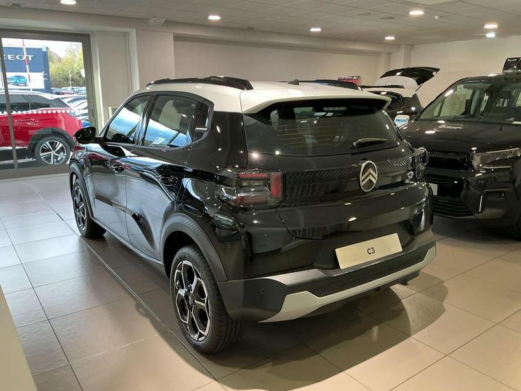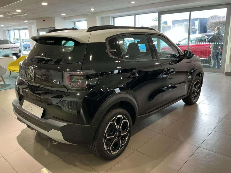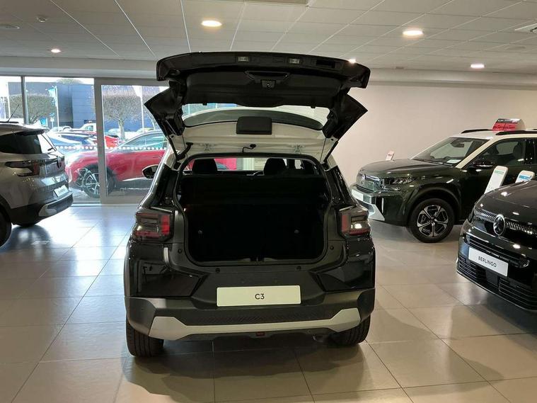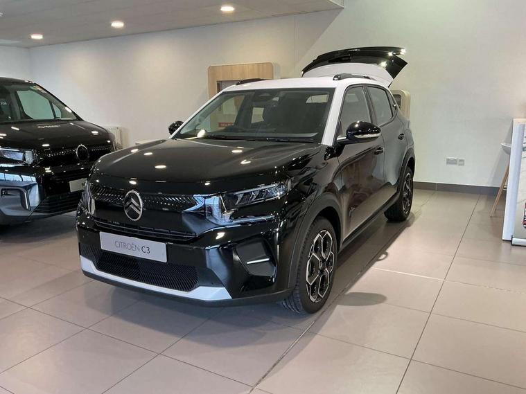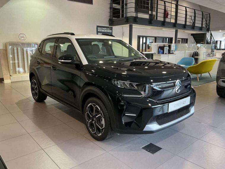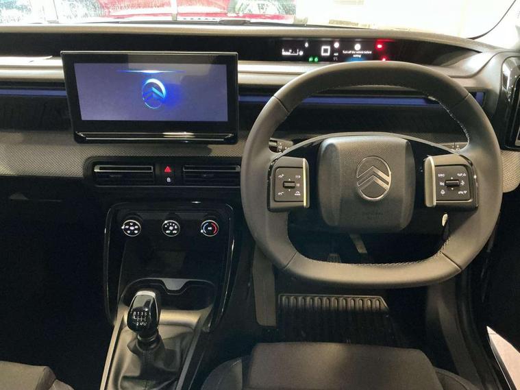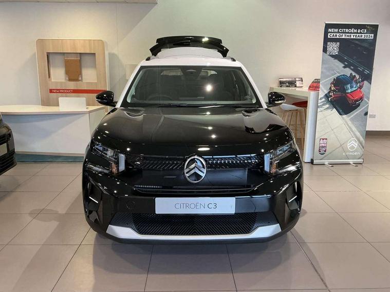 1x USB-C connection on dashboard, 1x USB-C fast charge in row 2, Active lane departure warning system, Citroen connect box emergency and assistance system, Connected services, Cruise control + speed limiter, eCall emergency call system, Electric power steering, Exterior temperature display, Head up Display, Manual gearshift indicator, Multi function trip computer, Rear parking sensors, Advanced comfort suspension with progressive hydraulic cushions, DAB digital radio, 6 loudspeakers, 10.25" capacitive touchscreen, wireless mirror screen includes apple carplay/android auto and bluetooth, 3D rear light signature, Automatic activation of hazard warning lights, Automatic headlights, Black roof bars, Black wheel arch extensions, Body colour bumpers, Electric front power windows with auto up/down for the driver and auto down for passenger, Electric rear power windows, Electrically heated, folding and adjustable external rear view mirrors, Front and rear skid plates in grey, Front intermittent wipers, Gloss black exterior door handles, Gloss black finish B and C pillar, Gloss black rear view mirror caps, Heated rear window, Intelligent beam headlights, LED daytime running lights, LED headlights with electric levelling, LED third brake light, Rear roof spoiler, Rear side wing doors, Standard day night switchable interior rear view mirror, Tinted side windows, Turn indicators integrated into rear view mirrors, 1 litre bottle storage in front and rear door pockets, 1/3 to 2/3 split folding rear seat, 12V socket on console, 4x anchoring rings on boot, Advanced comfort front and rear seats, Bag support hook in boot, Central storage with 2 cupholders, Chrome effect interior door handles, Closed glove box, Cloth upholstery, Driver and passenger's sun visor with courtesy mirror, Driver's seat height adjustment, Fixed boot light, Front seats adjustable with forward back slide and adjustable backrest, Height adjustable front head restraints, Height/reach adjust steering wheel, ISOFIX mounting on outer rear seats with top tether and labels indicating fixing points, Leather effect steering wheel with gloss black and chrome elements and integrated audio/telephone/cruise control/speed limit controls, LED front lighting panel with map reading lights, Manual air conditioning, Map pockets in back of driver and front passenger seats with additional pocket for smartphone storage, Matt black gear knob with gloss black insert, Padded fabric armrests in front and rear doors with labels, Parcel shelf, Seatbelt unfastened on the move audible and visual alert for front and rear seats, Single front passenger seat, Three rear headrests, Safety pack - C3 Plus and Max, Visibility pack - C3 Plus and Max, ABS, Child locks on rear doors, Driver and front passenger seatbelts with pyrotechnic pretensioners and force limiters, Driver's airbag, ESP with anti skid system, Front passenger airbag, Front passenger airbag deactivation, Front side airbags + front/rear curtain airbags, Hill start assist, Manual parking brake, Mono-tone horn, Three rear 3-point seatbelts, Tyre pressure monitoring system, Automatic door and boot locking when moving off with automatic unlocking in case of impact, Central locking with deadlocks, Connected anti theft alarm (Volumetric and perimetric with tilt sensor), Immobiliser, Remote control central locking with 1x plip key and 1x non plip key, 2 side air vents and 2 central air vents on dashboard, Grey decor on dasbhboard, Grey decor on front doors, 17" Atacamite diamond cut bi-tone alloy wheels with locking wheel nuts,