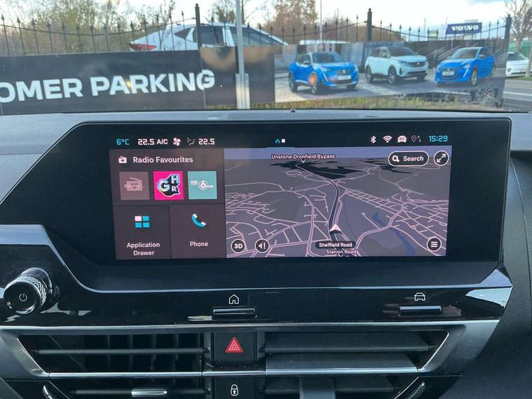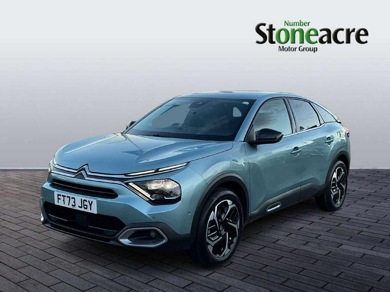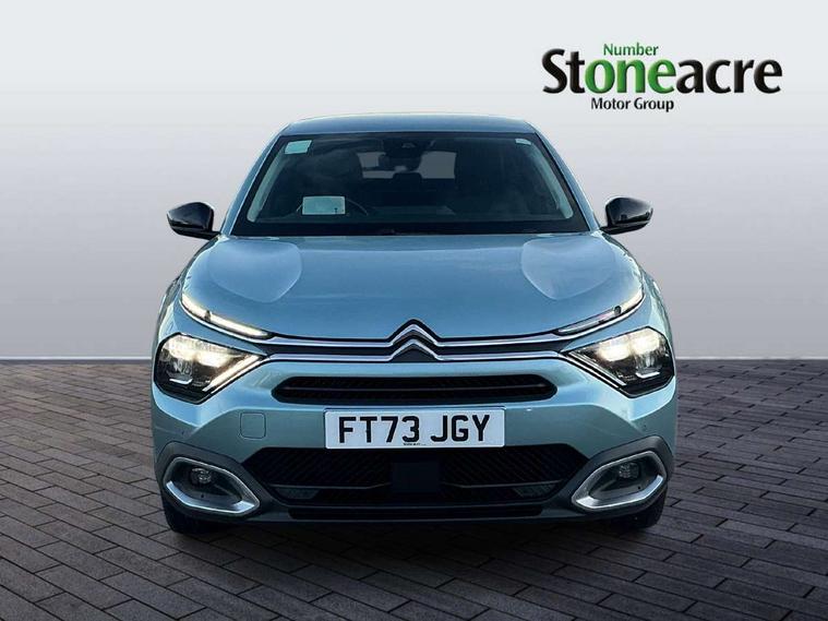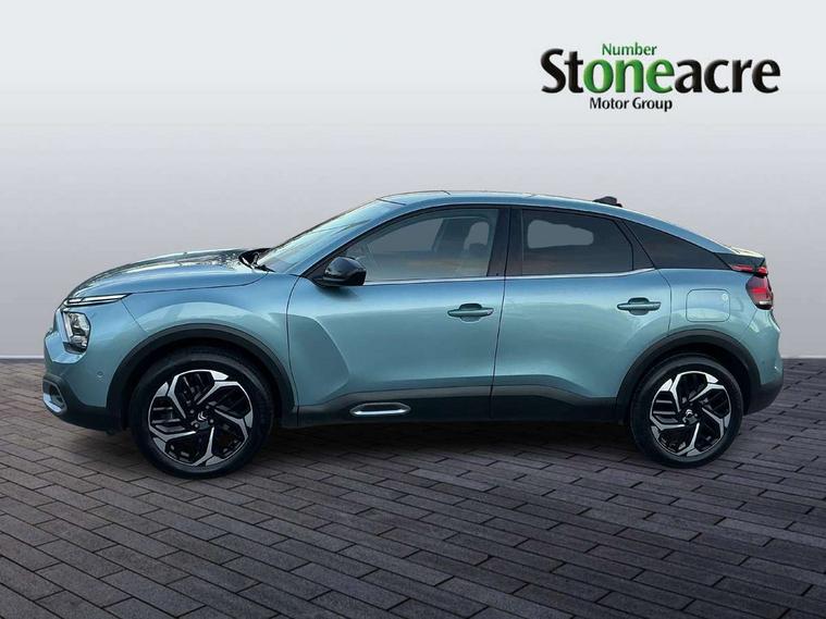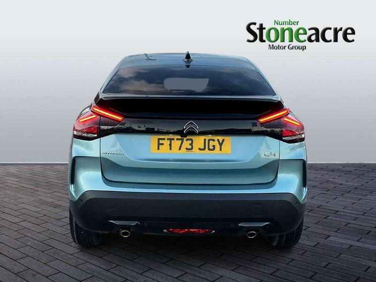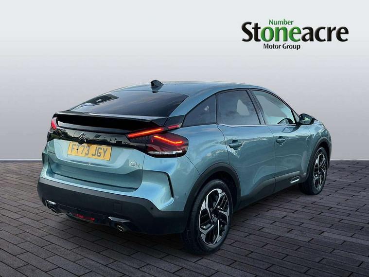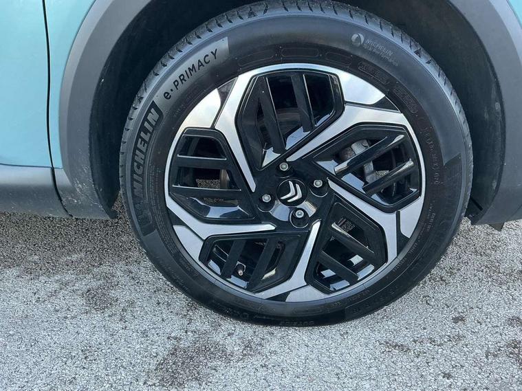 5.5 inch backlit full TFT driver's instrument cluster with LED ambient lighting, Active blind spot detection, Apple car play and Android auto, Citroen connect box emergency and assistance system, Citroen Smart Pad Support - integrated support for attaching a tablet computer for front passenger, Driver's head-up display, Electronic Power Steering (EPS), Front, rear and lateral parking sensors, In-crash braking, My Citroen Drive Plus: 10" high-resolution touchscreen user interface, controlling media, connectivity, vehicle settings + connected nav, Speed limiter, Tailgate, Voice commands, Advanced comfort suspension - double hydraulic stops on front and rear suspension, 6 speakers, Bluetooth telephone and audio streaming, DAB Digital radio, 3rd brake light, Automatic headlights, Body colour bumpers, Body colour door handles, Boot spoiler, C-Series badging on front wing, Dark tinted rear windows and side windows with chrome detail, Electrically heated, folding and adjustable external rear view mirrors with courtesy lighting, Electrochrome interior rear-view mirror with automatic day-night switching, Front and rear electric windows, Gloss black rear skirt, Intelligent beam headlights, LED daytime running lights in V signature, LED front fog lamps with static cornering function, LED front headlamps, Perla Nera black painted external rear view mirrors, Rain sensing automatic front windscreen wipers, Rear side wing doors, Rear wiper, Shark fin roof aerial, Welcome and goodbye lighting, 12V power outlet, 1x USB Type-C socket & data connection, 1x USB Type-A socket at 1st row + 1x USB Type-A socket , 1x USB Type-C socket in 2nd row, 3 rear headrests, 3 seat bench in 2nd row, Alcantara and black leather effect textile seats, Boot light, Dashboard tray in front cabin, Deluxe leather steering wheel with two command blocks, Driver and passenger sunvisors with illuminated vanity mirrors, Dual zone automatic air conditioning, Electrically heated front seats, Front and rear LED interior lighting, Front head restraints, Height adjustable driver's seat with adjustable lumbar support, Height adjustable front passenger seat, Height and reach adjustable steering wheel, Map pockets in rear of front seats, Raised centre console with armrest and two cup holders, Rear central folding armrest with cupholders and ski hatch, Single front passenger seat, Split folding rear seats, Two position boot floor, XXL storage in front cabin, High level acoustic insulation pack - C4/C4 X/e-C4 X, 3x3 point rear seatbelts, ABS, Driver and front passenger airbags, Electric parking brake, ESP, Front seatbelt pretensioners, Hill start assist, Manual child lock in second row, Manual deactivation of front passenger airbag, Row 1 and 2 curtain airbags, Row 1 side thorax airbags, Seatbelt unfastened on the move warning, Tyre underinflation detection, Anti-theft alarm (volumetric protection), Immobiliser, Keyless entry and start, Remote locking with deadlocks, 18" Bi-tone diamond-cut aeroblade alloy wheels with anti-theft locking wheel nuts, Puncture repair kit with compressor,