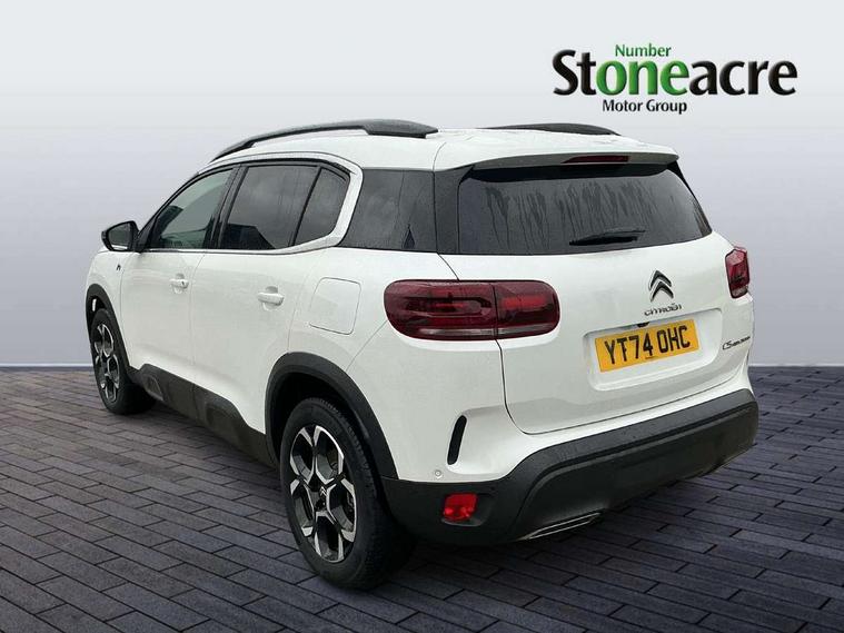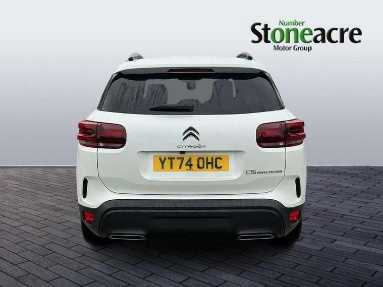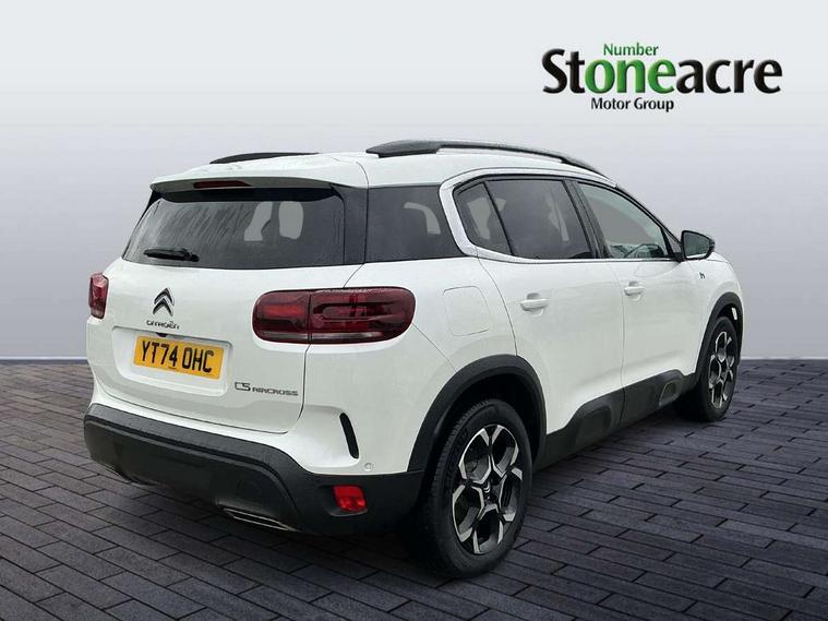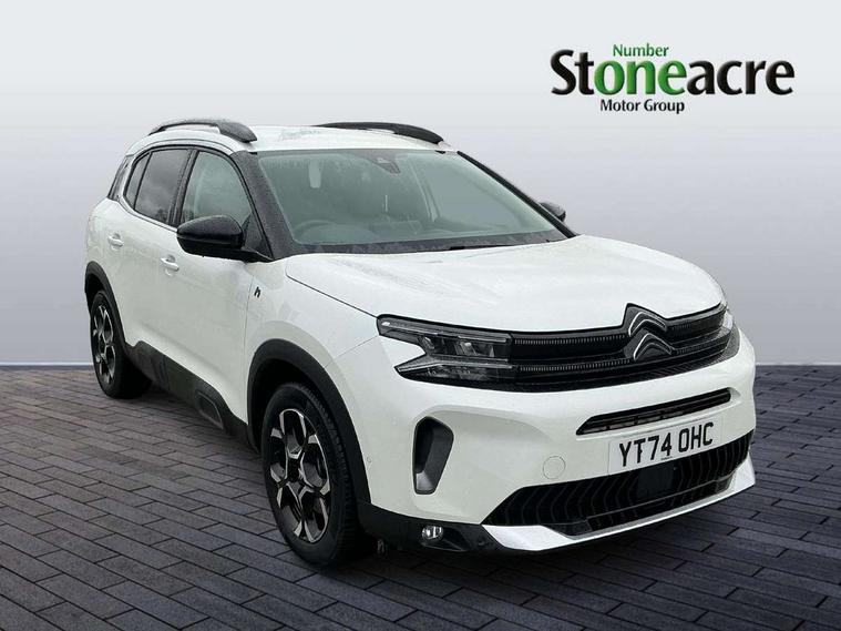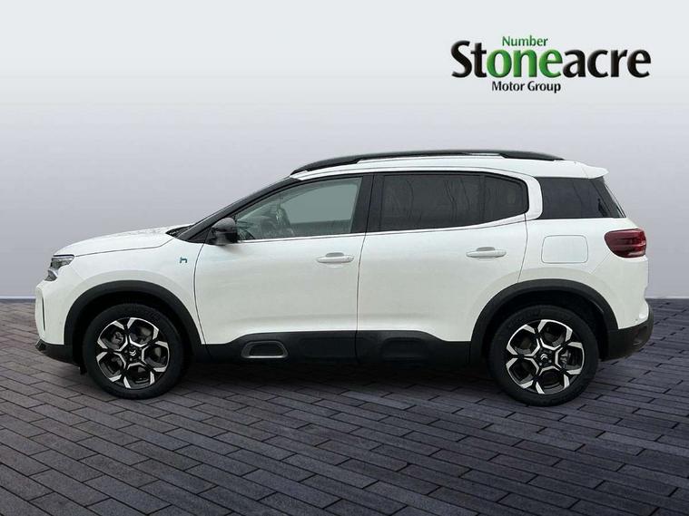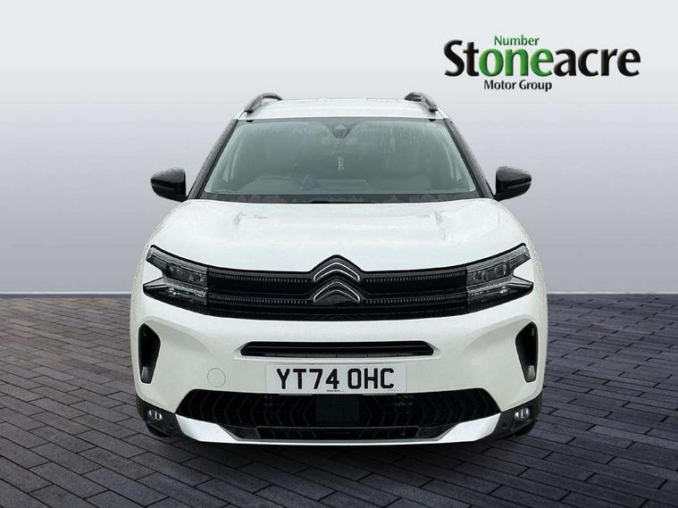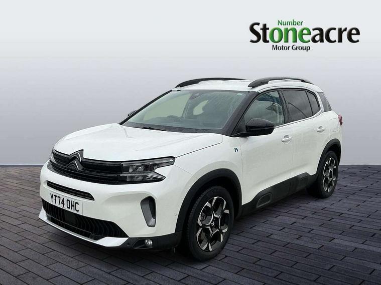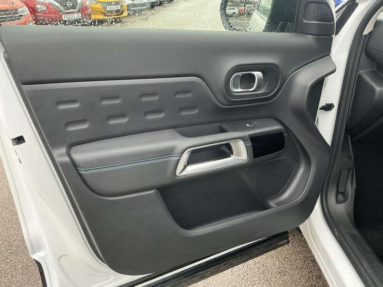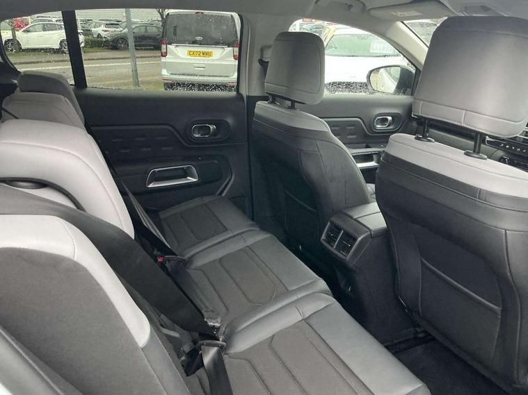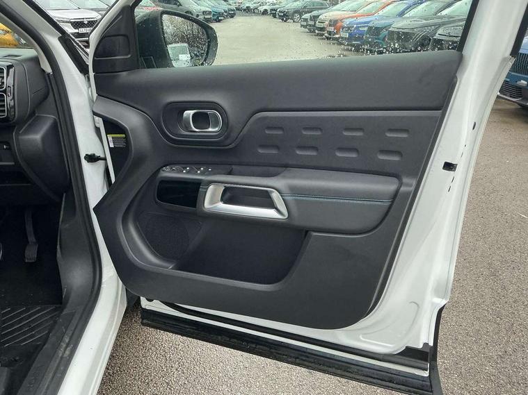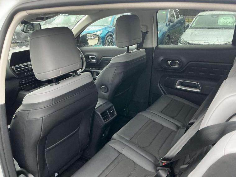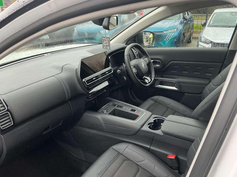 10" Touchscreen user interface with citroen connect nav, voice commands, Bluetooth handsfree and audio streaming, 12.3" digital instrument cluster with customisable zones and colour schemes, Citroen connect box emergency assist system, Citroen connect play featuring android auto and apple carPlay, Electric power steering, Multi function trip computer, Stop and go, 7 kW onboard charger, Advanced comfort suspension, Type 2 Mode 3 charging cable (length 6m) for use with a charging point, Auxiliary input socket, FM and DAB digital radio, 6 speakers, Polyphonic sounds, USB A socket (charge only) on rear part of central console, Acoustic laminated front side windows, Acoustic laminated windscreen with rain and brightness sensors, Automatic hazard light activation upon heavy brake application, Automatic headlights with welcome and goodbye lighting, Body colour door handles, Body colour front bumper with air curtain, silver painted skid plate, and matt black lower section, Body colour rear bumper, Electric heated and folding door mirrors with LED approach lighting and blind spot monitoring indicators, Electrochrome auto dimming interior rear view mirror, Front fog lights with static cornering function, Gloss black longitudinal roof bars, Glossy black door mirrors, Glossy black structured grille, LED 3rd brake light, LED headlights with LED daytime running lights and visual signature, LED rear lights with visual signature, Magic wash automatic windscreen wipers with flat blades, variable speed depending on vehicle speed, and windscreen washers integrated into the wipers, Radio aerial integrated into rear window, Rear side wing doors, Rear window wiper with intermittent facility, linked to reverse gear, Sequential electric front and rear side windows with anti pinch function, Stainless steel window finishers, Tinted row 1 windows and dark tinted row 2, C-Pillar and tailgate windows, 12V power outlet and 2x USB-A sockets (1x charge+data, 1x charge only) on front part of central console, 12V socket in boot, 3 point ISOFIX mountings on front passenger and rear outer seats, 4 way adjustable steering column, Adjustable headrests (2 in front, 3 in rear), Advanced comfort front and rear seats, Automatic bi-zone air conditioning with active carbon filter and air quality system, plus controllable row 2 air diffuser, Boot light, Central storage box with opening central armrest and interior lighting, Dashboard storage area to right of driver, open storage at front of central console, glovebox with smooth opening and lighting, e-Toggle automatic gearbox selector, Fixed boot floor with butterfly opening, Front door storage can hold 1.5 litre bottle and A4 size documents, B-pillar coat hooks, rear door storage, central storage under armrest, Manual driver lumbar adjustment, Manual front passenger seat adjustment (height, slide, backrest angle), Map pockets in rear of front seats, Multi function leather steering wheel with two command blocks, Single front passenger seat, Storage compartment for charging cable under boot floor, Three individual sliding seats with adjustable backrest and near flat floor function, Two open cupholders with LED lighting in central console, City camera pack with front and rear parking sensors - C5 Aircross, Drive assist pack - C5 Aircross EAT8, LED interior lighting - - C5 Aircross, 3 rear 3-point seatbelts (outer seats featuring force limiters), ABS/EBD, Adaptive driver and front passenger airbags with passenger airbag deactivation function, Driver and front passenger side airbags, DSC (Dynamic Stability Control) and ASR (Electronic Anti-skid System), Electronic parking brake, ESP including traction control and stability programme, Front seat belts with double pretensioning, force limiters and height adjustment (driver and passenger), Front ventilated disc brakes and rear disc brakes, Head curtain airbags covering rows 1 and 2 (left and right), Hill start assist, Manual child lock in second row, Seatbelt unfastened audible alert, Two tone horn, Tyre under inflation indicator, Anti theft alarm with perimetric and volumetric protection, plus tilt sensor, Anti theft locking wheel nuts, Automatic door and tailgate locking with automatic unlocking in case of collision, Electronic code immobiliser, Keyless entry and start, Remote central locking + deadlocks, Compressor with puncture repair kit,