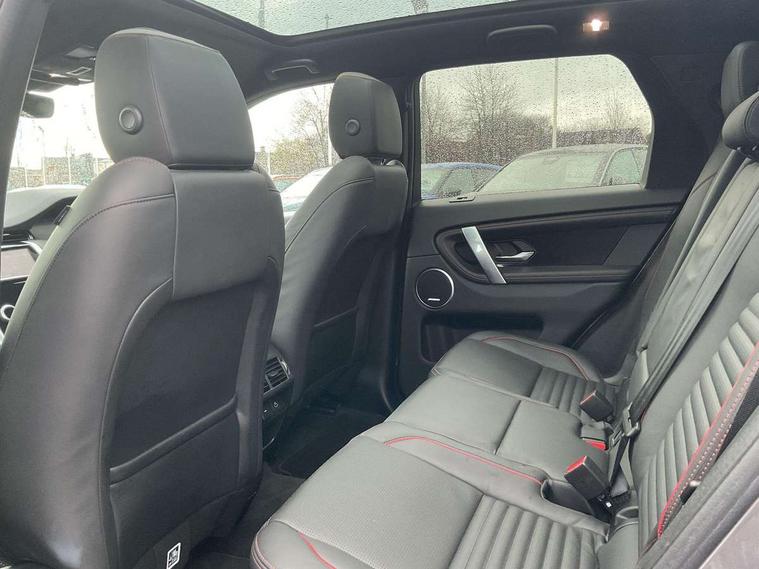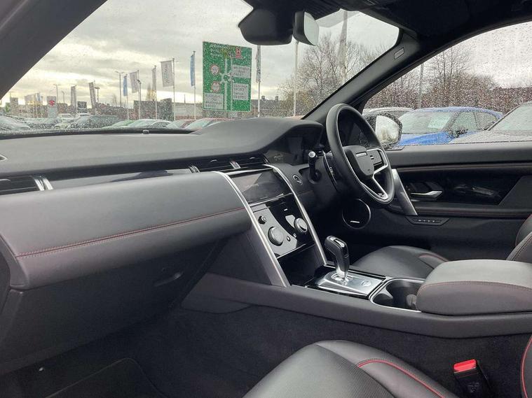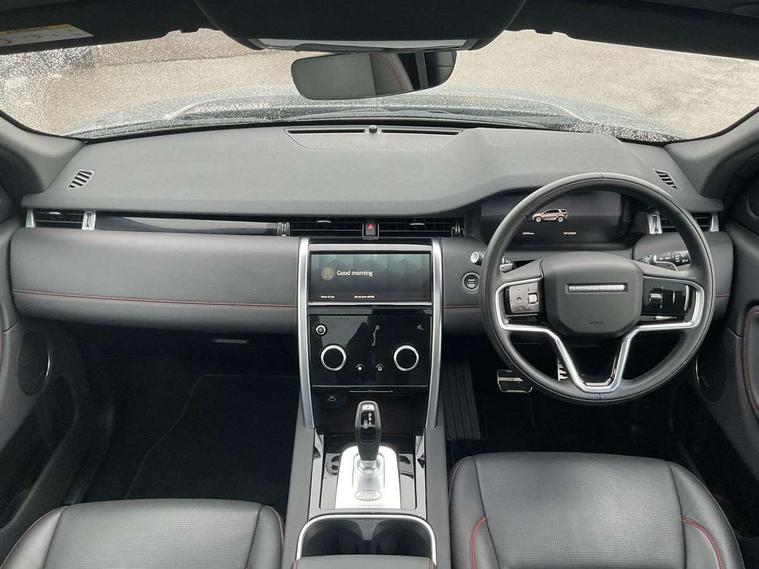 10" touch screen, Adaptive cruise control, Android Auto, Apple CarPlay, Blind spot assist, Clear exit monitor, Driver condition monitor, eCall emergency call system, Front and rear parking aid, InControl remote premium, Lane keep assist, Locking fuel flap, PAS, Pivi Pro connected navigation system with upgraded Infotainment, Powered tailgate/boot lid, Push button start, Rear collision monitor, Rear traffic monitor, Service interval indicator, Traffic sign recognition with adaptive speed limiter, Trip computer, Wade Sensing, All terrain progress control, Coil suspension system, Configurable dynamics, Diesel particulate filter, Dynamic stability control, Efficient Driveline, Terrain Response 2, Bluetooth connectivity including audio streaming, Digital Audio Broadcast radio-DAB, Steering wheel mounted audio controls, 3rd brake light, Automatic headlight levelling, Automatic headlights, Black number plate plinth, Electric front/rear windows, Electric heated/power fold door mirrors with approach lights and auto dimming driver side, Front and rear recovery eyes, Front fog lights, Heated rear window, Heated windscreen including heated washer jets, Illuminated metal front treadplates with R dynamic branding, Privacy glass, R Dynamic badge, Rain sensing windscreen wipers, Rear fog lights, Rear side wing doors, Rear wing door, Rear wiper, 2 seat bench in 3rd row, 3 seat bench in 2nd row, Bright metal pedals, Centre console with armrest, Configurable cabin lighting, Electrically adjustable steering column with memory, Footwell lights, Front and rear grab handles, Front passenger isofix child seat attachment, Front passenger seat, Heated steering wheel, Loadspace cover, Loadspace light, Manual third row seats, Overhead lighting console, Overhead stowage for sunglasses, Rear headrests, Satin chrome gearshift paddles, Sunvisors with illuminated vanity mirrors, Tilt/reach adjustable steering wheel, Black exterior pack - Discovery sport R-Dynamic SE/HSE, Online pack with data plan - Discovery, 3 point seatbelts on all seats, ABS, Brake hold function, Child locks on rear doors, Collision mitigation braking system, Cornering brake control (CBC), Driver/Front Passenger airbags, Drivers knee airbag, Electronic brake force distribution, Electronic parking brake, Emergency brake assist, ESP + traction control, Hill descent control, Hill launch assist, Pedestrian airbag system, Rear seat ISOFIX, Roll stability control, Side and curtain airbags for front and 2nd row seats, Trailer stability control, Tyre pressure monitoring system, Battery Back Up System (BBUS) with tilt sensor, Global lock and unlock switch on driver door, Intrusion sensor, Keyless entry, Locking wheel nuts, Centre stack rails in noble chrome,