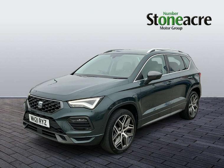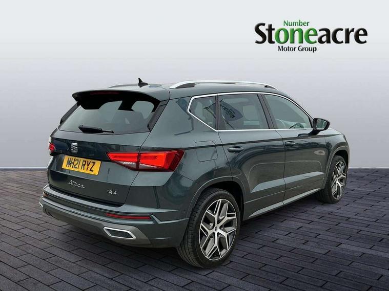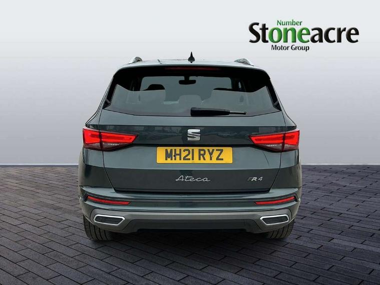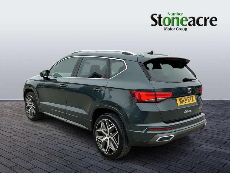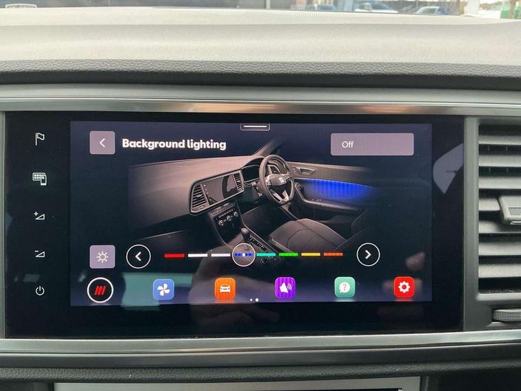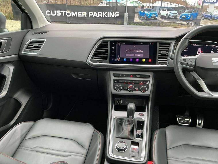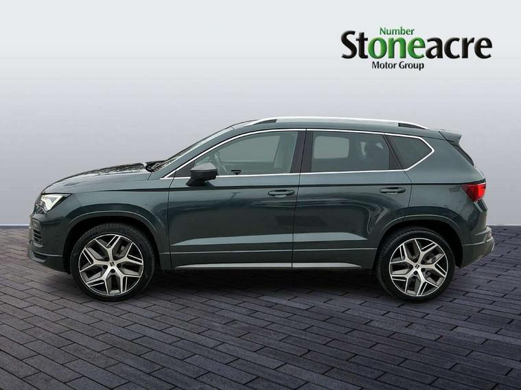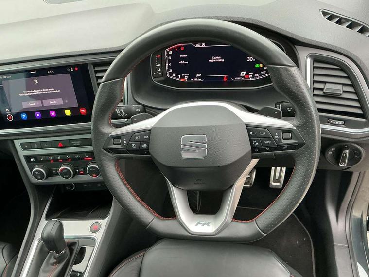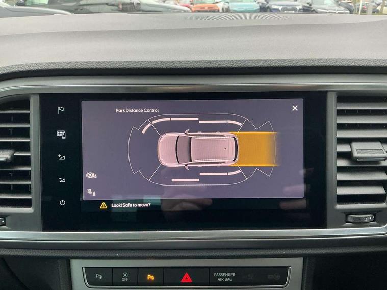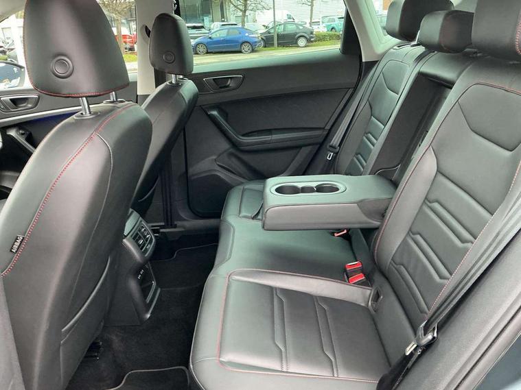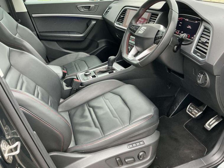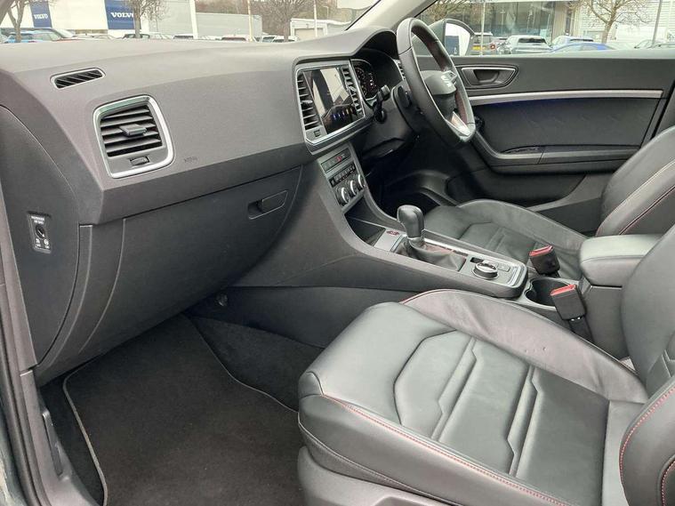 Cruise control system with speed limiter, Digital cockpit, Outside temperature gauge, Progressive power assisted steering, SEAT drive profile with driving experience button - Normal, Sport, Eco, Individual, off-road and snow modes, gearshift, steering and throttle response, Self parking functionality (includes front and rear parking sensors), Trip computer, Wireless full link smartphone integration, Wireless phone charger, Steering wheel mounted audio/phone controls, Body colour bumpers, Body coloured wheel arch surrounds, Chrome roof rails, Chrome side window trim, Cosmo grey front grille frame, Dark tinted rear windows, Daytime running lights, Door mirrors with welcome light silhouette, Dynamic headlight range control with self adjusting whilst driving, Electric adjustable/heated/folding door mirrors, Front and rear electric windows, Full LED headlamps with lens and LED front fog lamps with cornering function, Illuminated aluminium front door sill, LED rear tail lights with dynamic indicators, Rear fog lights, Rear spoiler, Rear wash/wipe, Simulated exhaust pipes in chrome frame, 12V socket in front, 60/40 split folding rear seat, Aluminium pedals, Dual zone climate control, Electric adjustable driver seat with lumbar adjustment, Front and rear head restraints, Front centre armrest, Front seat back storage pockets, Heated front seats, Height adjustable passenger seats with lumbar adjustment, ISOFIX points in outer rear seats with top tether anchorage points, Leather steering wheel and gear knob, Leather upholstery with front sports seats, Multicoloured ambient lighting with LED interior illumination, Rear armrest and easy back seat release mechanism from boot, Steering wheel mounted gearshift paddles, Storage compartment in roof console for sunglass, Convenience pack - Ateca, Interior lighting pack - Ateca, Navigation system pack with DAB - Ateca, 3x3 point rear seatbelts, ABS, Traction control system (TCS), Electronic stability control (ESC) and Electronic differential lock system (XDS), Airbags - Driver and front passenger airbag with deactivation, front side, two curtain and driver's knee airbags, Electric parking brake with auto hold function, Front and rear seatbelt reminder, Front assist with autonomous emergency braking, Hill hold control, Tiredness recognition system, Traction control, Tyre pressure monitoring system, Alarm, Keyless entry, Locking wheel bolts, Chrome interior detailing, 19" Exclusive machined alloy wheels with decorative inserts 36/7 in cosmo grey,
