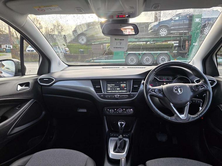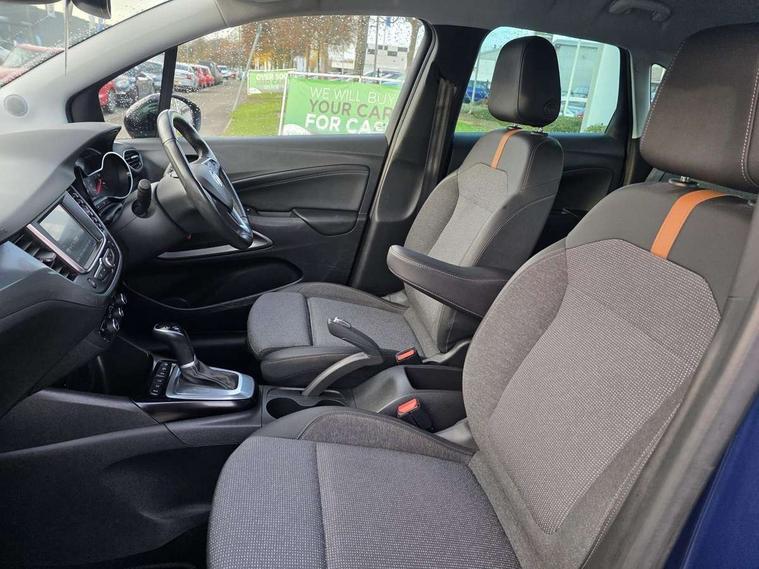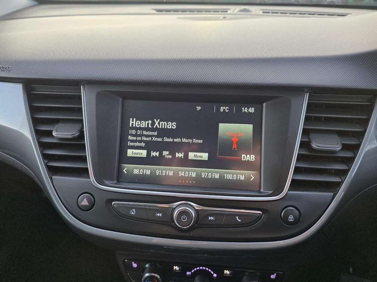 3.5" monochrome instrument colour display, Audible lights on warning, Bluetooth connectivity, Cruise control + speed limiter, Digital clock with automatic RDS time adjustment, Instrumentation - Speedometer, rev counter, low fuel gauge warning light + water temperature gauge warning light, shift up/down indicate light, Lane departure warning system, Multi function trip computer, Multimedia with 7" colour touchscreen, AM/FM, Bluetooth audio streaming, Bluetooth mobile phone portal, apple CarPlay/Android Auto + 6 speakers, Outside temperature display with ice warning, Refridgerant low indicator, Service interval indicator, Speed sensitive power steering, Speed sign recognition, Front wheel drive, DAB Digital radio, Steering wheel mounted audio/phone/cruise controls, USB port, 2 speed wipers/wash wipe/intermittent wipe, Alloy effect front and rear skid plates, Automatic anti dazzle rear view mirror, Automatic headlamp levelling system, Automatic high beam control with cornering light, Automatic lighting control, Black radiator grille with chrome bar, Body colour door handles, Body colour front and rear bumpers, Chrome effect upper window moulding, Dark tinted rear side windows + tailgate window, Electrically adjustable and heated door mirrors, Front power windows with express up/down and anti-pinch function, Hazard warning lights, Headlamps for left side traffic, Heated rear window, Integrated tailgate spoiler, Intermittent rear wash/wipe, LED daytime running lights, LED front fog lights, LED Headlights, LED side repeat indicators, Rain sensitive windscreen wipers, Rear fog lights, Rear power windows with express up/down and anti-pinch function, Reversing light, Side window demist vents, Solar heat absorbing windscreen and windows, Welcome lighting, Windscreen demist vents, Without LED rear lights, 12v power outlet - front, 2 way adjustable front passenger seat, 2 way front passive headrests, 3 spoke flat bottomed leather covered steering wheel with bezel decoration, 4 way electrically adjustable lumbar support for drivers seat, 60/40 split folding rear seat backrest, Adjustable rear seat backrest, Air recirculation facility, Ambient lighting, Anti submarining ramps in front seats, Cabin particulate filter - removes dust, airborne particles and pollen, Centre console, Driver and front passenger illuminated vanity mirrors with flip up covers, Driver's seat armrest, Drivers ergonomic active seat with 8 way manual adjustable driver seat , height, reach and backrest, Dual zone electronic climate control, Electric heater, Fade up/fade down on interior lighting, Four adjustable facia vents, Front door pockets with bottle holders, Front map reading lights, Fully carpeted luggage area, Glovebox with lid, Height adjustable front/rear head restraints, Illuminated load area, Interior courtesy light operated by all doors, Isofix system on outer rear seats, Jet black premium leather side bolsters, Luggage compartment cover, Multi-speed fan with Illuminated control, Open storage compartment in centre console, Passenger assist handles, Reach + rake adjustable steering column, Rear door pockets with bottle holders, Rear floor ventilation ducts, Rear reading lights, Satin chrome effect bezel on steering wheel, Seat cushion extension, Sparkle cloth/vinyl upholstery, Storage pockets on front seat backs, Two drinks holders in centre console, Rear view camera pack - Crossland, Winter pack - Crossland, 3x3 point rear seatbelts, 6 airbags - Driver and co-driver front, front side, head curtain roof airbags, front and rear row coverage airbags, ABS, Child locks on rear doors, CSC - Cornering stability control, Deactivate switch for side impact airbags, Deformation zones front and rear, Dual seatbelt pretensioners on front seats, EBD - Electronic brakeforce distribution, Energy absorbing steering column, Engine drag torque control, ESP + traction control, Front and rear seatbelt unfastened audible warning and warning light, Front side impact airbag, Hill start assist, Hydraulic Brake Assist (HBA), Hydraulic brake boost, Inertia reel lap and diagonal seatbelts for all seats, Passenger airbag deactivate switch, Rear seat belt pretensioners, Reinforced passenger safety cell, Seatbelt load limiter, Side impact protection beams, Smart seatbelt reminder for front and rear seats, Tyre pressure monitoring system, 2 remote folding keys, Electronically protected audio equipment, Engine immobiliser, Locking wheel nuts, Remote central deadlocking, Remote control central locking activation switch on driver door, Remote control central locking operates on doors, tailgate and fuel filler flap, Remote security alarm system, Visible vehicle identification number, Black facia with silver trim insert, Black trim inserts on front doors, Cluster black with chrome rings, 17" five twin spoke diamond bi colour alloy wheels,