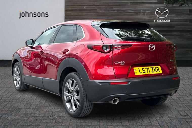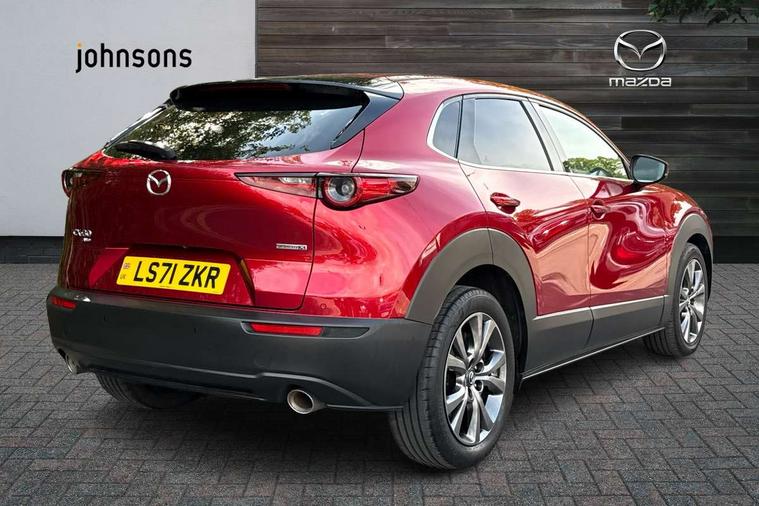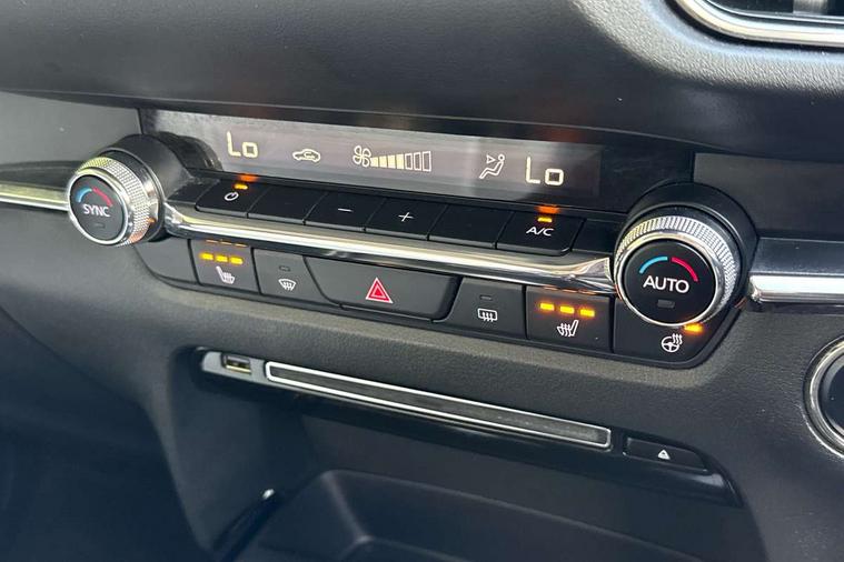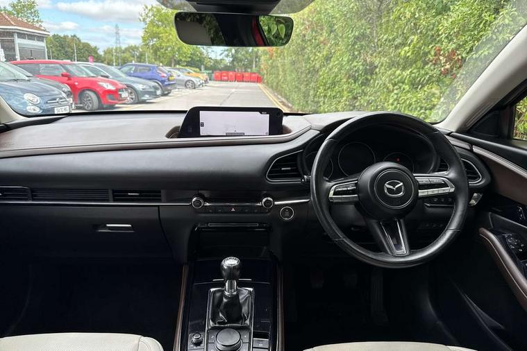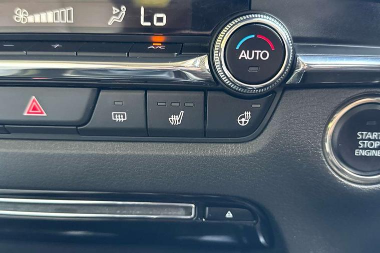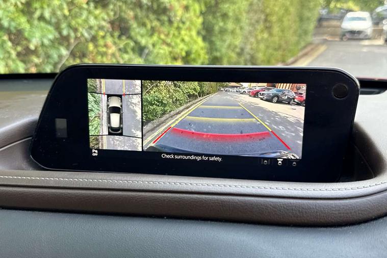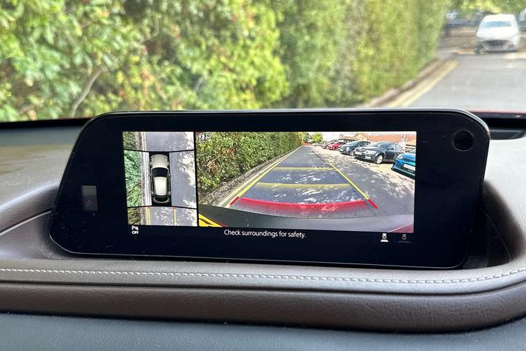 360 View Monitor, 7" TFT Colour driver instrument panel display, 8.8" Colour centre touch screen display with Mazda Connect infotainment, Adaptive cruise control (Mazda radar cruise control) features stop and go, Apple car play/Android Auto, Blind spot monitoring with rear cross traffic alert, Cruising Traffic Support, Driver attention alert system, Driver monitoring system, E-call with GPS, Emergency stop signalling system, Engine start/stop button, Front and rear parking sensors, Front Cross Traffic Alert, Integrated bluetooth, Integrated Mazda navigation system, Intelligent speed assist, Lane keep assist system (LAS) with Lane departure warning system (LDWS), PAS, Power lift gate, Service indicator, Trip computer, Window projected colour active driving display (head up display) with traffic sign recognition, i-stop, 2 USB charging ports, Bose surround sound system with 12 Speaker, Bose center point, Bass match and audio pilot technology, CD player, DAB Digital radio, Multimedia Commander including separate volume dial, Steering wheel mounted audio/bluetooth controls, Adaptive LED Headlights, Auto dimming driver's door mirror, B-pillar and C-pillar garnishes in gloss black finish, Body coloured, electrically adjustable, heated auto power folding door mirrors with integrated indicators, Coming/leaving home lighting function, Door mirrors with tilt-down function when reversing, Dual chrome exhaust, Dusk sensing headlights, Electric front/rear windows with one touch auto up/down, Frameless auto dimming interior rear view mirror, Front kodo turn signal, Gloss black front grille, Gloss black rear roof spoiler, High beam assist, LED headlamps with auto levelling, Power tilt/slide sunroof, Privacy glass (rear side windows and rear screen), Rain sensing front wipers with adjustable speed and intermittent wipe, Rear fog lights, Rear wiper, Signature front LED daytime running lights, Signature LED rear combination lights with LED rear turn lights, 12V power outlet in centre console, 60/40 split fold down rear seats, Chrome horn pad ring, Dashboard, door cards and front centre armrest in rich brown leather, Driver and front passenger visors with covered vanity mirror and driver ticket holder, Driver seat memory function, Driver's seat, power tilt, slide, recline, height and lumbar adjustment, Driver, Front passenger and two rear grab handles with coathooks, Dual zone climate control air conditioning with rear air vents, Folding rear centre armrest with two cup holders, Front and rear (x3) head restraints, Front and rear door pockets, Front and rear LED lighting, Front armrest, Front centre storage with two cupholders, Front passengers seat manual slide, recline and height adjustment, Gear shift indicator, Glovebox illumination, Heated front seats with 3 stage setting, Heated steering wheel, ISOFIX child seat anchorage points attached on outer rear seats, Leather wrapped gear shift knob, Leather wrapped steering wheel with telescopic and tilt adjustment, Luggage compartment light, Rear passenger seat map pockets, Roof mounted sunglasses holder, Vinyl leather door panel inserts, 3 point ELR front seat belts x2 with pretensioners, 3 point ELR rear seat belts, Anti-lock braking system (ABS), Driver/Front Passenger airbags, Drivers knee airbag, DSC - Dynamic Stability Control, Electronic parking brake with auto disengage function and auto hold function, Front and rear curtain airbags, Front and rear smart city brake support, Front passenger airbag cut-off switch, Front side airbags, G-Vectoring control plus, Hill launch assist, Mild Hybrid system with regenerative braking, Rear cross traffic braking, Seatbelt reminder for driver/front passenger and rear seats, Traction control system (TCS), Tyre pressure monitoring system (TPMS), Remote central locking with deadlocking and automatic door lock when driving, Smart keyless entry, Thatcham accredited alarm and immobiliser, 18" Bright silver metallic alloy wheels, Emergency tyre repair kit,