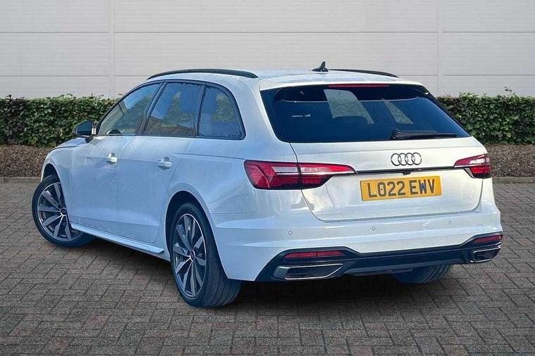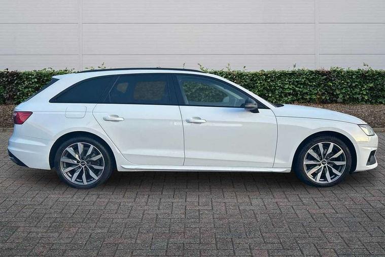 Audi connect safety and service (e-call), Audi connect with Amazon Alexa Integration, Audi drive select, Audi smartphone interface, Audi virtual cockpit, Automatic start-stop system with coasting functionality and efficiency programme, Bluetooth interface, Cruise control system with speed limiter, Electromechanical power steering, Email, calendar and text messages displayed via MMI, MMI Navigation plus with MMI touch includes 10.1" high resolution colour MMI display, 3D map, Power operated tailgate, Voice control system, 54 litre fuel tank, Comfort dynamic suspension, 2 USB charging ports, 8 passive loudspeakers, DAB digital radio reception, Auto dimming rear view mirror, Body colour door handles, Body colour side sill trim, Body coloured door mirrors, Electrically folding auto dimming/adjustable/heated door mirrors with LED side indicators and kerb view function for passenger side, LED headlights and rear lights with LED daytime running lights, LED third brake light, Matt aluminium silver tailpipe trim, Privacy glass, Rain and light sensors, Rear diffuser in matt titanium black with trim strip in matt aluminium silver, Rear side wing doors, Rear wiper, Sport front and rear bumpers with side skirts, Variable intermittent front wash/wipe, Windscreen with acoustic glazing, 3 spoke high multi-function leather sport steering wheel with paddle shift and height and reach adjustable, 4 way electric lumbar support for driver and front passenger, 40/20/40 split folding 3 rear seat bench in 3 parts with rear centre armrest, Deluxe 3 zone electronic climate control, Door sill trims with aluminium inlay, Electric load area cover, Front and rear head restraints, Front centre armrest, Heated front seats, ISOFIX child seat mounting and top tether, Manual seat adjustment, Single front passenger seat, Twin leather upholstery + front sports seats, Black styling pack - A4 Avant Sport Edition/S4 Black edition/S4 Vorsprung, High gloss package - A4, LED Interior light pack - A4/S4, 3 rear seatbelts, 6 airbags - Driver, front passenger, curtain and side windows, Electronic Stabilisation Control (ESC) including ABS, ASR and EDL, Hill hold assist, Multi collision brake assist, Pop-up bonnet for pedestrian protection, Pre sense city, Rear door child safety locks, Seatbelt monitoring, Warning triangle and first aid kit, Anti theft alarm, Anti theft wheel bolts, Central locking, Keyless Go, Aluminium ellipse silver inlays, 18" 10 spoke dynamic design alloy wheels, Tool kit, Tyre repair kit,