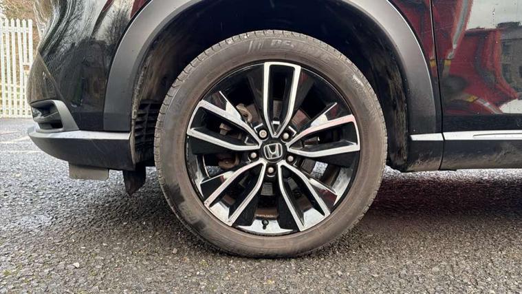 7" TFT instrument cluster, Adaptive cruise control, Adjustable speed limiter, Agile handling assist, Bluetooth hands free telephone connection, Drive modes select (Eco, normal and sport), eCall emergency system, Electric power steering, Emergency stop signalling system, Forward collision warning, Front parking sensors, Honda CONNECT with navigation, 9" touchscreen, AM/FM/DAB/Apple Carplay and android auto, Idle stop, Intelligent speed limiter, Lane departure warning, Lane keep assist, Low speed following, Multi info display, Power meter, Rear parking sensors and rear view camera, Road departure mitigation, Tachometer, Tailgate, Traffic sign recognition, WiFi connectivity, Vehicle stability assist, 'Shark fin' mobile antenna, 2x USB Front socket (1 data & 1 charge), 4 speakers, Steering wheel mounted remote controls, Auto folding door mirrors, Auto high beam, Automatic coming home lighting, Automatic headlights, Automatic rain sensing wipers, Body colour bumpers, Body colour tailgate spoiler, Body coloured door handles, Body coloured door mirrors, Body coloured front grille, Electric front and rear windows, Electrically adjustable and heated door mirrors, Exclusive styling in lower bumper non painting black, Fog garnish non paint gloss black, lower door garnish bumper skid garnish non paint silver, Front sequential turn, Headlight washers, Heated front windscreen, Heated rear window, High level third brake light, LED daytime running lights, LED headlamps, Low gloss window garnish, Manual headlight levelling, Rear side wing doors, Rear wiper, Red and clean lens LED rear lights, Variable front intermittent wipers, Windscreen shadeband, 3 rear headrests, 3 seat bench in 2nd row, 60/40 split folding rear seat, Ambient interior lighting, Automatic air conditioning, Cargo net hooks, Courtesy lights, Driver's seat height adjustment, Driver/passenger sunvisors with illuminated vanity mirrors, Front and rear map reading lights, Front head restraints, Front seat armrests, Heated front seats, Isofix points, Luggage area under floor storage box, Magic seat flexibility system, Manual height/reach adjust steering wheel, Meter illumination light, Paddle shift controls, Passenger seat back pocket, Rear centre armrest, Rear ventilation, Silver interior door handles, Single front passenger seat, Tonneau cover, Trunk light, 3x3 point rear seatbelts, ABS+EBD+Brake assist, Anti-whiplash front headrests, Auto hold function, Collision mitigation braking system, Collision mitigation throttle control, Deflation detection system, Dual front SRS airbags, Electric child locks, Electronic parking brake, Front and rear curtain airbags, Front and rear safety belts with Emergency Locking Retractor, Front side airbags, Hill descent control, Hill start assist, Low speed safety system, Paddle deceleration control, Passenger SRS airbag cut-off device, Regenerative braking system, Door deadlocks, Honda super locks, Immobiliser, Keyless smart entry with push button start, Remote central locking with 2 remote folding keys, Security alarm, Windows key fob operation, 18" Black cut alloy wheels, Tyre repair kit,