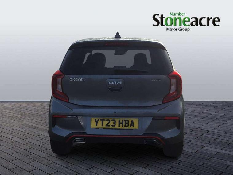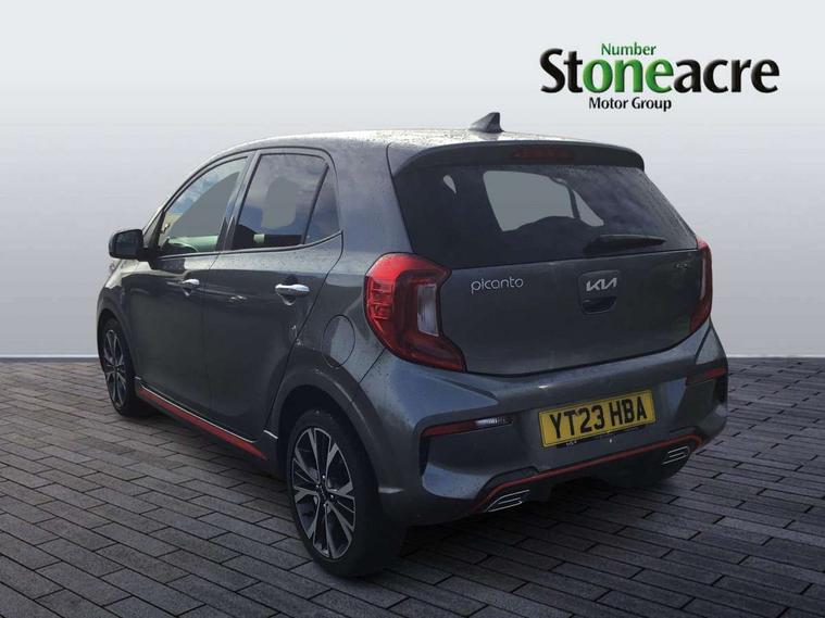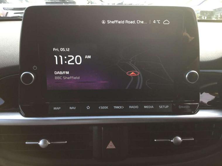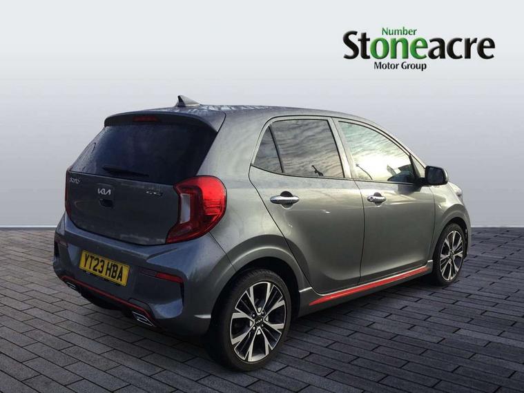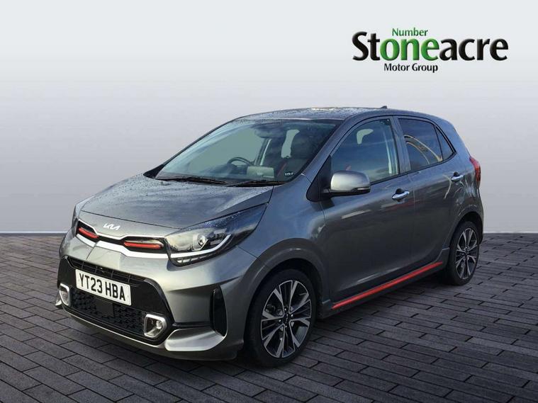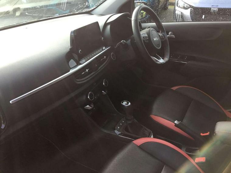 8" touch screen satellite naviagtion with RDS and DAB with telematics, Apple car play/Android Auto with voice control, Cruise control + speed limiter, Emergency call service, Emergency stop signalling system, External temperature gauge, Kia Connect (UVO), Motor driven power steering, Rear parking sensors, Reversing camera system with dynamic guidelines (Integrated into centre fascia screen), Tachometer, Trip computer, Wireless Smartphone charger, 6 speaker audio system, Bluetooth with music streaming, Steering wheel mounted controls, USB ports for connection of a media device, Automatic headlight control system, Bi-function projection headlights, Black beltline mouldings, Black grille with silver surround, Body colour B pillars, Body colour bumpers, Body colour side sill mouldings, Body coloured mirrors and chrome exterior handles, Day/night rear view mirror, Electric adjustable/heated/folding door mirrors with LED indicators lights, Front and rear electric windows with drivers's auto up/down function, Front fog lights, Headlamp levelling, Heated rear window, High mount brake light, LED daytime running lights, LED rear fog lights, Privacy glass - Rear windows and tailgate, Rain sensor, Rear side wing doors, Rear wash/wipe, Speed variable front wipers, Sports front and rear bumpers with gloss black skid plates twin exhaust, Tinted glass, Visible VIN plate, Welcome and follow-me home light functionality, 1 x rear coat hook, 12V power point front, 2 seat bench in 2nd row, 3 x passenger assist grips, 60/40 split/folding 2nd row of seats, All round height adjustable headrests, Automatic air conditioning, Black and red accents front door armrest, Centre Console with Storage Box and Sliding Armrest, Cupholders in centre console, D-cut steering wheel with red stitching, Driver and front passenger sunvisors with driver's side illuminated vanity mirrors, Driver seat height adjust, Faux leather upholstery, Front cabin lights, Glovebox, Heated front seats, Heated steering wheel, High gloss lower centre fascia trim, door armrest and air vents, ISOFIX Child seat top tethers and anchor fixings, Leather trimmed steering wheel and gearshift, Luggage area light, Luggage area parcel shelf, Passenger front seatback pockets, Satin chrome interior door handles, Single front passenger seat, Slide/reclining front seats, Tilt adjustable steering wheel, Advanced Driver Assistance Pack - Picanto, 2 x 3-point rear seatbelts, ABS/EBD, Automatic unlocking of doors in case of impact, Dual front airbags, ESC + BAS + VSM + HAC, Front passenger airbag cut-off switch, Front seatbelt height adjusters, Front seatbelt pretensioners + load limiters, Hill hold control, Knee airbags, Rear child proof door locks, Seatbelt warning, Side impact protection, Torque vectoring brake based and straight line stability (SLS), Traction control, Twin curtain airbags, Twin front side airbags, Tyre pressure monitoring system, Anti theft alarm, Engine immobiliser, Locking wheel nuts, Smart key with engine start/stop button, 16" alloy GT-Line wheels, Tyre mobility kit,