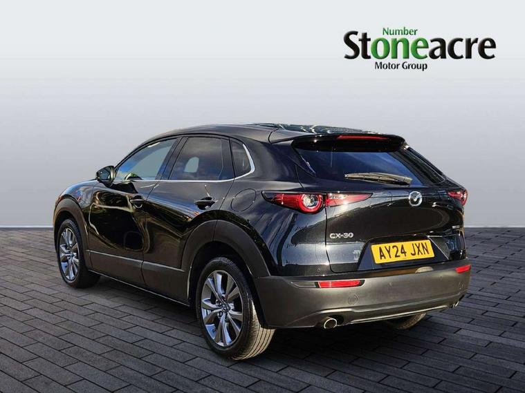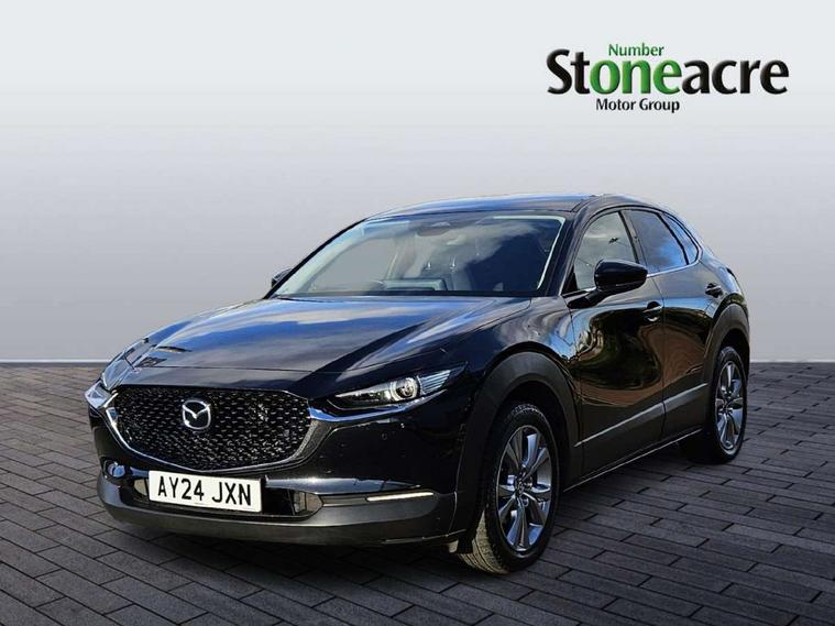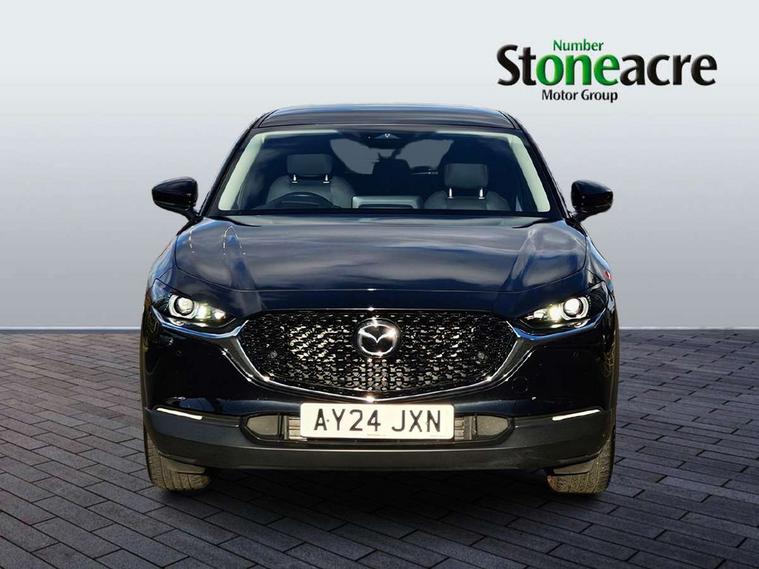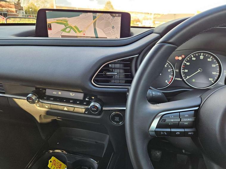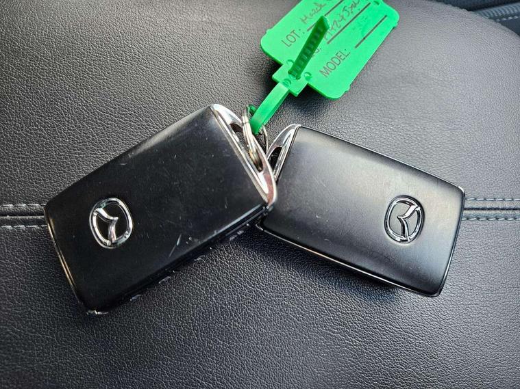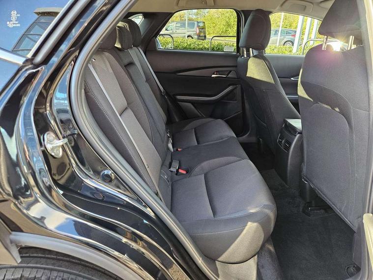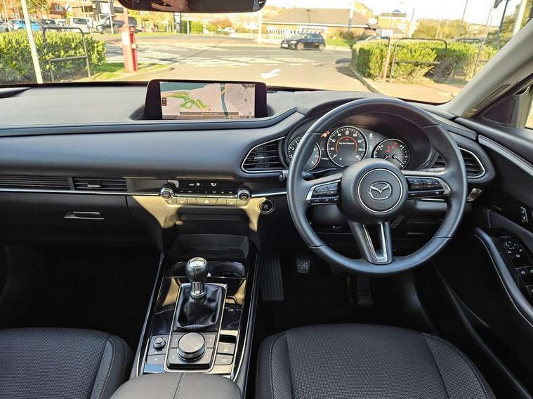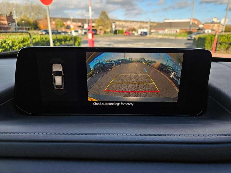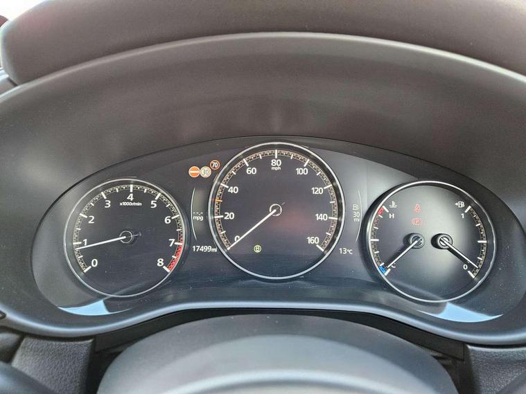 10.25" display with Mazda Connect infotainment, 7" TFT Colour driver instrument panel display, Adaptive cruise control (Mazda radar cruise control), Blind spot monitoring with rear cross traffic alert, Driver attention alert system, E-call with GPS, Emergency stop signalling system, Engine start/stop button, Front and rear parking sensors, Integrated bluetooth, Integrated Mazda navigation system, Intelligent speed assist, Lane keep assist system (LAS) with Lane departure warning system (LDWS), Mazda connected services, PAS, Power lift gate, Qi wireless charging, Reversing camera, Service indicator, Tailgate, Traffic sign recognition, Trip computer, Windscreen projected colour active driving display (HUD), Wireless Apple CarPlay/Android Auto, Cylinder Deactivation, i-stop, 2 USB charging ports in front inner central armrest, Bose surround sound system with 12 Speaker, Bose center point, Bass match and audio pilot technology, Multimedia Commander including separate volume dial, Steering wheel mounted audio/bluetooth controls, Adaptive LED Headlights, Auto dimming driver's door mirror, Auto headlight levelling, B-pillar and C-pillar garnishes in piano black finish, Body coloured, electrically adjustable, heated auto power folding door mirrors with integrated indicators, Chrome finish signature wing in front grille, Coming/leaving home lighting function, Dual chrome exhaust, Dusk sensing headlights, Electric front/rear windows with one touch auto up/down, Frameless auto dimming interior rear view mirror, Front kodo turn signal, Gloss black front grille, Gloss black rear roof spoiler, High beam assist, LED signature daytime running lights, Privacy glass (rear side windows and rear screen), Rain sensing front wipers with adjustable speed and intermittent wipe, Rear fog lights, Rear side wing doors, Rear wiper, Signature LED rear combination lights, Third brake light, 12V power outlet in centre console, 3 seat bench in 2nd row, 60/40 split fold down rear seats, Chrome interior trim accents with steering wheel centre bezel, surround of engine start / stop button and glove box handle, Cloth upholstery with interior accents, Dark cloth door panel inserts, Dashboard, door cards and front centre armrest in black cloth, Driver and front passenger visors with covered vanity mirror and driver ticket holder, Driver seat manual slide, recline, height and seat tilt adjust, Driver, front passenger and two rear door storage, Driver, Front passenger and two rear grab handles with coathooks, Dual zone climate control air conditioning with rear air vents, Folding rear centre armrest with two cup holders, Front and rear (x3) head restraints, Front and rear LED lighting, Front armrest, Front centre storage with two cupholders with lid, Front passenger seatback pockets, Front passengers seat manual slide, recline and height adjustment, Gear shift indicator, Glovebox illumination, Heated front seats with 3 stage setting, ISOFIX child seat anchorage points attached on outer rear seats, Leather wrapped gear shift knob, Leather wrapped steering wheel with telescopic and tilt adjustment, LED luggage compartment lighting, Light roof headlining and pillars, Roof mounted sunglasses holder, Single front passenger seat, 3 point ELR front seat belts x2 with pretensioners, 3 point ELR rear seat belts, Anti-lock braking system (ABS), Drivers knee airbag, DSC - Dynamic Stability Control, Electronic parking brake with auto disengage function and auto hold function, Front and rear curtain airbags, Front dual stage driver and single stage front passenger airbags, Front passenger airbag cut-off switch, Front side airbags, Front smart city brake support, G-Vectoring control plus, Hill launch assist, Manual child lock in rear doors, Mild Hybrid system with regenerative braking, Seatbelt reminder for driver/front passenger and rear seats, Traction control system (TCS), Tyre pressure monitoring system (TPMS), Remote central locking with deadlocking and automatic door lock when driving, Smart keyless entry, Thatcham accredited alarm and immobiliser, 18" Silver metallic alloy wheels, Emergency tyre repair kit,