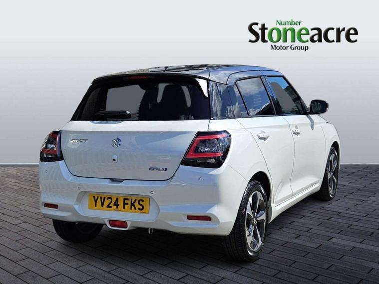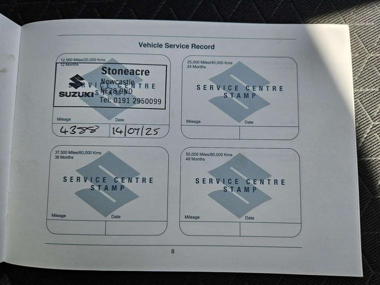 Adaptive cruise control, Automatic start/stop system, Blind spot monitoring, Colour LCD information display, Digital clock, Driver monitoring system, eCall, Fuel consumption display (average/instantaneous) and range display, Intelligent speed control support, Lane departure prevention, Lane departure warning system, Lane keeping assist (LKA), Low fuel level warning light, Navigation system, Outside temperature display, PAS, Rear cross traffic alert, Rear parking camera, Rear parking sensors, Remote fuel cap release, Smartphone integration with Apple CarPlay and Android auto, Suzuki connect, Tailgate, Traffic sign recognition, Weaving alert, 4 speakers + 2 tweeters, 9-inch infotainment display, Auxiliary input socket, Bluetooth audio streaming, DAB Digital radio, Steering wheel audio controls, USB Type A and C, 'Guide me home' headlamps, 1 speed with intermittent rear wiper + washer, 2 speeds front wiper with intermittent + washer, Automatic headlights, Black coloured A & B pillars, Black Upper and lower front grille, Body colour door mirrors and handles, C pillar trim moulding, Door mirrors with built-in turn signal lamp, Electric door mirrors, Electric folding door mirrors, Electric front windows, Electric rear windows, Green tinted glass, Heated door mirrors, High beam assist, LED daytime running lights, LED High mounted stop light, LED number plate light, LED position lamps, LED projector headlamps, LED rear combination lamp, Manual headlamp level control, Rain sensor, Rear fog lights, Rear privacy glass, Rear side wing doors, Rear spoiler, Side spoiler, 1 cup holder in rear, 12V Accessory socket in front console, 2 cup holders in front, 2 Isofix seat anchors, 3 bench rear seats in 2nd row, 3 rear head restraints, 3 spoke leather covered steering wheel, 60/40 split rear seats, Accessory socket, Automatic air conditioning, Centre console storage, Centre lower box, Child seat tether anchorages x 2, Chrome handbrake release button, Chrome interior door handles, Cloth upholstery, Door pockets with bottle holder, Driver/passenger sunvisors with ticket holders + vanity mirrors, Front cabin lights, Front headrests, Front map light, Front passenger side assist grip, Glovebox, Heated front seats, Heater, Height adjustable driver's seat, Luggage area lamp, Painted interior door trim ornament, Parcel shelf, Passenger seat back pocket, Pollen filter, Rear assist grips x2, Rear heater duct, Single front passenger seat, Tilt adjustable steering wheel, Tilt/telescopic adjustable steering wheel, 3 point ELR seatbelts for centre seat, 3 point ELR seatbelts front and rear, ABS+EBD+Brake assist, Curtain airbags, Driver airbag, Dual sensor brake support, ESP + traction control, Front and rear seatbelt reminder, Front passenger airbag, Front passenger airbag deactivation, Front seat seatbelts shoulder height adjuster, Front seatbelt pretensioners with force limiters, Hill hold control, Rear child proof door locks, Rear seatbelts with pre-tensioners and load limiters, Side airbags with incorporated into front seats, Tyre pressure indicator, Deadlocks, Freewheeling key cylinders, Immobiliser, Keyless entry and start, Light - on and Key in reminder, Locking wheel nuts, Remote central locking, Painted instrument panel ornament, 16" Polished alloy wheels, Emergency flat tyre repair kit,