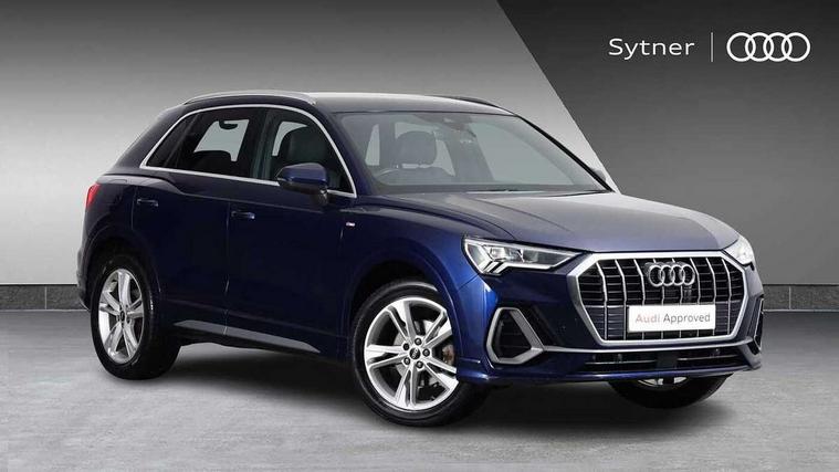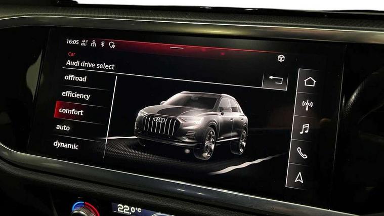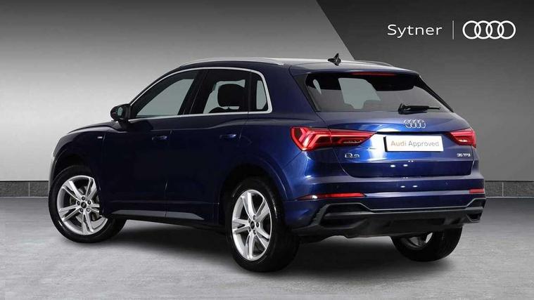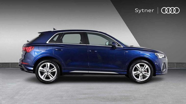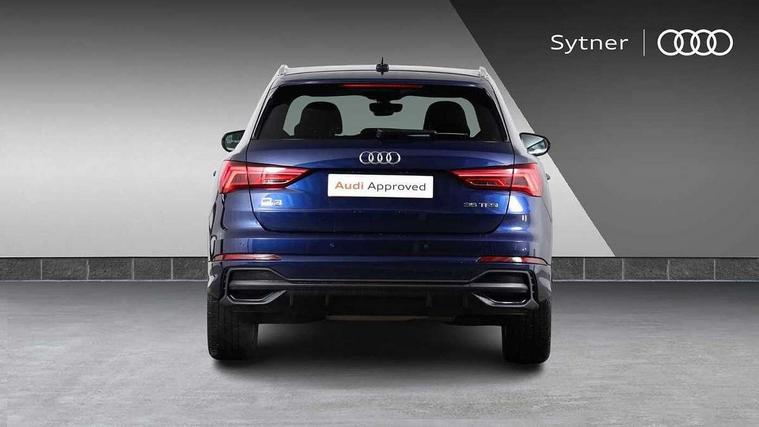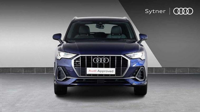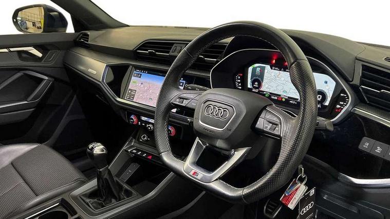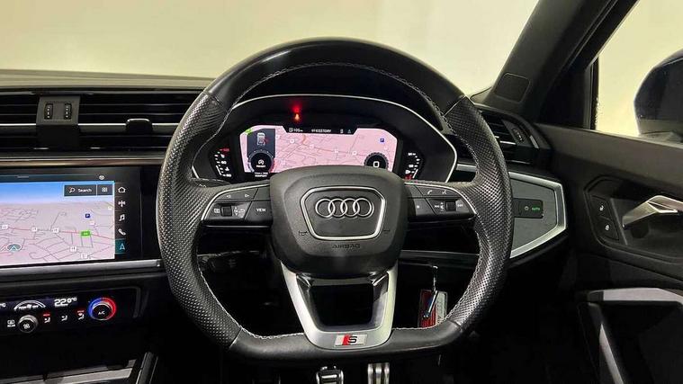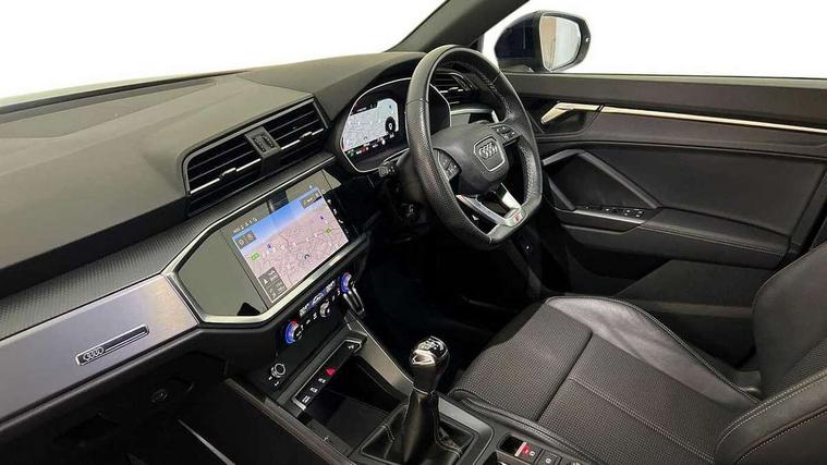 Amazon alexa Integration, Audi drive select, Audi lane departure warning, Audi Virtual Cockpit - 10.25" display, Bluetooth interface, Camera based traffic sign recognition, Cruise control + speed limiter, Legal emergency call, MMI Navigation Plus with high resolution 10.1 inch touchscreen colour display, Power operated tailgate, Progressive steering, Rear parking sensors, Service interval indicator, Smartphone interface includes wireless Apple carplay/Android Auto, Start stop system with recuperation, Voice control system with natural language interaction, Sports suspension, 2 USB-C ports with charge and data functions, 6 passive loudspeakers, DAB digital radio module, Acoustic windscreen, Aluminium roof rails, Aluminium window trim, Anthracite black radiator grille, Auto dimming frameless rear view mirror, Body colour front spoiler blade, Body coloured bumpers, Electrically folding, adjustable and heated door mirrors with integrated LED side indicators and kerb view function for passenger side, Front and rear electric windows, Front fog lights, Front side air inlets in matt platinum grey, Grille vertical bars in aluminium silver/Matt, High gloss black finish B and C pillars, LED Dynamic rear indicators, LED headlights with LED daytime running lights, LED rear lights, LED third brake light, Privacy glass dark tinted rear and rear-side windows (from B-pillar backwards), Rain and light sensors, Rear diffuser grille in grained matt black, Rear diffuser strip in matt anthracite black, Rear side wing doors, Rear wiper, S line badges on front wings, S Line front and rear bumpers, Side skirt insert in matt Platinium grey, Variable front intermittent wipers, 12V socket in rear centre console, 3 seat bench in 2nd row, 3 spoke leather multifunction steering wheel features S badging and grips in perforated leather with contrast stitching, 40:20:40 folding with manual adjustment for 60:40 forwards/backwards position and backrest angle, Adjustable rear seat bench/backrest with centre armrest and cupholder, Black cloth headlining, Dual zone electronic climate control, Front and rear black floor mats with contrast stitching in rock grey, Front and rear headrests, Front and rear roof module including reading lights, Front centre armrest, Glove compartment lighting, Height and reach adjustable steering wheel, Illuminated door sill trims with S logo, ISOFIX child seat mounting for front passenger with airbag deactivation and outer rear seat including top tether attachment point for outer rear seats, Luggage compartment light, Manual front seats with height adjustment, Perforated leather gearknob, Single front passenger seat, Stainless steel luggage compartment sill finisher, Stainless steel pedals, Ambient lighting pack - Q3, Non smoking pack - Q3, 3x3 point rear seatbelts, 6 airbags - Driver, front passenger, curtain and side windows, Audi pre-sense front with pedestrain and cyclist recognition, Electrically operated child locks on rear doors, Electromechanical parking brake, Electronic stabilisation control including ABS, ASR and EDL, Front seatbelt reminder, Hill descent control, Hill hold assist, Pre sense basic, Seatbelt monitoring, Tyre pressure warning, Warning triangle and first aid kit, Anti theft alarm, Anti theft wheel bolts, Immobiliser, Remote central locking, Aluminium look interior elements, Dark matt brushed aluminium inlay, Detail dashboard around MMI touch colour display in glass look, black with surround in aluminium look, Leatherette door armrest,