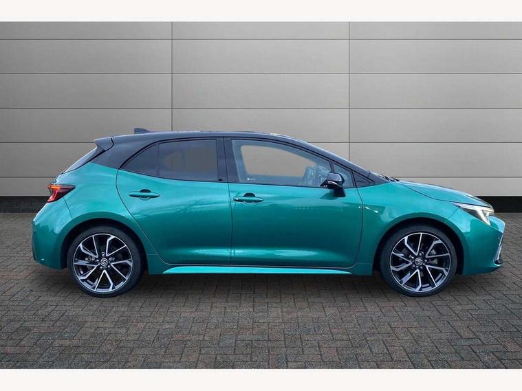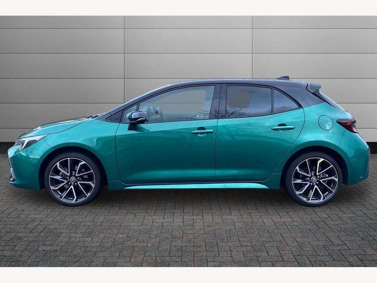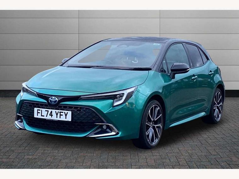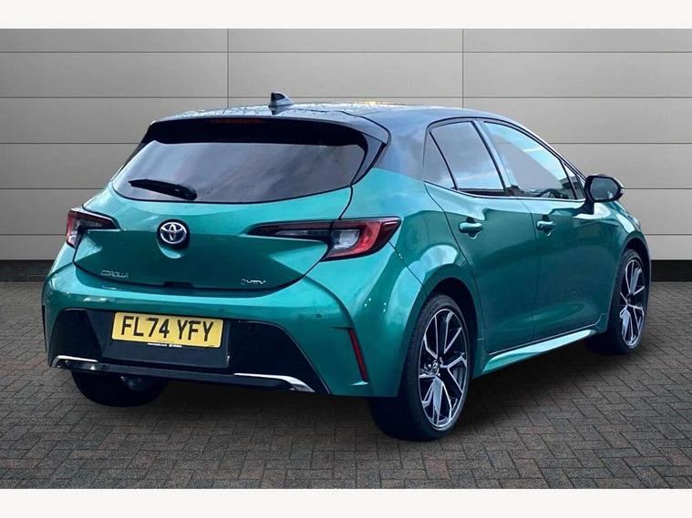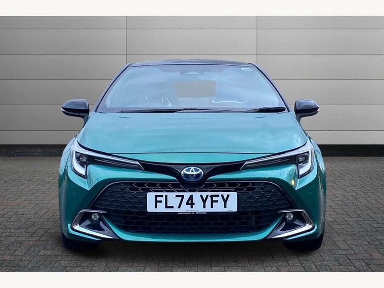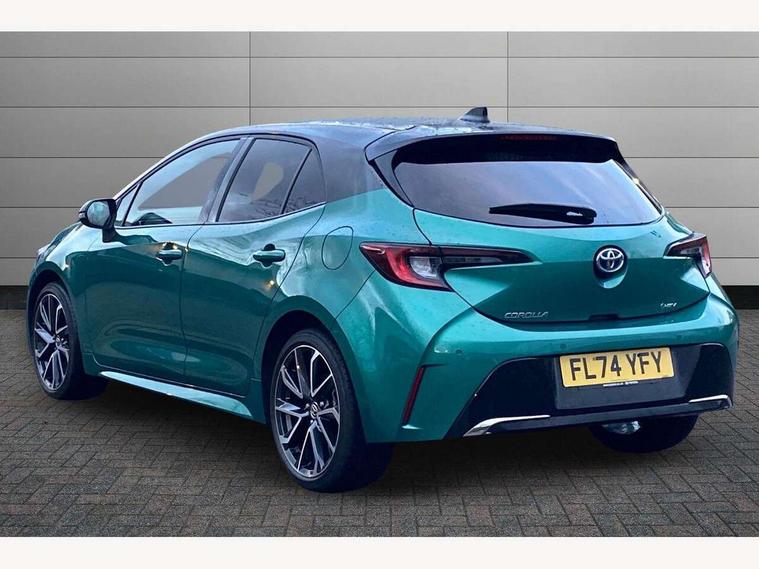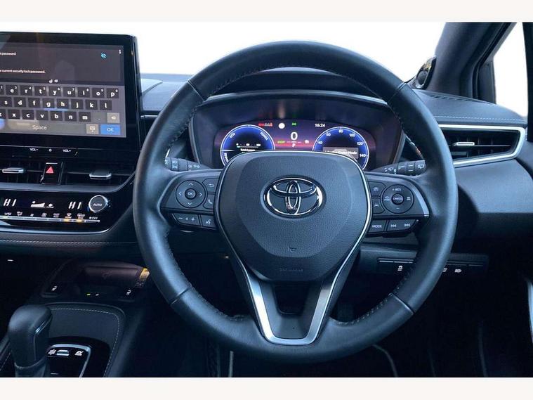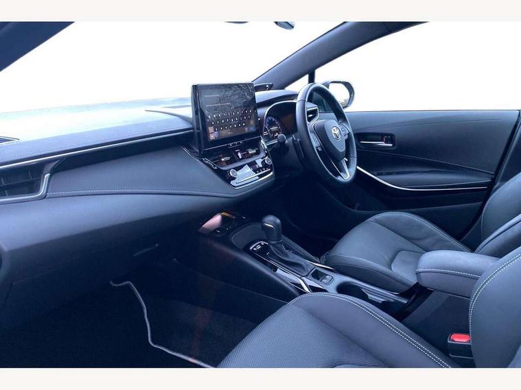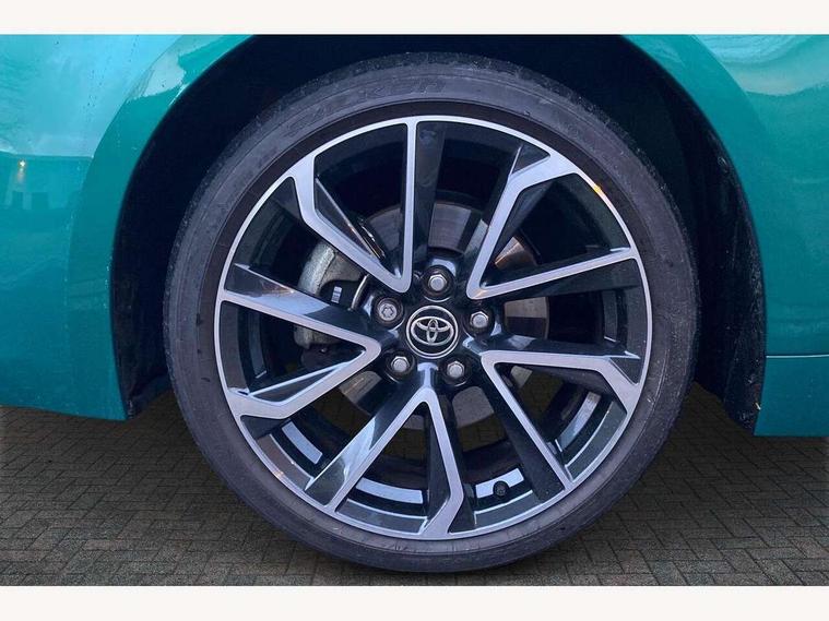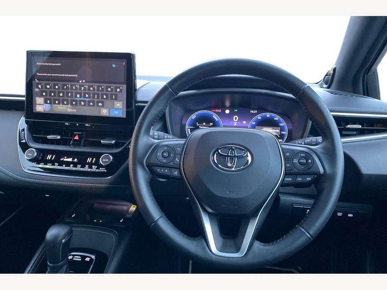 10.5" Multimedia display screen, Blind spot monitor and safe exit assist, Bluetooth telephone connectivity, Connected car functionality upgrade, tracker, remote status and e-care, Drive mode select (Eco, Normal), E-call, Electrically assisted power steering, EV drive indicator, Front and rear parking sensors with auto brake, Full Digital 12.3" TFT Digital Combimeter, Head up Display, Key reminder warning, Lane Departure Alert (LDA) switch on steering wheel, Memory on adjustable speed limiter, MyT connected services, Proactive driving assist (PDA), Rear cross traffic alert, Reversing camera, Smart entry and push button start, Smartphone integration with Apple CarPlay and wired android auto, Tailgate, Toyota remote services, Toyota smart connect navigation, Wireless charger, Gasoline particulate filter, Vehicle Stability Control (VSC), AM/FM radio, DAB Digital radio, Front USB-C in centre console, Front USB-C in dashboard, JBL Premium sound system with 8 speakers, Rear USB-C device charger, Smart voice assist/ Voice recognition, USB and Aux in connectors + 12V front outlet, Adaptive high beam system (AHS), Anti-jam protection on power windows, Auto headlight levelling system, Auto up and down function on all power windows, Automatic folding mirrors, Automatic headlights with high beam assist, Black centre and side air vents, Black metallic meshed front grille, Black toyota logo in front, Body coloured bumpers, Body coloured door mirrors, Body coloured front spoiler, Body coloured outside door handles, COROLLA alloy door scuff plates, Electrochromatic mirror, Follow me home headlights, LED daytime running lights, LED front fog lights, LED High mounted stop light, LED multi beam headlights, LED rear combi lights with LED lightguide, Noise reduction layer on windscreen, Piano black diffuser, Power adjustable heated door mirrors, Power front windows, Power rear windows, Privacy glass with UV filter, Rain sensing wipers, Rear bumper decoration with chrome plated inserts, Rear side wing doors, Rear under guard with chrome ornament, Rear window defogger, Rear window wiper, Reverse tilting door mirrors, Roof spoiler, Satin chrome insert on front air vents, Satin chrome insert on front door assist grips, Satin chrome inserts on rear passenger air vents, Shark fin antenna, Tailgate release with push button, Time adjustment on intermittent wiper, Turning signal integrated indicators in door mirrors, Unique grille pattern, Unique lower skirt, Unique side rocker with black insert, UV-filter on driver and passenger windows, 2 Shopping bag hooks in luggage compartment, 3 rear headrests, 3 seat bench in 2nd row, 3 spoke leather steering wheel with satin insert + gear knob, 4 tie down hooks in luggage compartment, 60/40 split folding rear seat, Adaptive cruise control (ACC) switch on steering wheel, Adjustable speed limiter switch on steering wheel, Audio, multimedia and telephone switches on steering wheel, Black armrest on centre console box, Black gear shift console, Boot light, Boot underfloor storage, Centre room light, Driver and front passenger personal light, Driver and passenger assist grip, Driver and passenger seatback pockets, Driver and passenger sun visor with mirror and light, Dual zone automatic air conditioning with ECO mode switch, Front and rear cup and bottle holders, Front door pockets, Front head restraints, Front passenger seat, Front sliding synthetic leather armrest, Heated seats, Illuminated entry system in room lamp, ISOFIX seat fixing (2 fixings on rear outer seats), Leather gear shift with satin chrome on gear shift console, Manual height adjustable for driver and front passenger seat, Manually tilt with sliding driver and front passenger seat, Nanoe-X air purifier, Paddle shifts, Parcel shelf, Perforated leather upholstery, Pollen filter, Power window switches with satin chrome inserts, Rear air conditioning, Rear armrest with 2 cupholders, Rear passenger coat hooks (2), Remote air conditioning, Satin chrome inside door handles, Satin chrome surround on heater control panel, Satin chrome surround on speedometer, Sliding armrest on centre console box, Slow opening glovebox with lights, Sports seats, Textile floor mats, Tilt/telescopic steering column, Voice recognition switch on steering wheel, Whiplash Injury Lessening (WIL) feature (active headrest) for seats, White ambient lighting on open tray and front cup holder, Toyota safety sense 3 pack - Corolla, 3x3 point rear seatbelts, Adjustable driver and front passenger seat belt extender to top anchor point, Anti lock braking system + Electronic brake force distribution, Brake assist function, Child locks on rear doors, Downhill Assist Control (DAC), Electronic parking brake, Emergency brake light signal (EBS), Front passenger airbag on/off switch, Front seatbelt reminder, HAC - Hill start assist control, Rear seat belt reminder, Seatbelt pretensioners and force limiters, Supplemental restraint system (SRS) 7 airbags - dual driver, dual side curtain, side impact and driver knee airbags, Traction control, Tyre pressure warning system, Acoustic vehicle alert system (AVAS), Alarm with motion sensor and immobilizer, Power passenger window lock, Remote central locking + deadlocks, Satin chrome dash trim, Soft touch texture on upper dashboard, Stitching on lower dashboard, Stitching on upper dashboard, 18" Dark grey machined face 5 double spoke alloy wheels, Tyre repair kit, Unique wheel finish with red wheel cap,