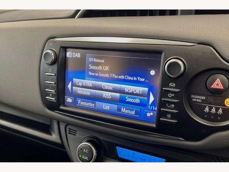 Bluetooth system, Cruise control, External temperature gauge, Fuel indicator with low level warning, Lane departure warning system, Lights on warning, Multi-information display, Power Steering, Push button starter, Rear view camera, Road sign assist - RSA, TFT display screen, Trip computer, 6 speakers, Auxiliary input socket, DAB Digital radio, Steering wheel mounted audio/telephone controls, Touch 2 touchscreen Radio with iPod connectivity, USB connection, 2 speed front wipers + intermittent wipe, Auto high beam, Auto up and down function on drivers window, Automatically retractable door mirrors, Body colour bumpers, Body colour door handles, Body coloured door mirrors, Chrome fog light surround, Chrome side sills, Door mirror integrated indicators, Drivers window one touch up/down, Dusk sensitive headlamps, Electric adjustable heated door mirrors, Electric front windows, Electric rear windows, Follow me home headlights, Front fog lights, Green tinted glass, Heated rear windscreen, Interior electrochromic mirror, LED daytime running lights, LED Headlights, LED rear lights, Privacy glass, Projector headlamps, Rain sensitive windscreen wipers, Rear spoiler, Rear wiper, Turning signal integrated indicators in door mirrors, 3 spoke leather steering wheel, 60/40 split folding rear seat, Auto air conditioning, Boot light, Cloth/alcantara upholstery, Cooled glovebox, Driver seat height adjust, Driver/passenger vanity mirrors with covers, Front cupholders x 2, Front map reading lights, Front seats with lumbar support, Height adjustable front head restraints, Height adjustable rear seat head restraints (x3), Isofix system on outer rear seats, Leather gear knob, Leather handbrake, Rear cupholder, Removable rear parcel shelf, Sliding front seats, Tilt/telescopic steering column, 3 point seatbelts on all rear seats, ABS+EBD+Brake assist, Active headrests, Collision mitigation braking system, Curtain airbags, Driver and passenger airbags, Drivers knee airbag, Emergency brake light system (EBS), Front passenger airbag on/off switch, Front seatbelt reminder, Front side airbags, Height adjustable front seatbelts with pre-tensioners and load limiters, Hill start assist control (HAC), Passenger airbag deactivate switch, Rear child proof door locks, Rear seat belt reminder, Road sign information display, Seatbelt warning lamp and buzzer, Toyota safety sense including Road sign assist, Pre collision system, auto high beam and lane departure alert), Tyre pressure monitoring system, Vehicle stability control VSC + traction control, Engine immobiliser, Keyless entry, Remote central locking, Instrument panel in grey, Soft touch instrument panel, 16" 10 spoke grey machined alloy wheels, Space saver spare wheel,