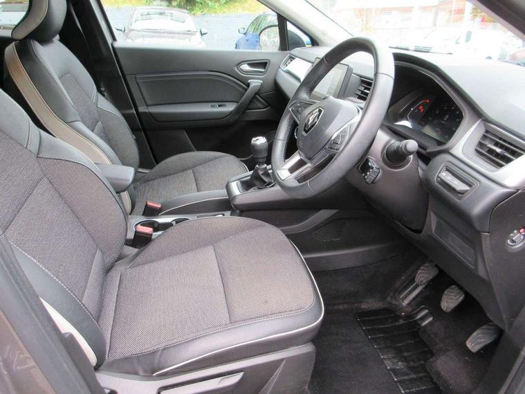 7" TFT Driver information display, Cruise control + speed limiter, EasyLink 7" touchscreen with navigation, google search and traffic information, Eco mode, Front and rear parking distance sensors, Gear change indicator, Lane departure warning system, Lane keep assist, Multisense with 3 driving modes + 8 ambient lighting colours, Rear view camera, Renault automatic emergency assist, Smartphone integration compatible with Apple CarPlay and Android Auto, Traffic sign recognition with over speed prevention, Trip computer, Variable assistance power steering, DAB Radio with Bluetooth and USB, 2 reverse gear LED lamps and 1 rear LED fog lamp in the bumper, Auto dimming rear view mirror, Automatic front wipers with rain sensors, Automatic headlights, Automatic high/low beam, Black side door protection with chrome effect, Body colour door handles, Body coloured bumpers, Body coloured door mirrors, C Shaped LED front and rear lighting signatures with 3D effect on the rear lights, Chrome around front air deflectors, on front wing deco element and window lining, Day time running light, Drivers one touch window with anti-pinch feature, Extra tinted glass in rear windows and tailgate, Front and rear electric windows, Front grille with chrome upper trim, Full LED headlights with LED rear lights, Grey front and rear skid plate, LED high level brake lights, LED rear fog lights, LED turn indicators on door mirrors, Longitudinal roof bars, Rear side wing doors, Rear wiper, Shark fin antenna, 12V Accessory socket, 60/40 split and fixed base rear seat bench, Automatic climate control with one touch demist function and air quality regulator, Central rear LED rooflight with 3 reading lights, Front head restraints, Glovebox, Heating system with pollen filter, Height adjustable driver's seat, Height adjustable passenger seat, Height/reach adjust steering wheel, ISOFIX child seat fixing points on rear outermost seats, LED front roof lights, Middle console with armrest and storage, Modular boot floor, Rear air vents, Rear head restraints, Single front passenger seat, Sliding rear bench, Synthetic leather steering wheel, Synthetic leather/cloth upholstery, 3 rear seatbelts, ABS+EBA, AEBS - active emergency braking system, Distance warning alert, Driver and front passenger and 3 rear passengers seatbelt reminder, Driver and front passenger, side, head and curtain airbags, Driver height adjustable seat belt, Electric parking brake with auto hold function, Electronic stability control, Front dash warning indicator in case of heavy braking, Front driver and passenger side airbag deactivation, Hill start assist, Passenger airbag deactivation system, Rear door and window child locking function for rear door, Tyre pressure warning light, Anti drill door locks and locking fuel cap, Central door locking, Deadlocking system, Hands free keycard with push button and start/stop function, RAID (Renault Anti-Intruder Device) automatic door locking, Black soft touch dashboard, 18" Pasadena diamond cut alloy wheels with grey inserts,