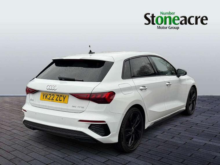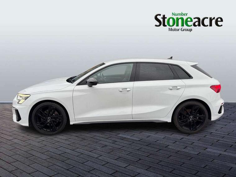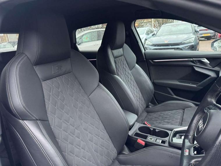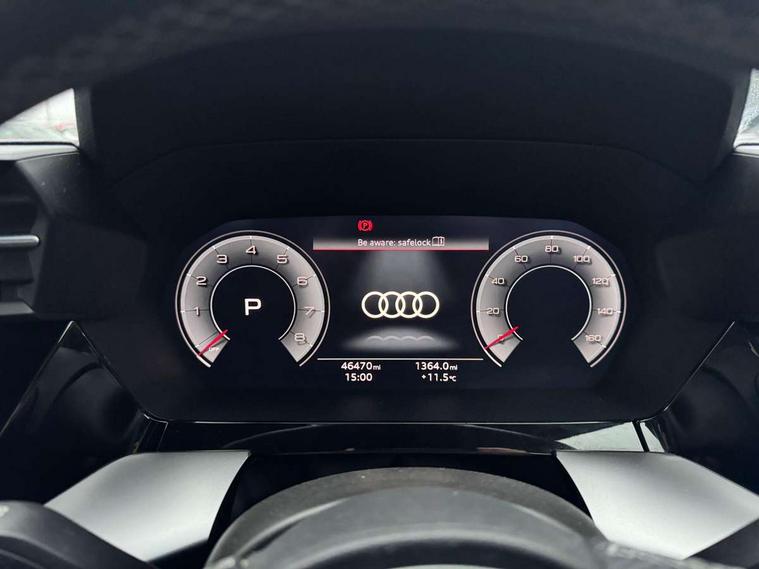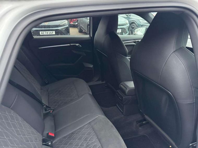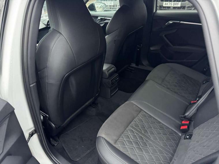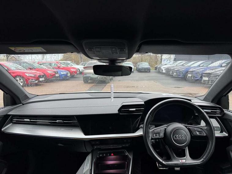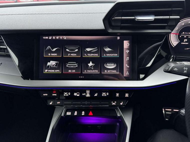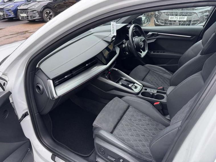 Audi connect emergency call and service, Audi drive select (Auto, Comfort, Dynamic, Efficiency and Individual), Audi smartphone interface, Audi virtual cockpit plus - 12.3" full HD resolution dynamic digital instrument cluster, Automatic start/stop system with recuperation, Bluetooth interface, Collision avoidance assistant, Electromechanical power speed sensitive steering, Lane departure warning system, MMI Navigation Plus with high resolution 10.1" colour touch screen display, Service indicator, Trip computer, Voice control system with natural language interaction, Sports suspension, 2xUSB-C connection with data and charging functions, 6 passive loudspeakers, DAB Digital radio, 3rd brake light, Acoustic glass windscreen, Audi matrix LED headlights with LED rear lights + dynamic front and rear indicators, Auto dimming frameless rear view mirror, Body colour front spoiler blade, Electrically adj heated/folding + automatically dimming exterior mirrors + automatic kerb side function for passenger side exterior mirror, Front electric windows, Headlight washers, Illuminated aluminium inserts front door sills with S logo, Integrated LED indicators in door mirrors, LED daytime running lights, Light and rain sensors, Privacy glass - dark tinted rear window, rear door and side windows, Rear diffuser in grained matt black, Rear electric windows, Rear side air outlets in grained matt black, Rear wiper, S roof spoiler, 12V socket and storage compartment in front centre console, 4 way electrically adjustable lumbar support for driver and front passenger, 40/20/40 split folding rear seat bench with cupholder, Black cloth headlining, Dual zone electronic climate control, Electrically adjustable front seats for driver's side, Front and rear centre armrest in leather, Front and rear headrests, Front/rear floor mats, Heated front seats, Height and reach adjustable steering wheel, Interior lighting - glove compartment light and right hand side, Luggage compartment floor covering, Seat side bolsters, Stainless steel pedals and front footrest in black, Aluminium interior elements pack - A3 Sportback, Black styling pack - A3 Sportback, Dinamica microfibre/mono.pur 550 artificial leather pack - A3 Sportback, Extended ambient lighting pack - A3 Sportback, LED interior lighting pack - A3 Sportback Edition 1/Vorsprung, 3x3 point rear seat belts, Driver and front passenger airbag with passenger airbag deactivation, Electronic Stabilisation Control (ESC) including ABS, ASR and EDL, First aid kit with warning triangle and 2 safety vests, Front side airbags with head airbags and interaction airbag, Hill hold assist, Pre-sense front with pedestrian and cyclist detection, Seatbelt monitoring, Tyre pressure loss indicator, Anti theft alarm, Anti-theft wheel bolts, Electronically operated child lock, Immobiliser, Remote control central locking, Accent surfaces in the dashboard and centre console in platinum grey silk effect paint finish, Dark spectrum aluminium inlays, 19" 5 arm trapezoid design alloy wheels in titanium matt grey with diamond cut finish,