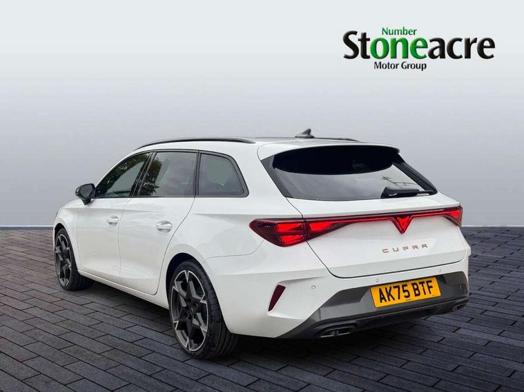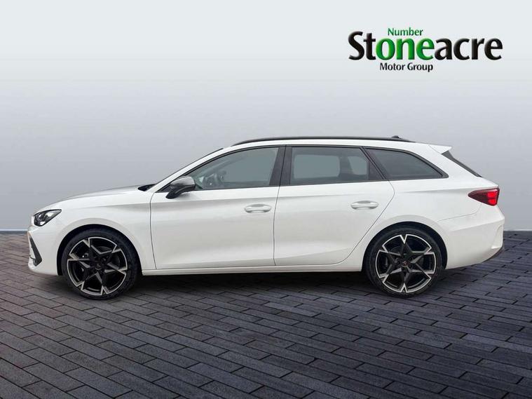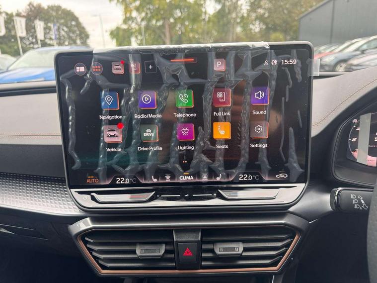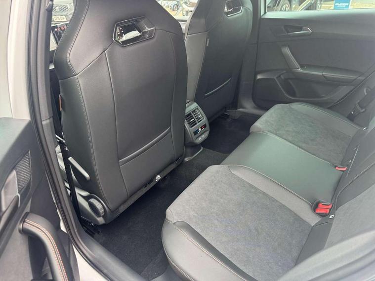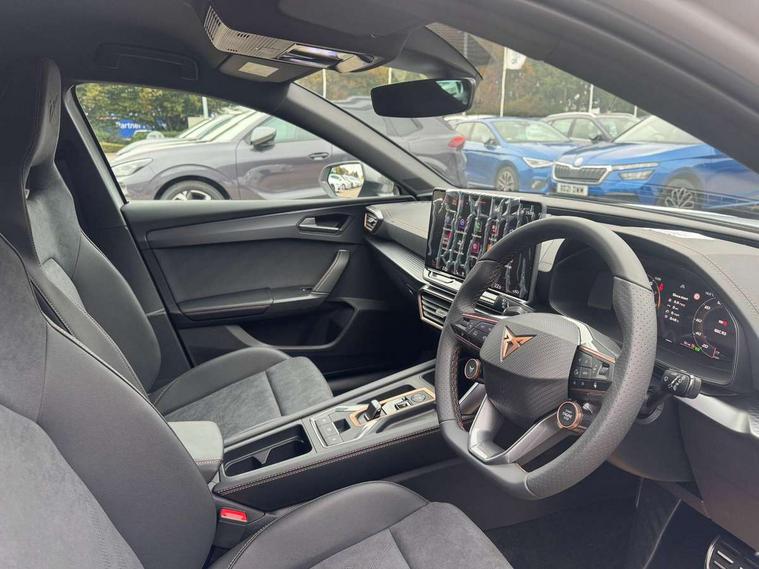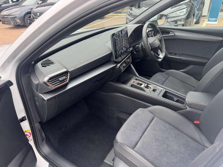 Adaptive cruise control with follow-to-stop and speed limiter, CUPRA drive profile selection with (Comfort/Sport/Individual), throttle response and gearshift mode, Digital cockpit, Dynamic road sign display, E-call, Four x USB Type C ports (2 in front and 2 in rear), Front and rear parking sensors, Front assist with forward collision warning braking reaction to vehicles, pedestrians and cyclists, Full link smartphone integration with Mirror Link, wireless Apple CarPlay and wired Google Android Auto, Lane assist, Lockable tailgate, Rear view camera, RPM, trip computer, outside temp gauge, instrument light brightness, low fuel warning light, lights on reminder, gearshift indicator, Service interval indicator, Start/stop system with regenerative braking, Virtual pedal with electric tailgate, Wireless phone charger, Auxiliary input socket, Auto dimming rear view mirror, Body colour door handles, Body coloured bumpers, Cupra sports bumpers, Dark tinted rear windows, Electric front/rear windows, Electrically adjustable, heated and folding door mirrors, Gloss black roof rails, High beam assist, LED front fog lamps with cornering function, LED headlights with dynamic turn signals, tail lights, rear fog lights with rear coast to coast lighting, LED rear fog lamp, Rain sensing wipers, Rear side wing doors, Rear wash/wipe, Separate daytime running light with automatic headlight control and coming home feature, Third brake light, Welcome light with logo projector in door mirrors, 12v power supply in centre console, 3 seat bench in 2nd row, 5 headrests, 60/40 split rear bench seat with armrest, Ambient lighting (glovebox, footwell, ambient lighting multicoloured), Black headlining, Cupra sports pedals, CUPRA Supersports, heated steering wheel with satellite buttons, Dinamica cloth upholstery, Electrically adjustable driver seat and lumbar support with memory function + manually adjustable passenger seat, Front and rear reading lights X 4, Front centre armrest, Heated front seats, Height/reach adjust steering wheel, Illuminated interior front door sills, Interior wraparound lighting, ISOFIX points in outer rear seats with top tether anchorage points, Single front passenger seat, Sliding boot cover, Storage pockets on rear of front seats, Sunvisors with illuminated mirror, Three zone climate control, Dynamic and comfort pack - Leon Cupra, Media system plus with 12.9" display + navigation pack - Leon Cupra, 3 point seatbelts on all rear seats, ABS, Brake control system - ESC and brake booster, Child proof door locks, Cupra black brake calipers, Driver and front passenger airbags with front passenger airbag de-activation, front side and curtain airbags, Electronic parking brake, Hill hold control, Rear disc brakes, Seat belt reminder for front and rear seats, Tiredness recognition system, Tyre pressure monitoring system, Anti theft alarm system with interior monitoring in cab, backup horn and towing protection, KESSY Advanced - Keyless start, keyless entry, Locking wheel bolts, Chrome and copper interior detailing, 19" Polar machined sport black and silver alloy wheel with 91Y tyres, Tool kit,